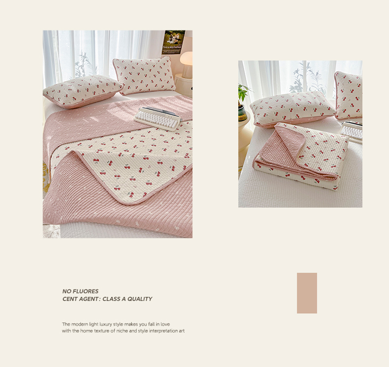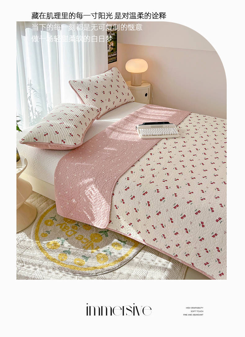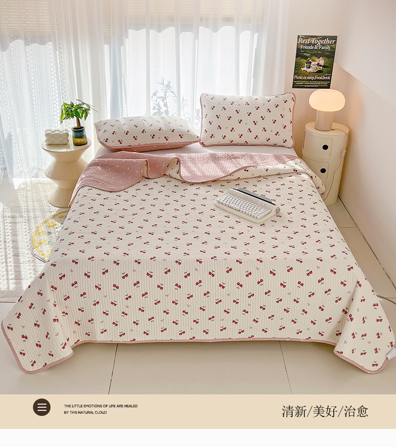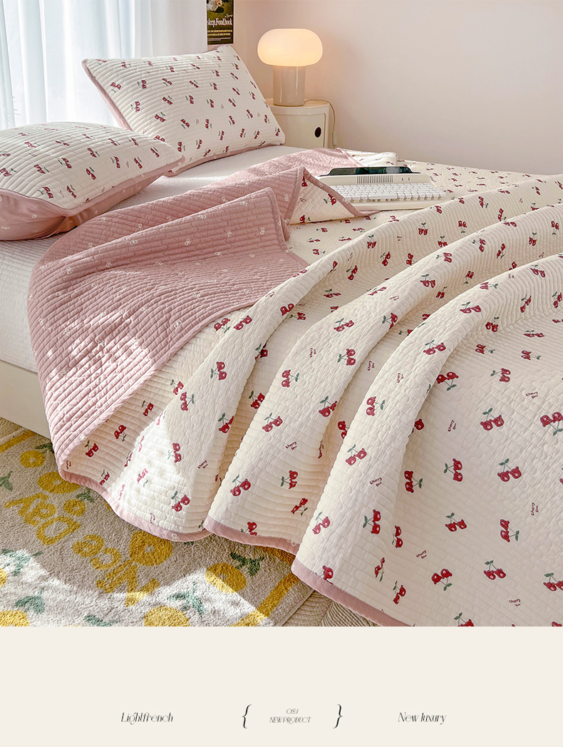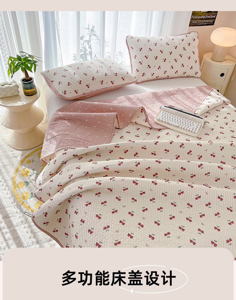 商品名称:茉夕家纺 2024新款纯棉斜纹13372双面纯棉床盖 小樱桃
