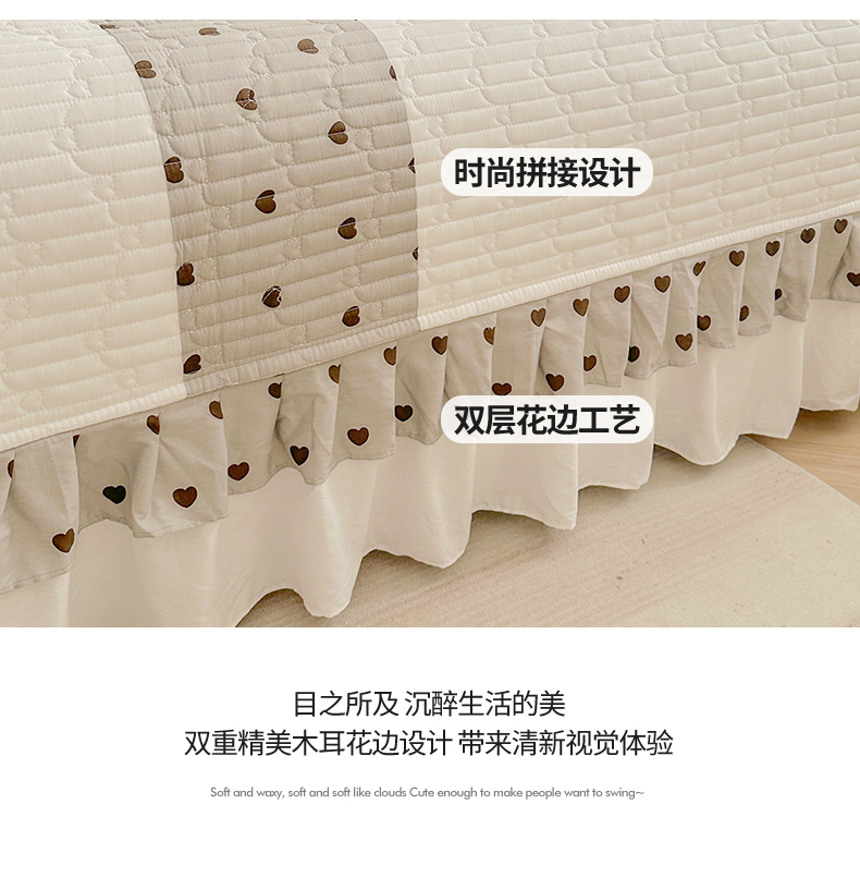 商品名称:宜凡家纺 2024新品全棉夹棉床盖三件套-心情 心情 米白