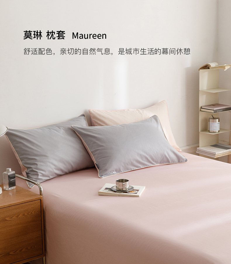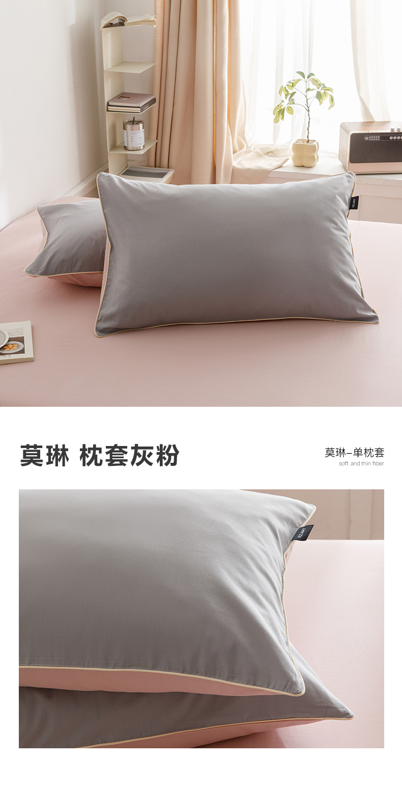 商品名称:卡姿家纺 2024春夏纯色双拼嵌绳款单枕套—莫琳 莫琳 枕套灰粉