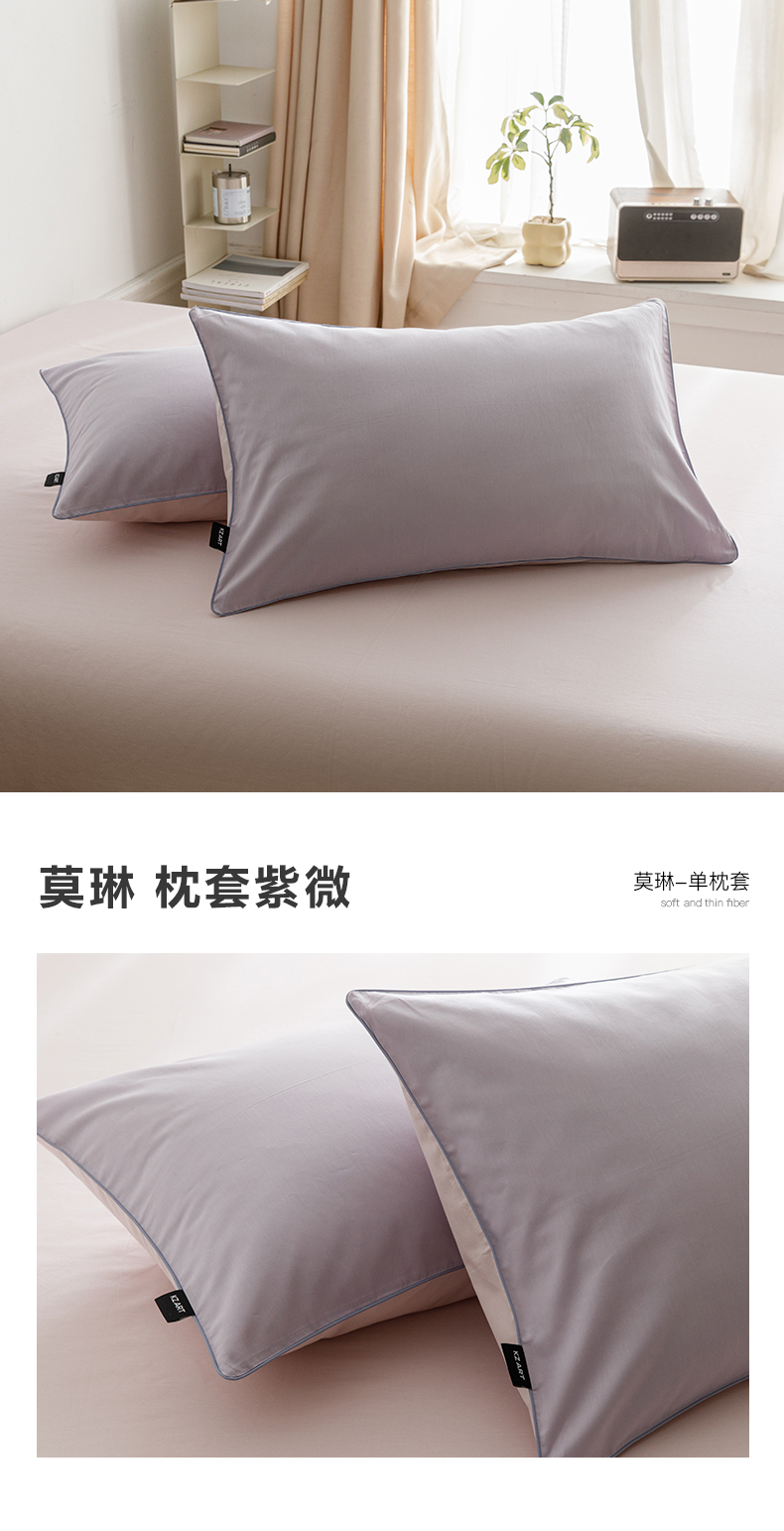 商品名称:卡姿家纺 2024春夏纯色双拼嵌绳款单枕套—莫琳 莫琳 枕套紫微