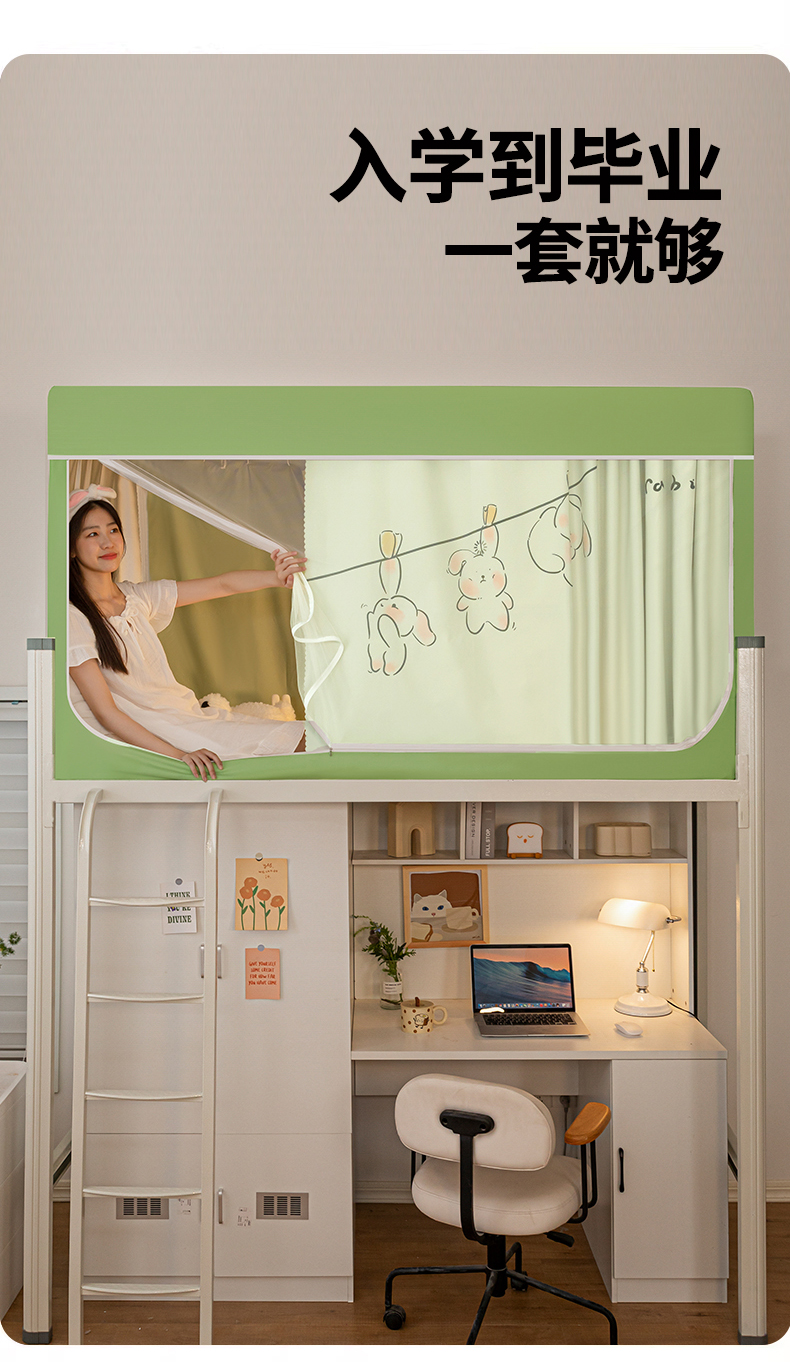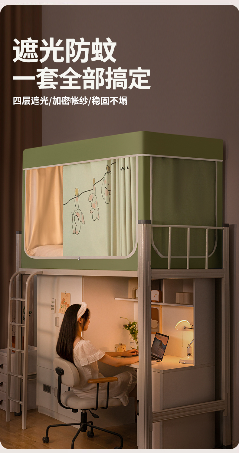 青竹苑 2024新款涂银强遮光学生蚊帐上下铺坐床蚊帐 呆萌兔绿色