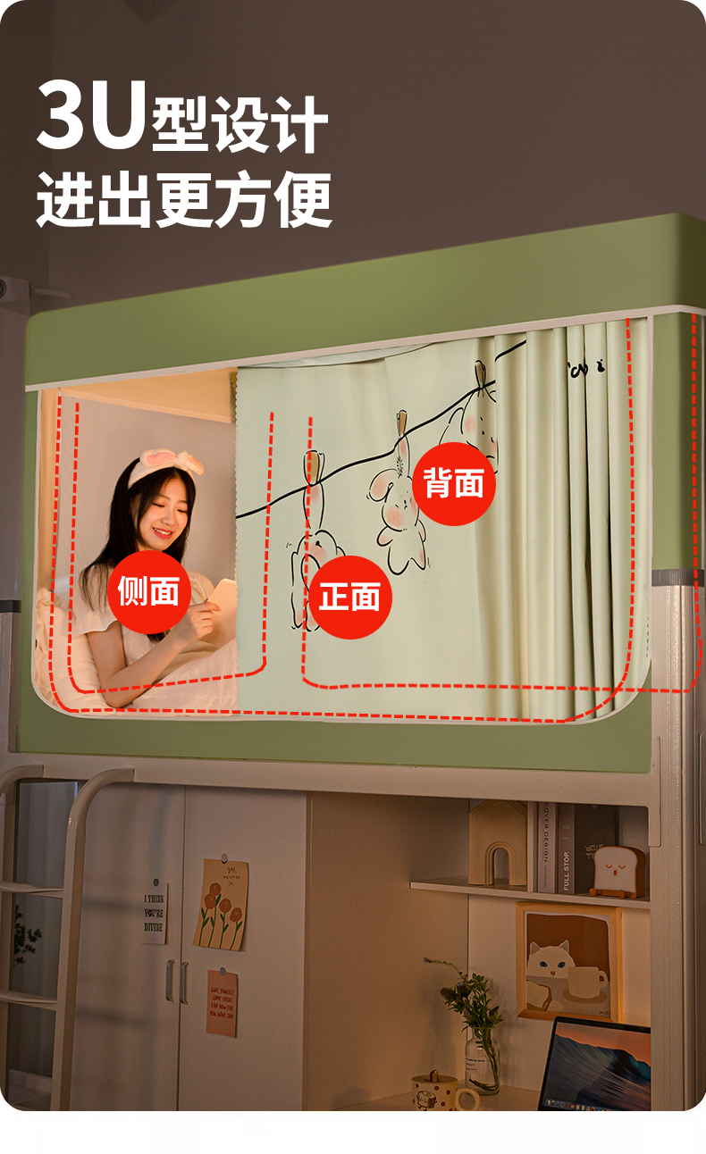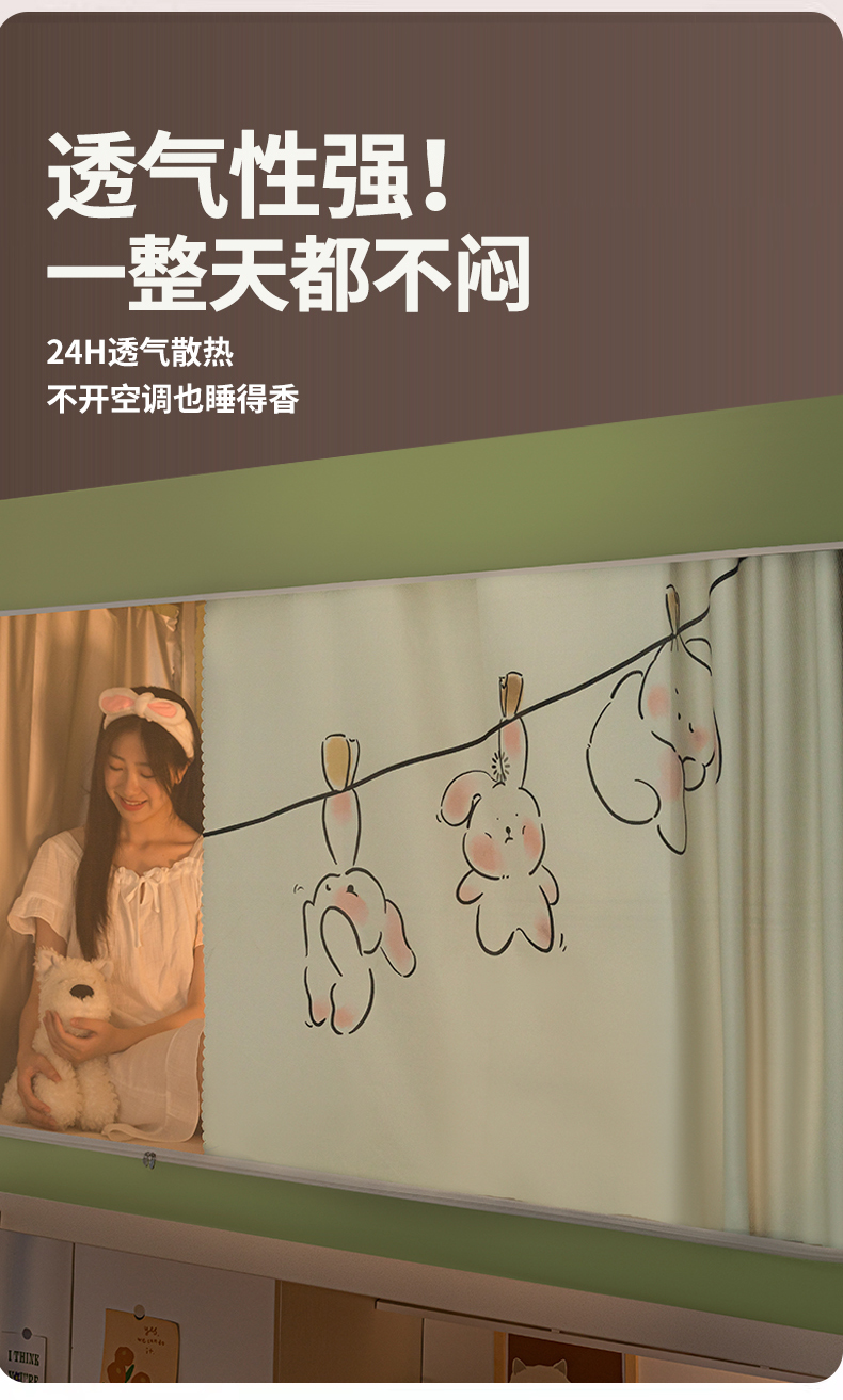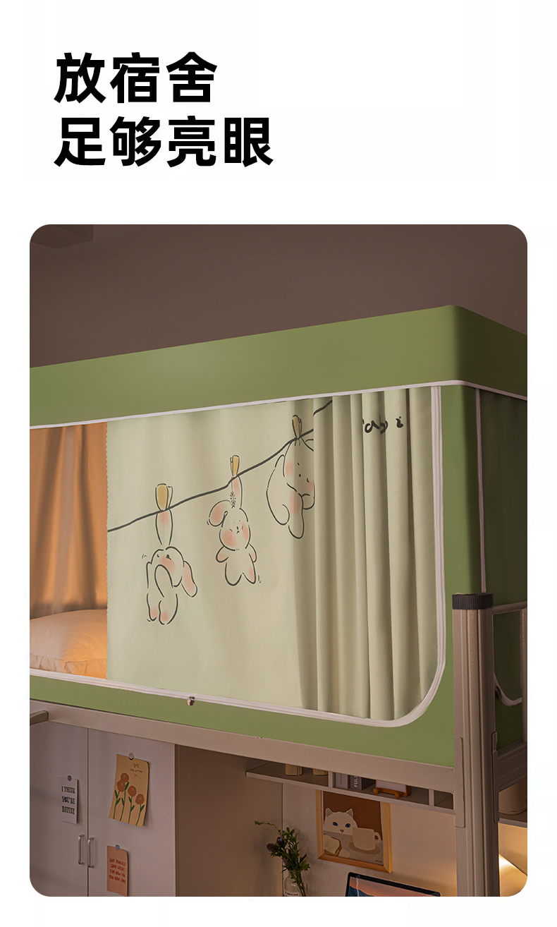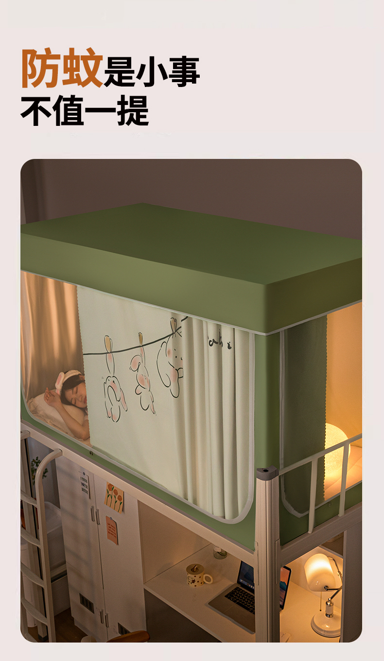 商品名称:青竹苑 2024新款涂银强遮光学生蚊帐上下铺坐床蚊帐 呆萌兔绿色