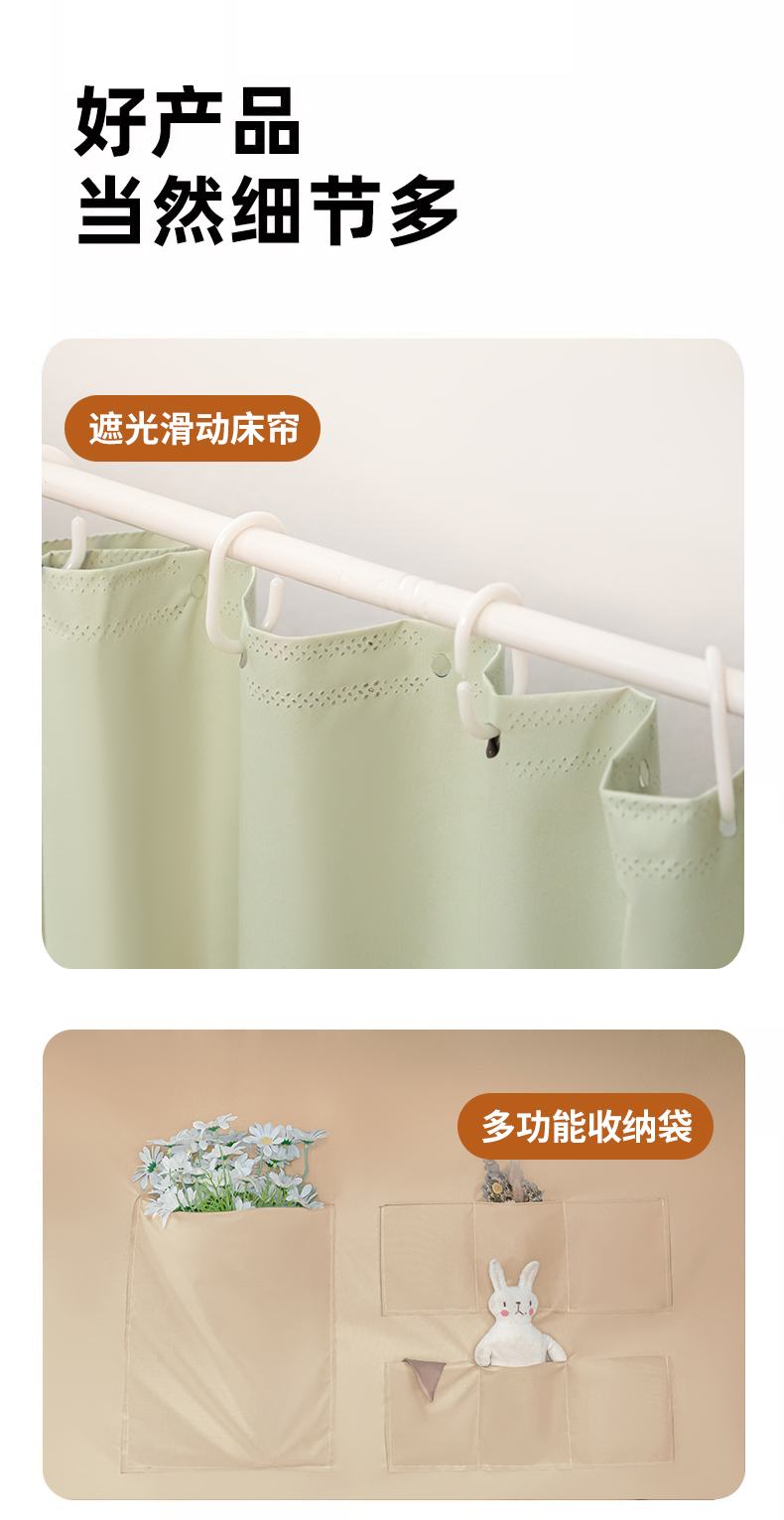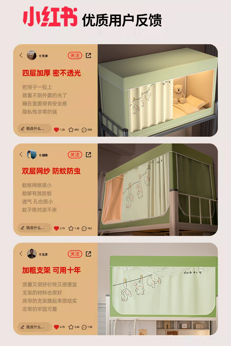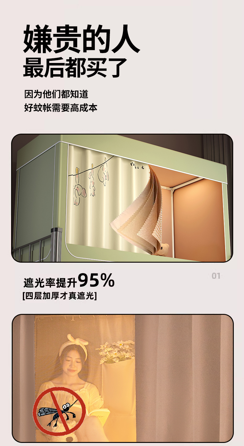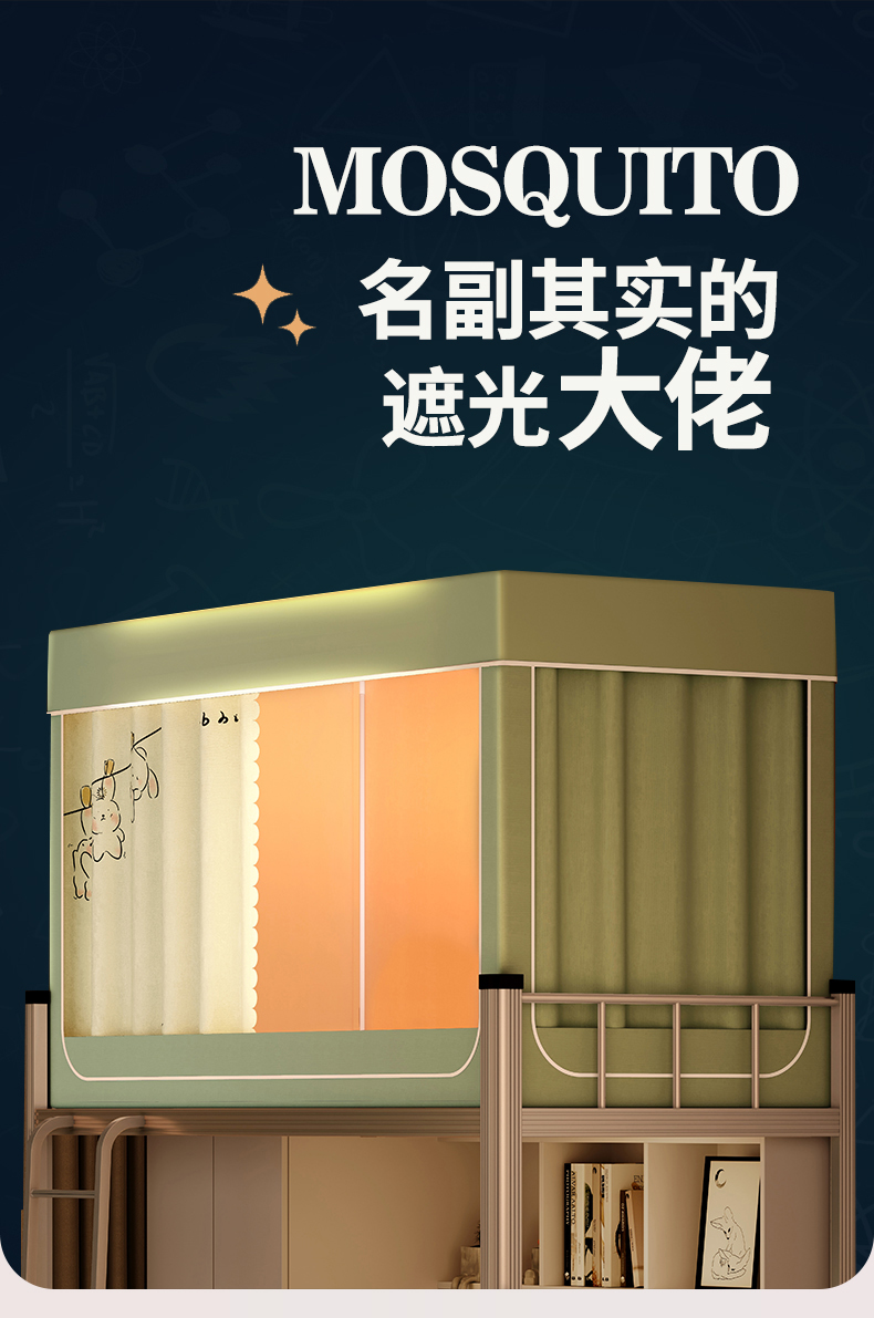 商品名称:青竹苑 2024新款涂银强遮光学生蚊帐上下铺坐床蚊帐 呆萌兔绿色