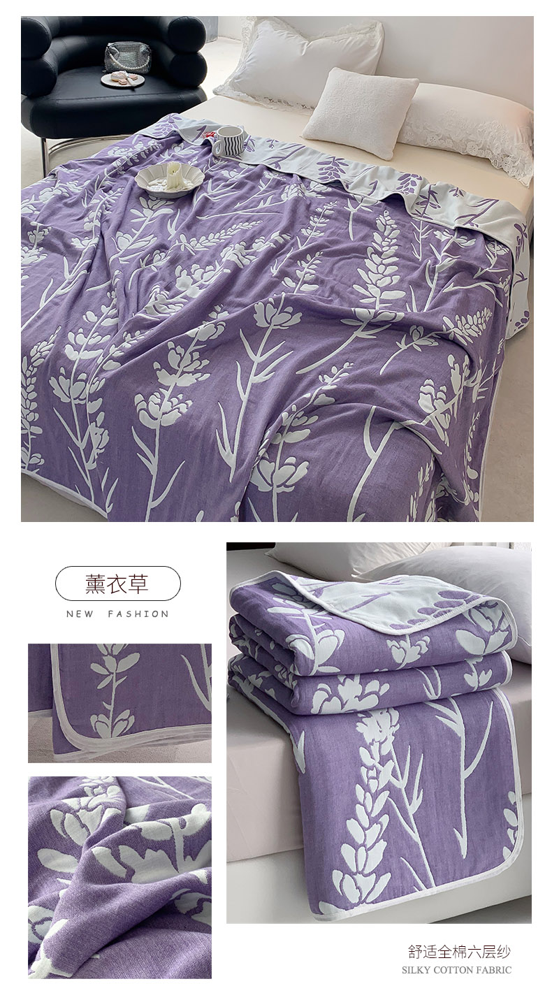 商品名称:爱港家纺 2024新款全棉六层毛巾被夏凉被纱布毯 薰衣草