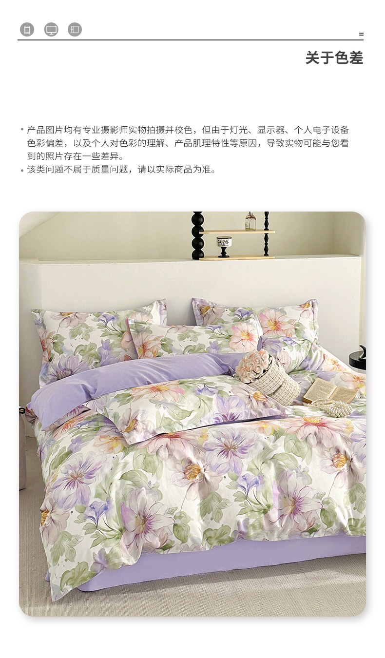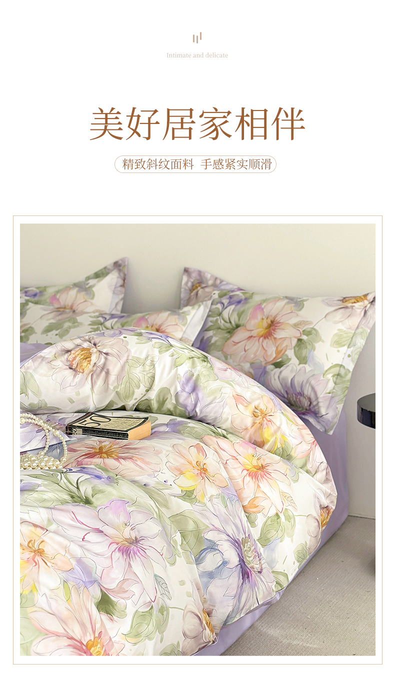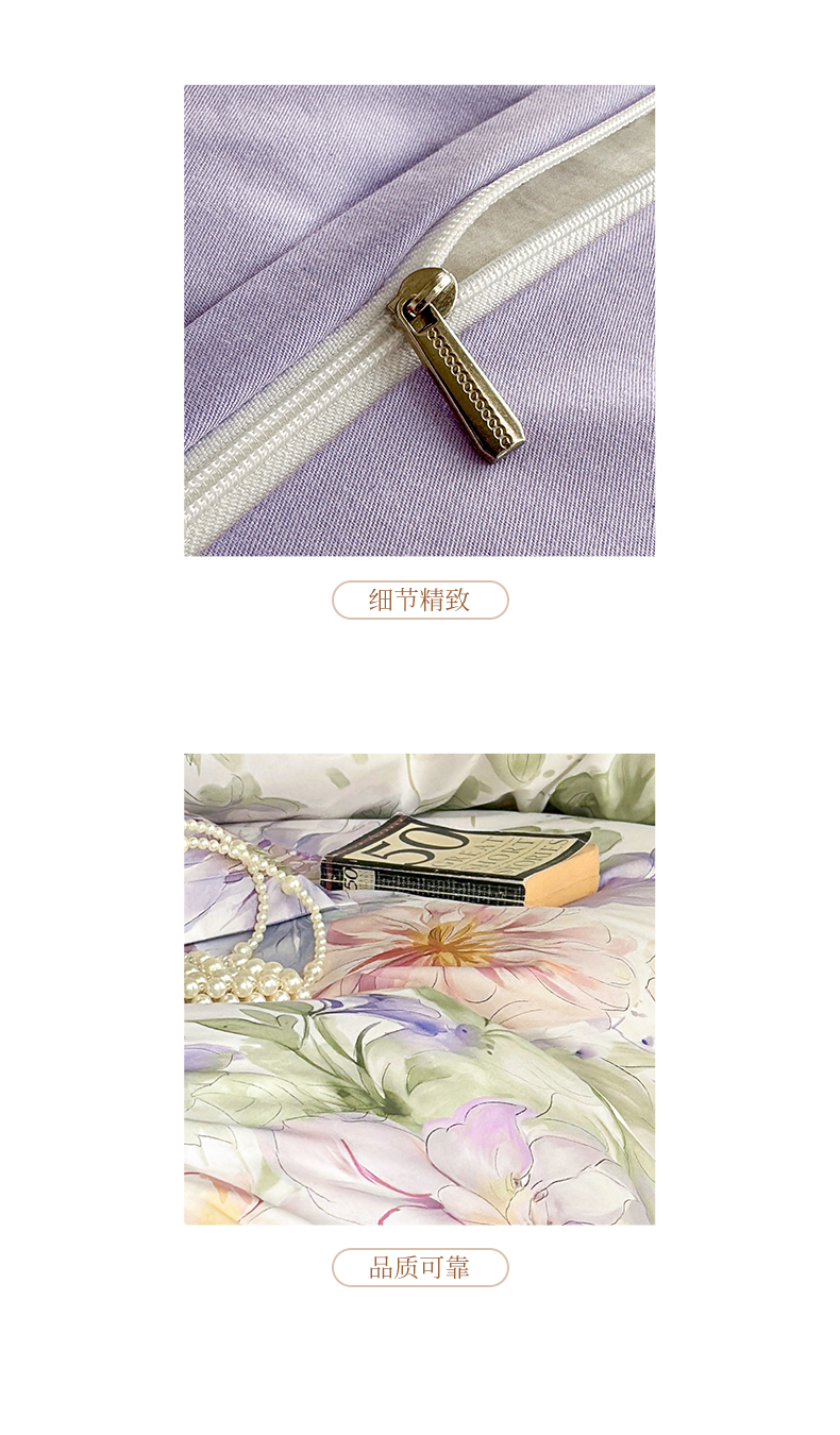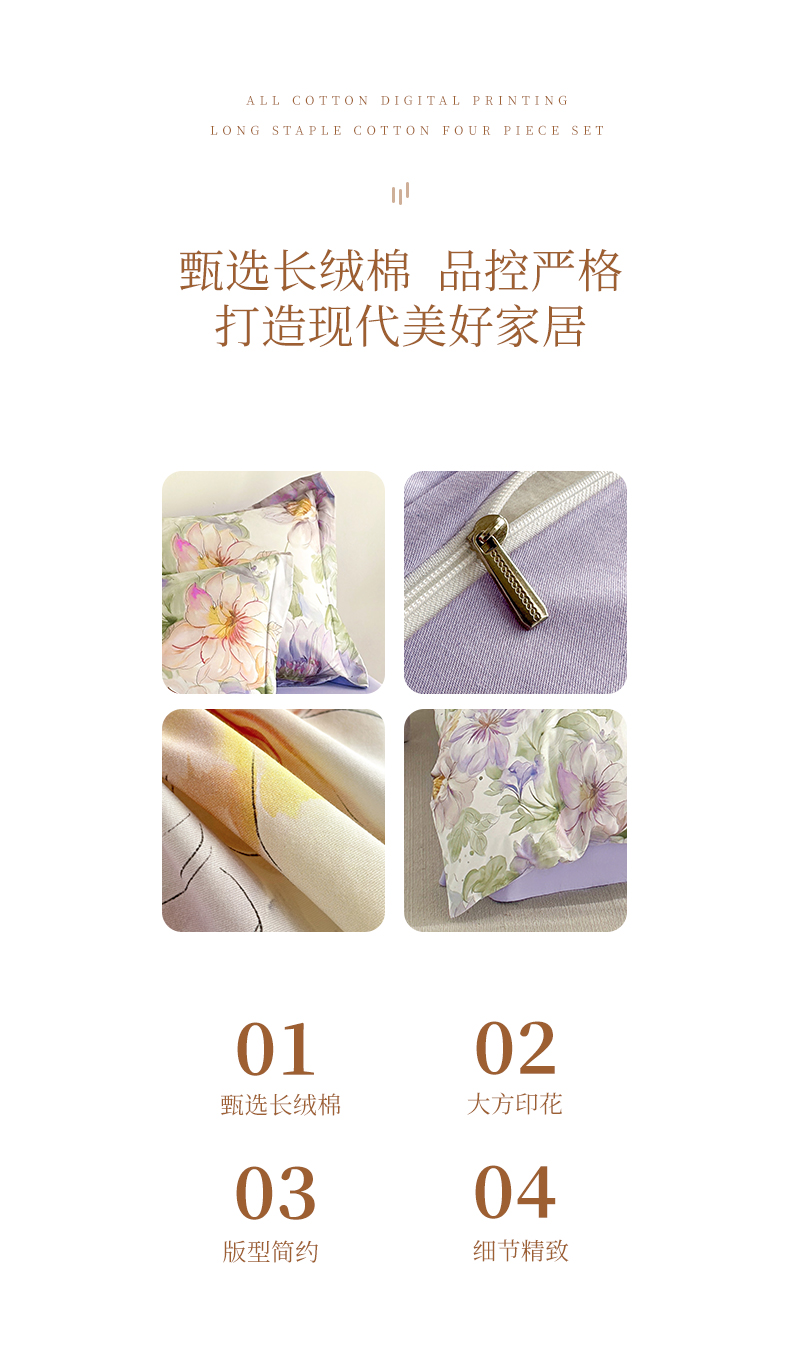 商品名称: 元元被芯 2024新款全棉长绒棉数码印花四件套全棉四件套纯棉四件套 花的旅途-紫
