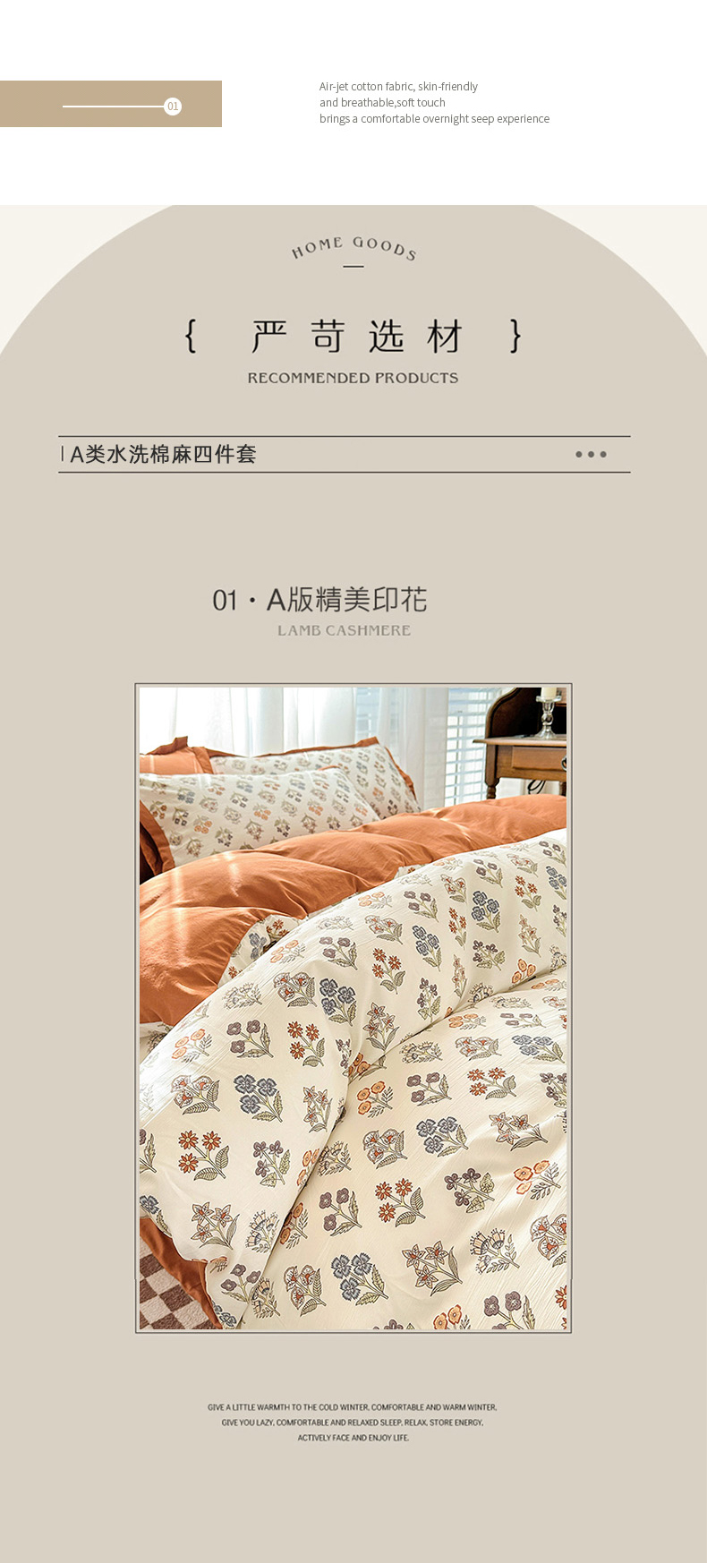 当前位置: 91家纺网 > 商品网购 > 床品套件 > 四件套 > 化纤活性四件套 > 卡普二店 2024新款A类水洗棉麻四件套 梵高花园