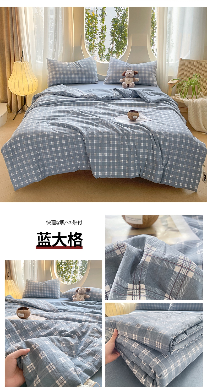 商品名称:老帅的工厂店 2025新款云朵棉无印风格子夏被 蓝大格