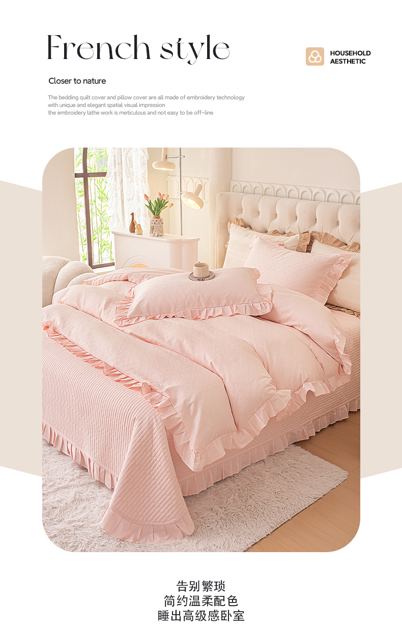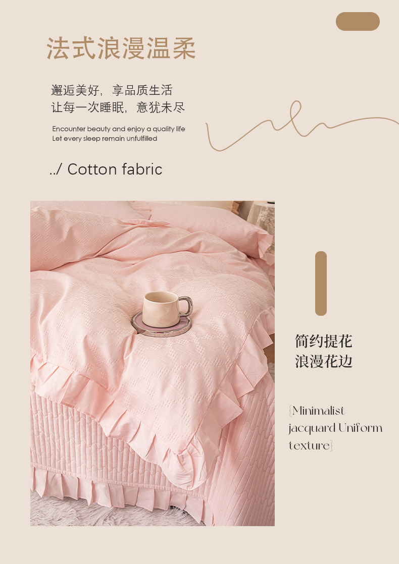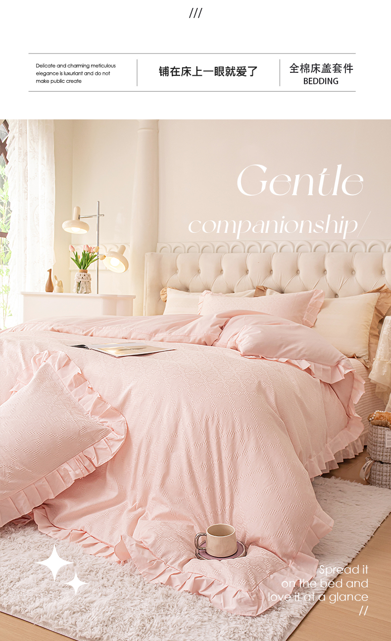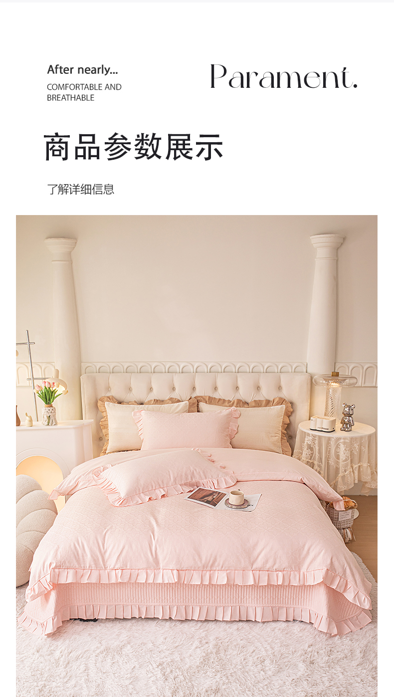 商品名称:美伦美焕 2024新款韩版公主风纯色全棉纯棉花边床盖四件套 嫩粉