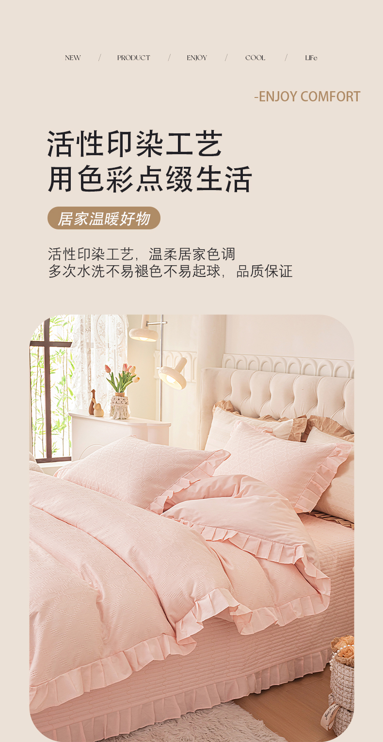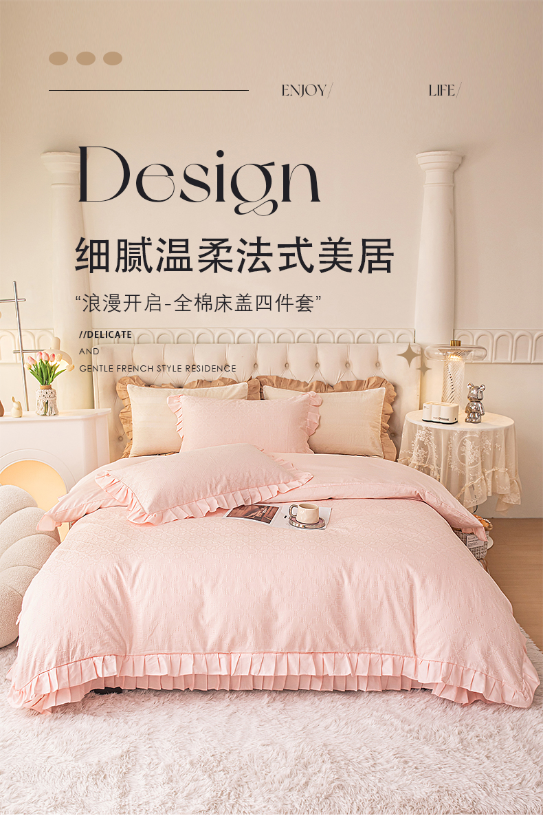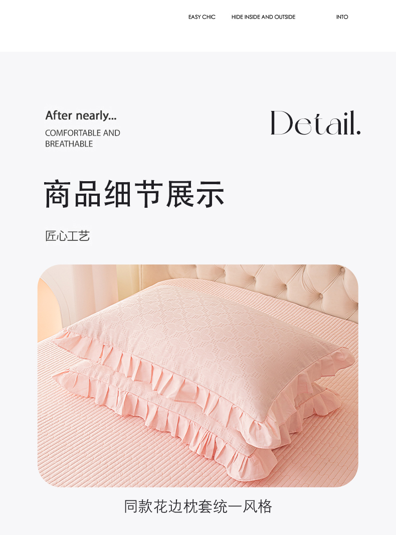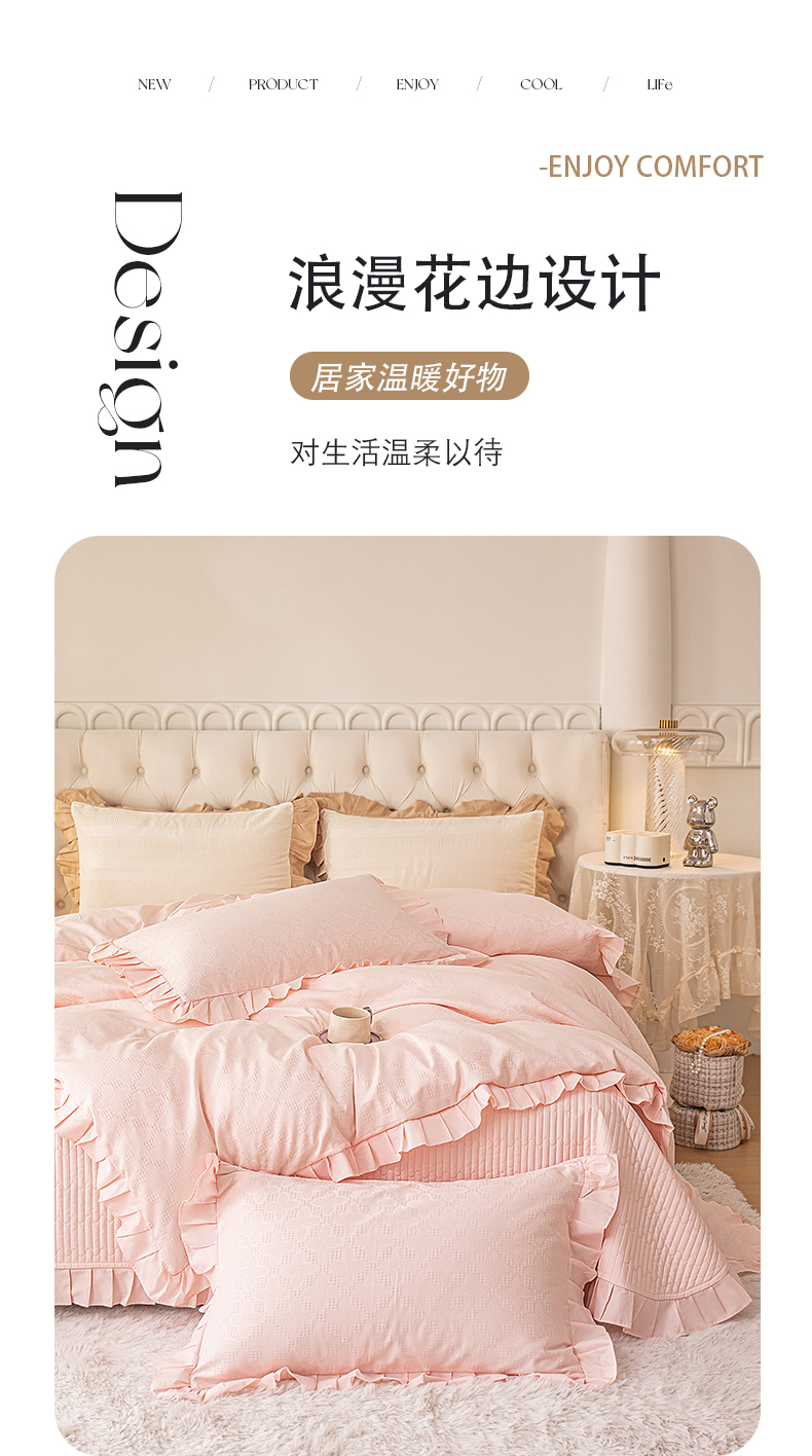商品名称:美伦美焕 2024新款韩版公主风纯色全棉纯棉花边床盖四件套 嫩粉