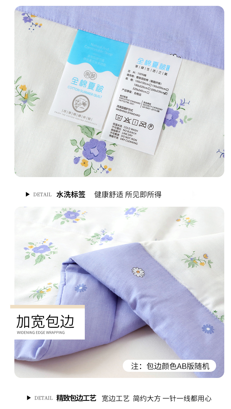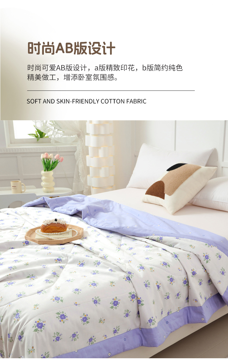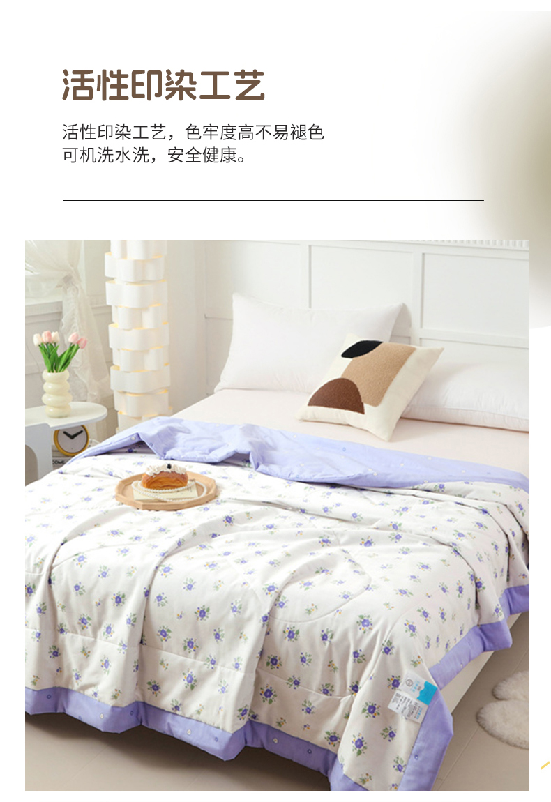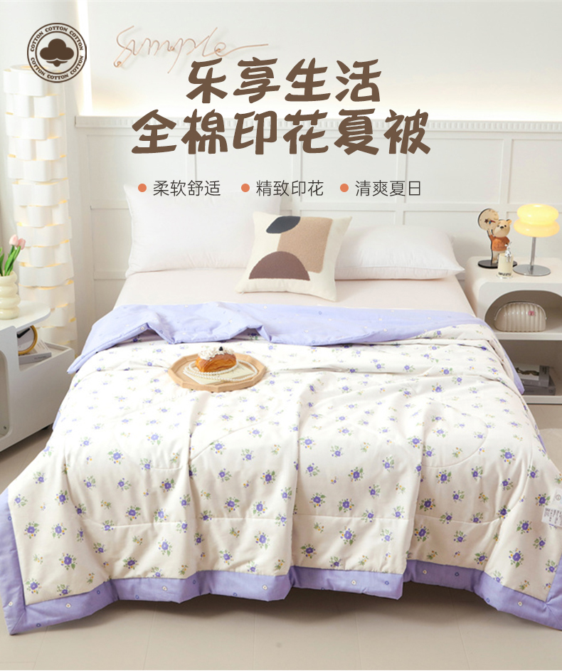 瑜珠 2025新款双面全棉印花夏被夏凉被空调被子 新丽瑾紫,新丽瑾紫