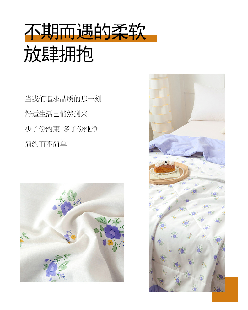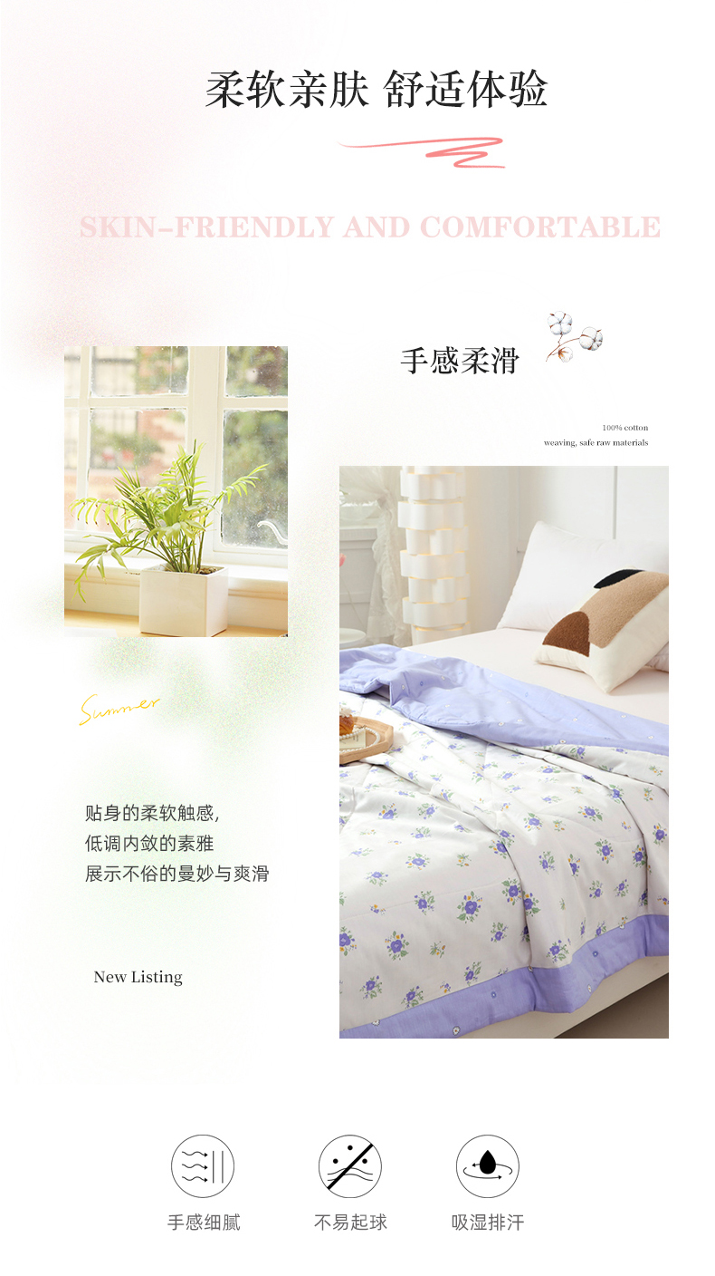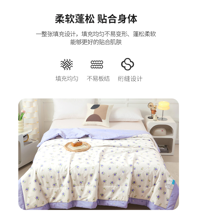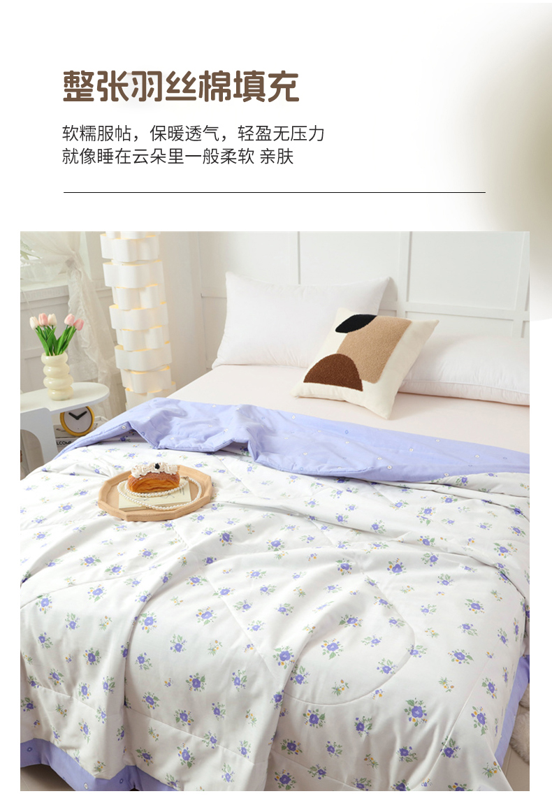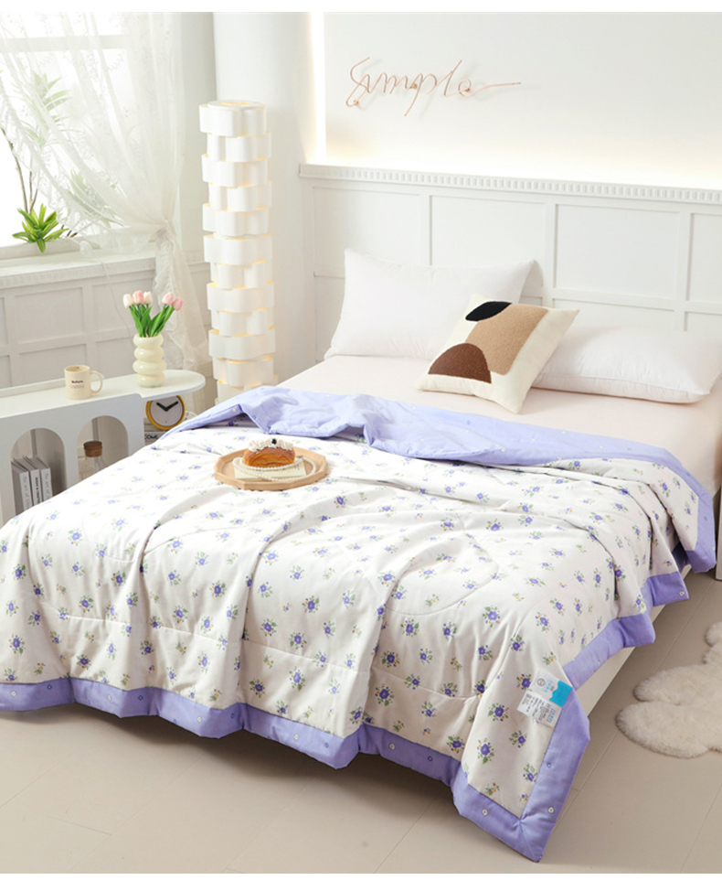 瑜珠 2025新款双面全棉印花夏被夏凉被空调被子 新丽瑾紫,新丽瑾紫