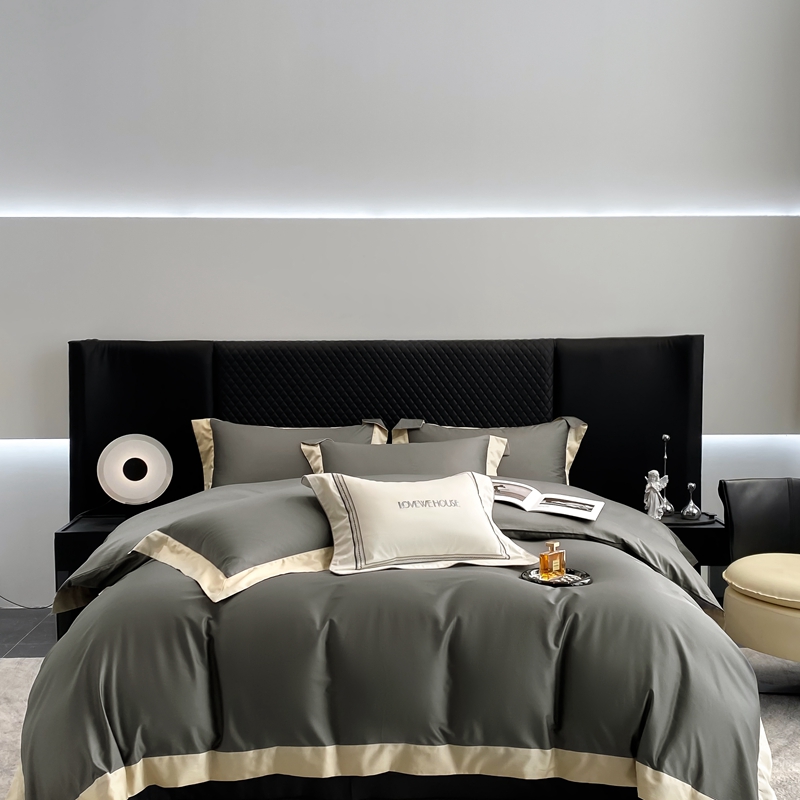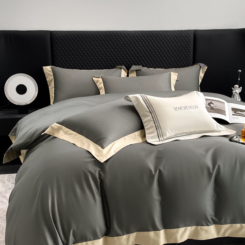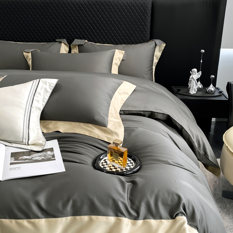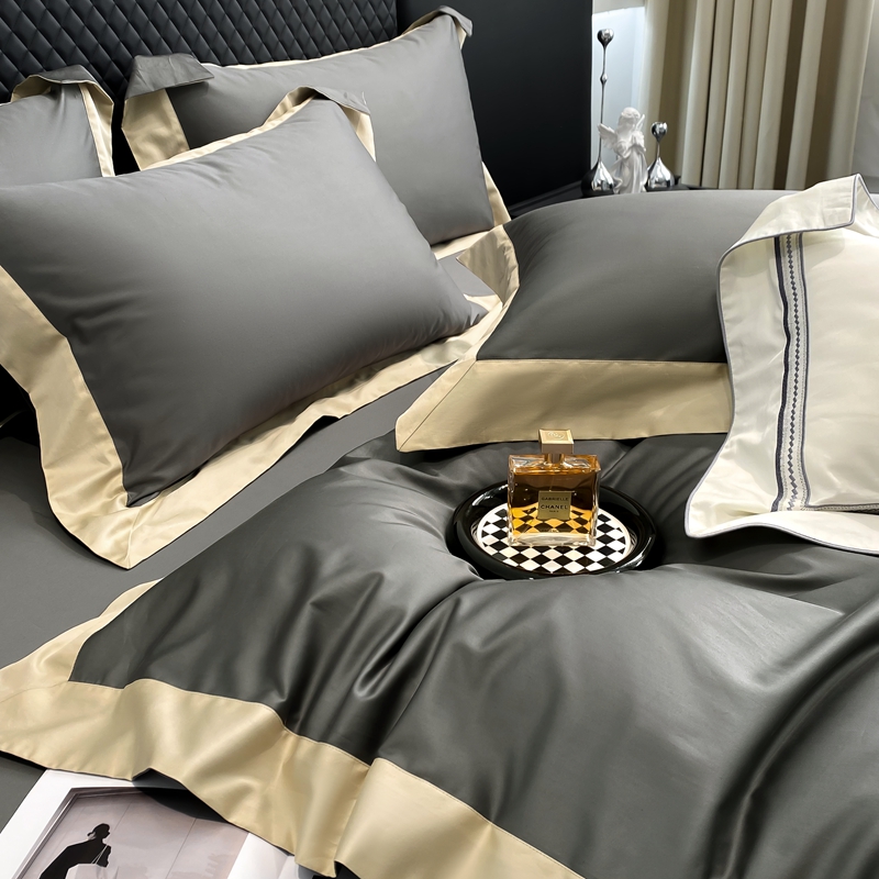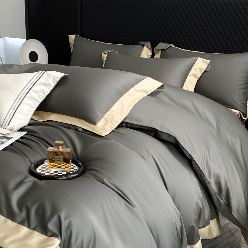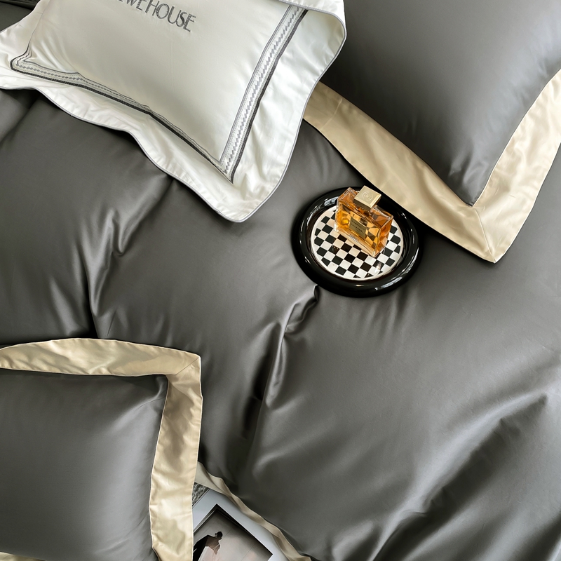 商品名称:若未家居 2025新款50S长绒棉纯色撞色简约拼角款套件-洛斐 玄灰