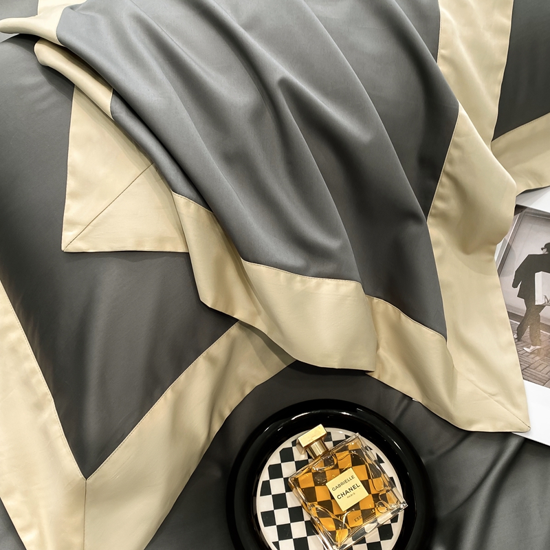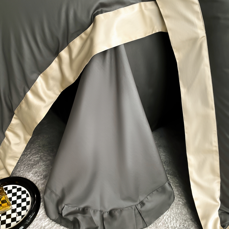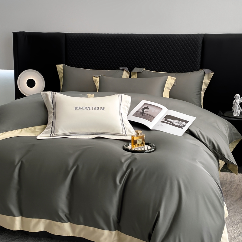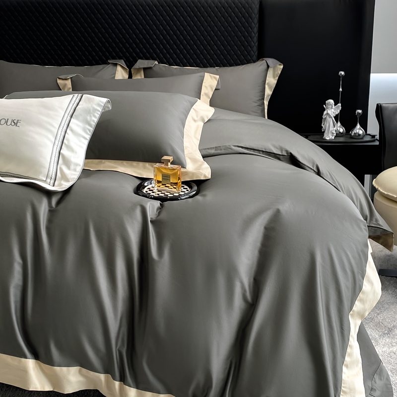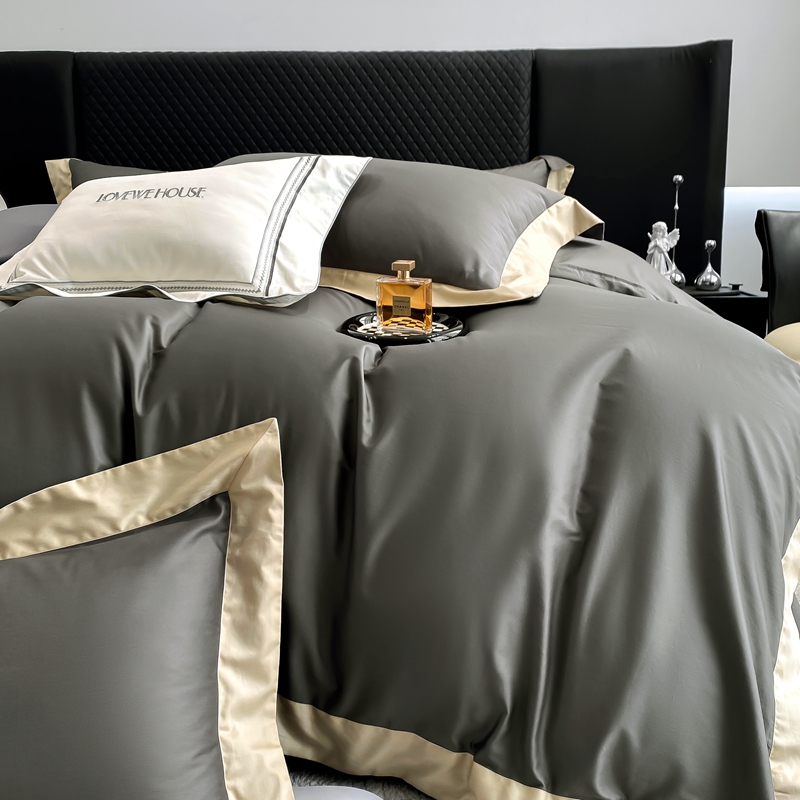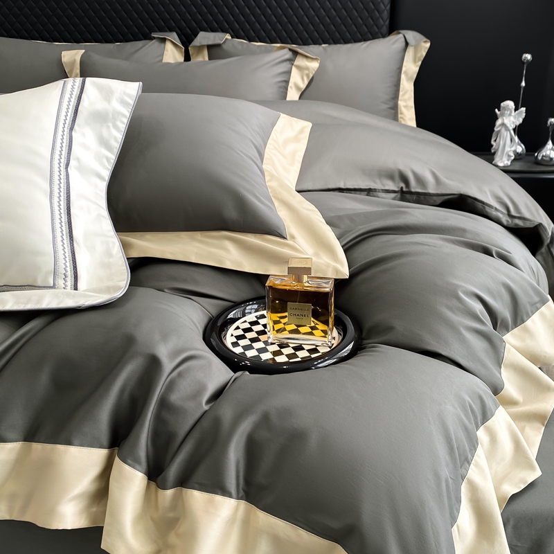 商品名称:若未家居 2025新款50S长绒棉纯色撞色简约拼角款套件-洛斐 玄灰