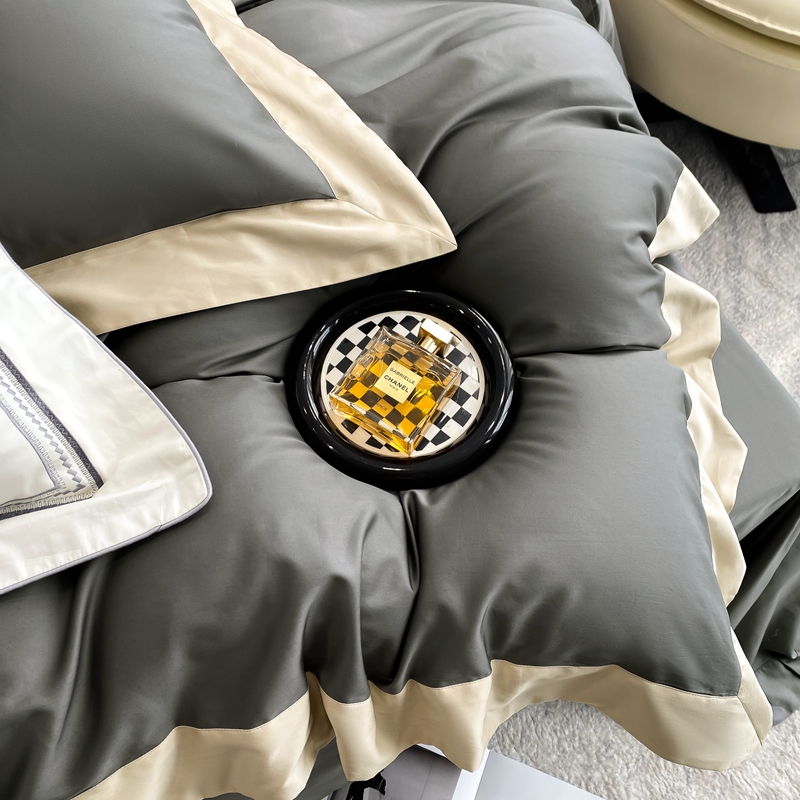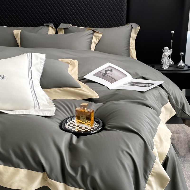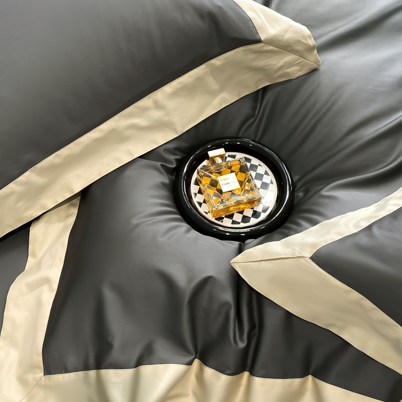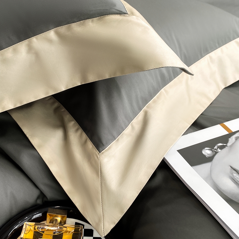 若未家居 2025新款50S长绒棉纯色撞色简约拼角款套件-洛斐 玄灰
