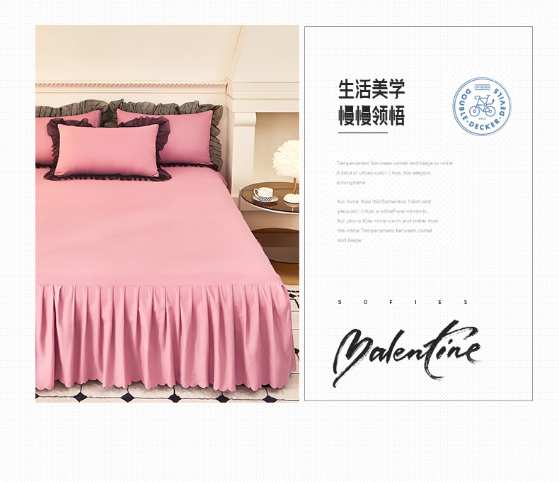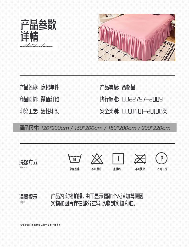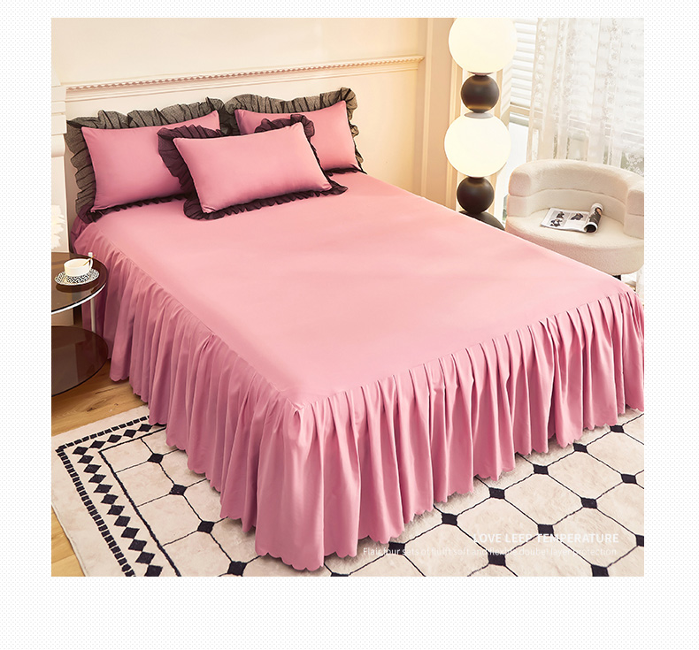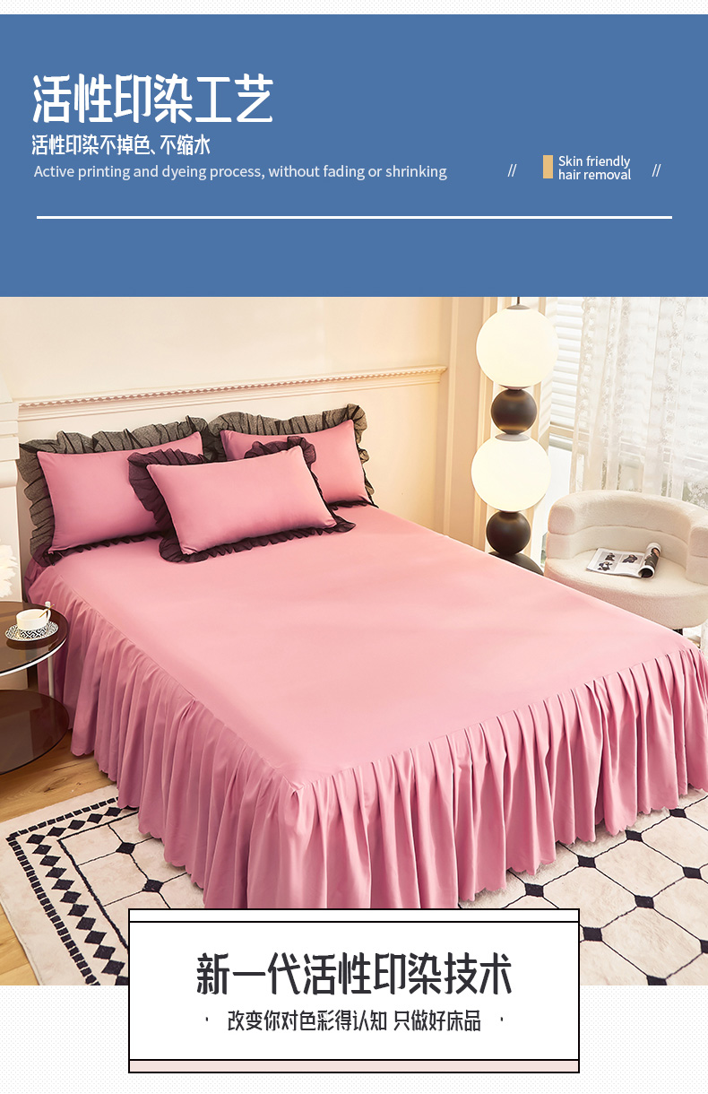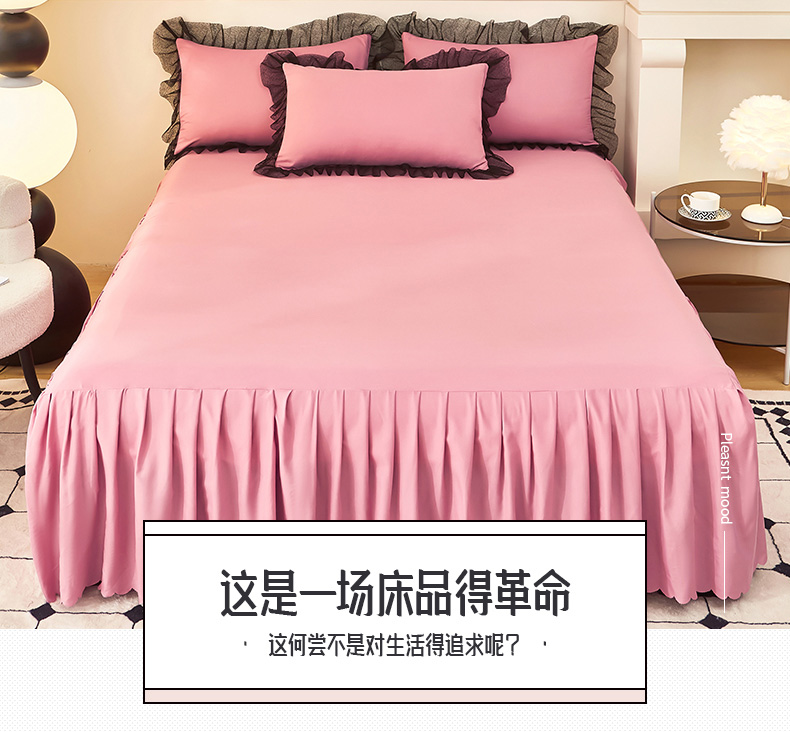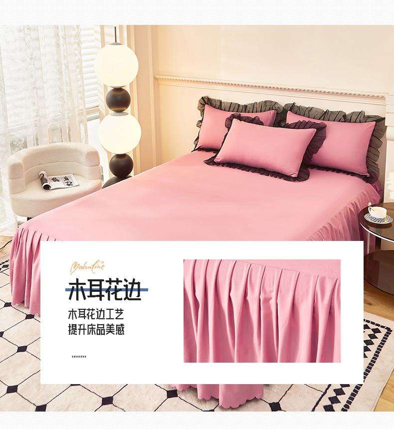 商品名称:莉莉安家纺 2025新款亲肤磨毛木耳花边床裙款单床裙 爱丽丝-相思粉