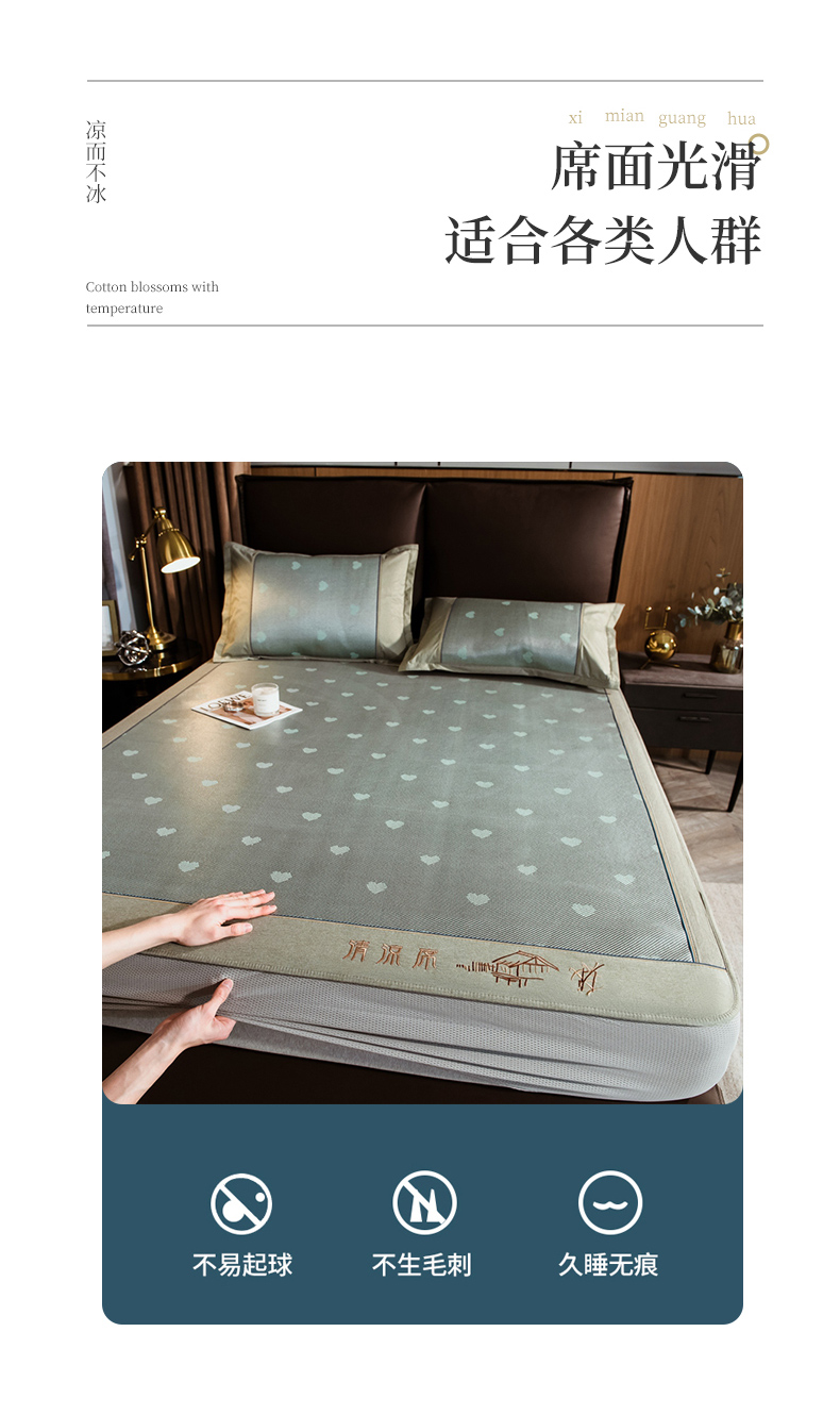 当前位置: 91家纺网 > 商品网购 > 床上用品 > 凉席 > 其他凉席 > 全季家居 2024新款加厚加密宽边刺绣提花冰藤凉席 爱心-水绿(床笠款)