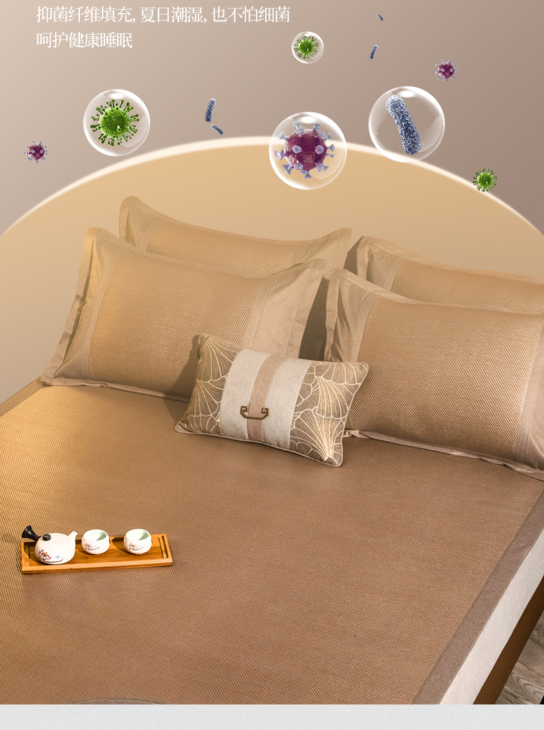 (总)全季家居 2025新款A类抗菌防螨幸运星系列冰藤席凉席席子,金咖 床席,水绿 床席,银灰 床席,金咖 床笠,水绿 床笠,银灰 床笠
