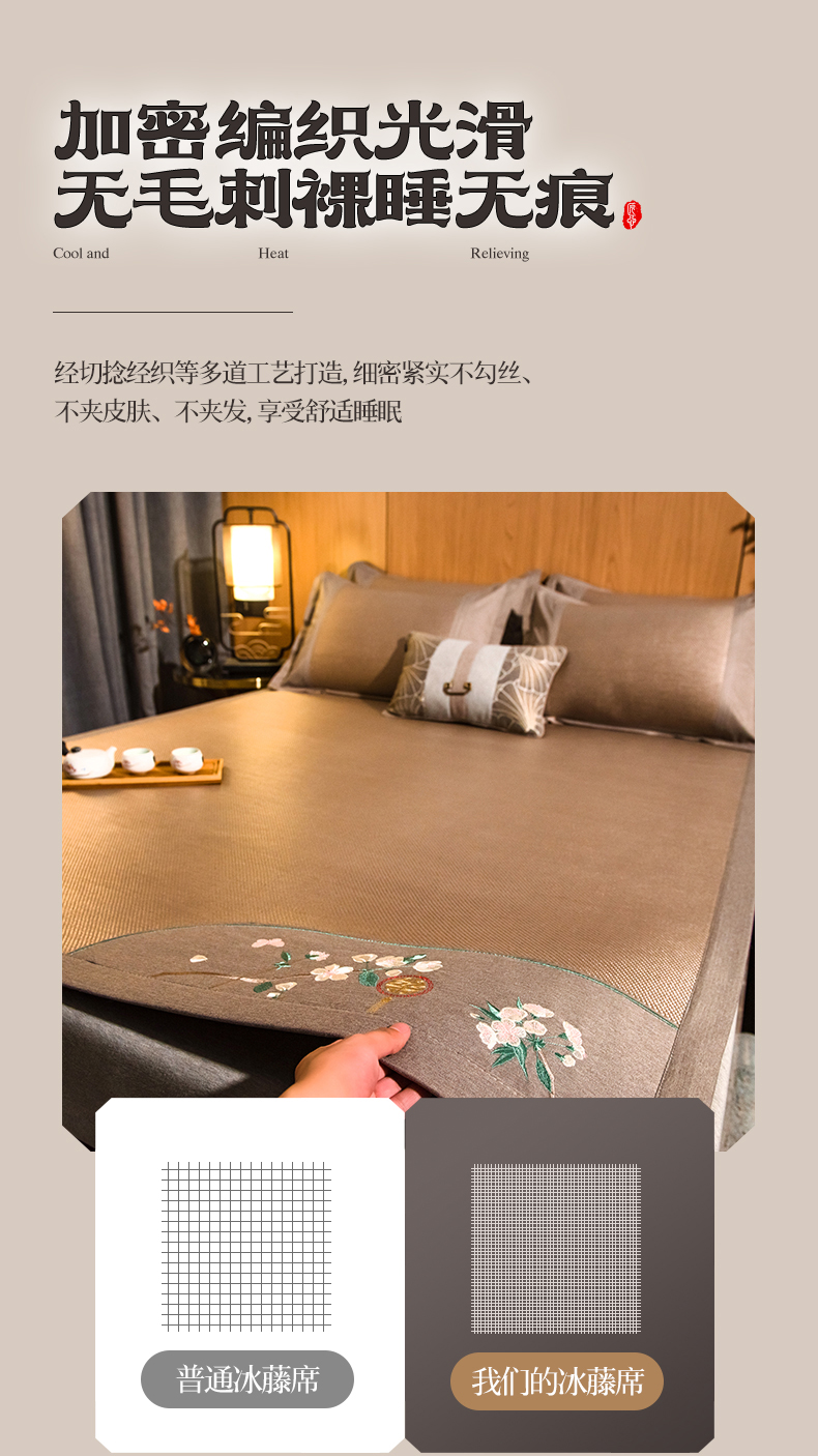 全季家居 2024新款加厚5A抗菌绣花古风系列冰藤席 兰亭序-浅咖