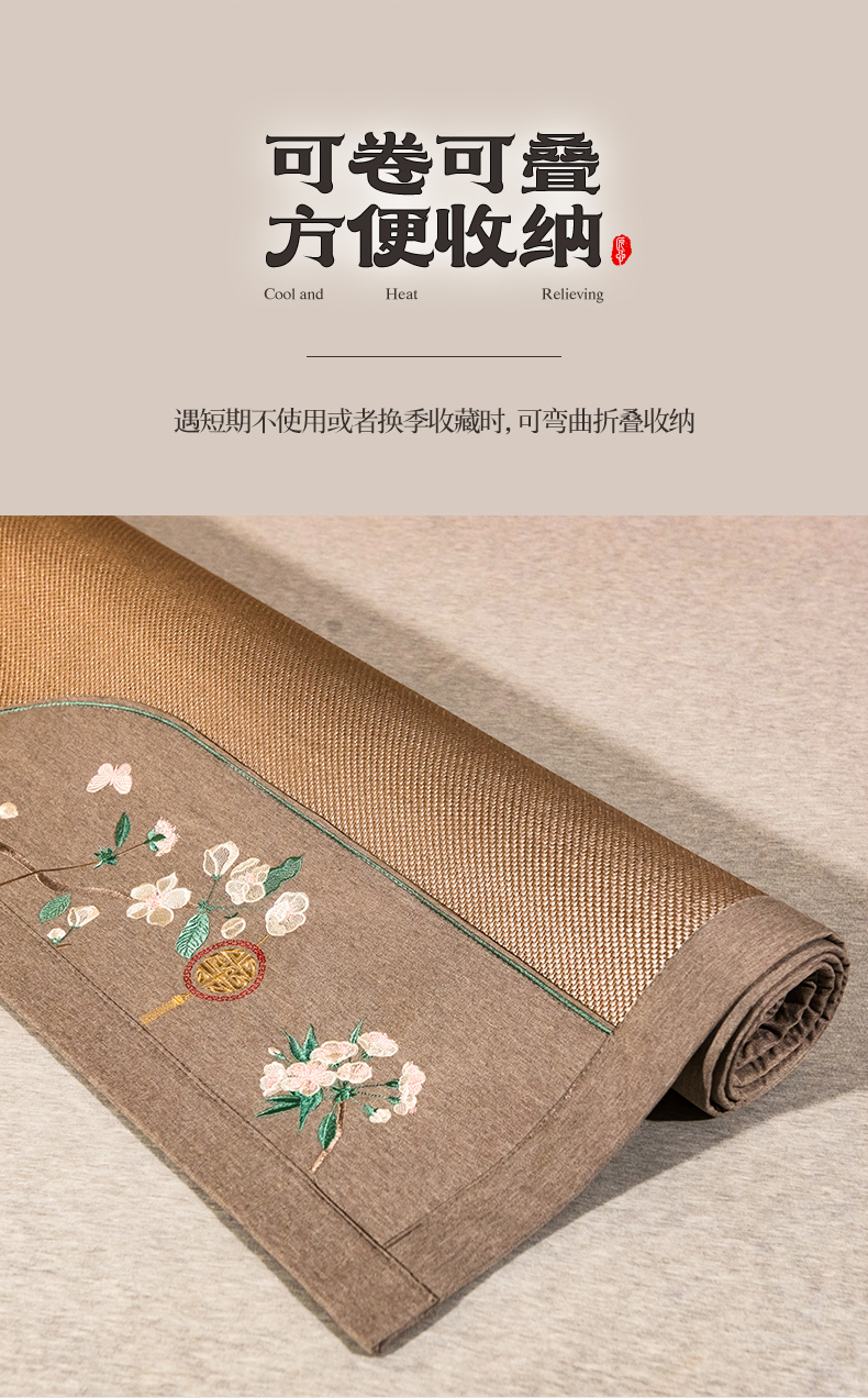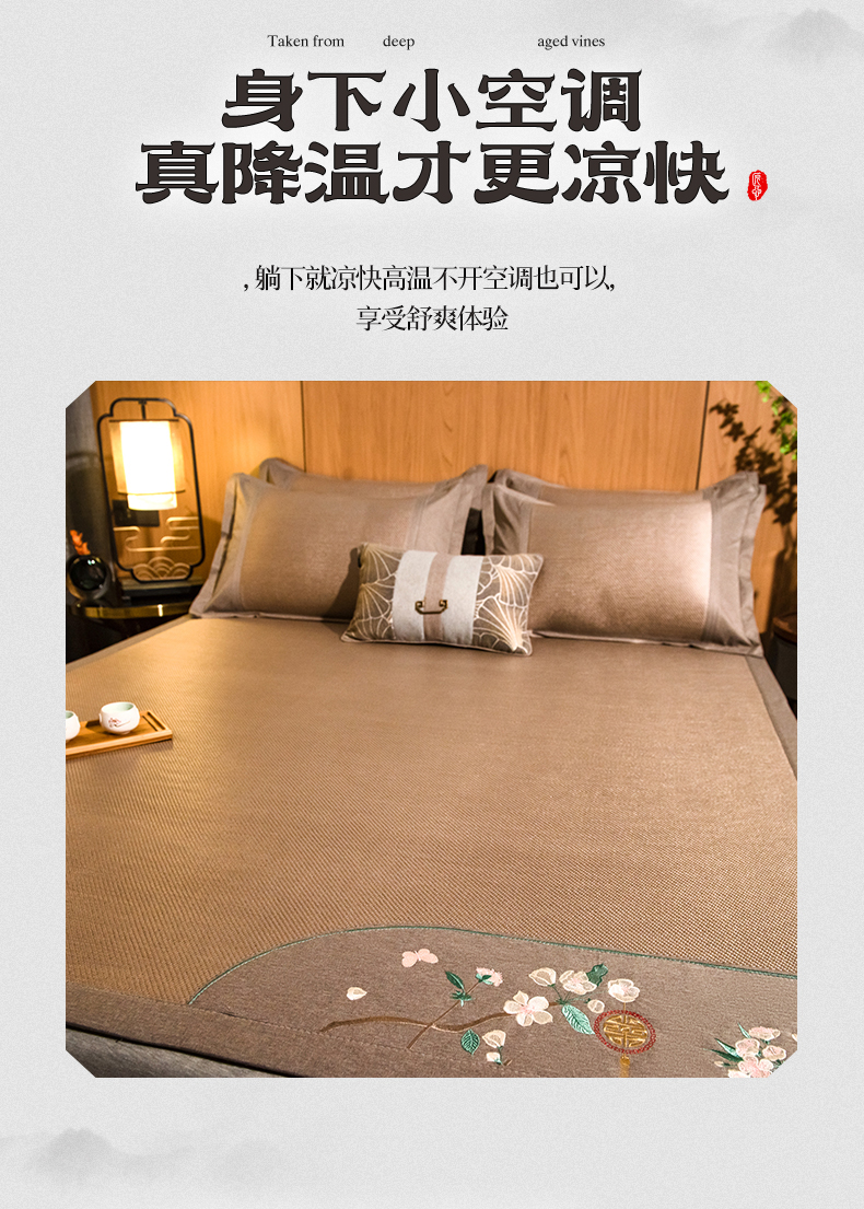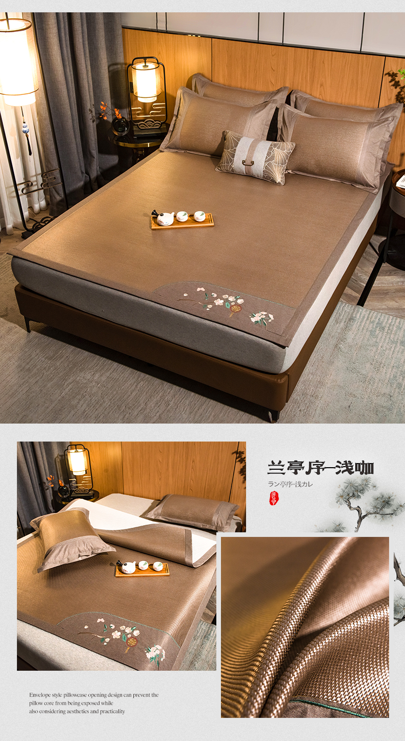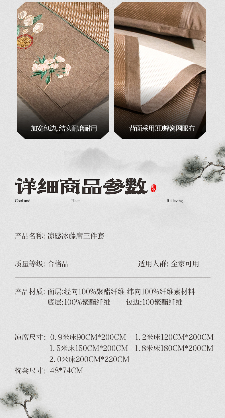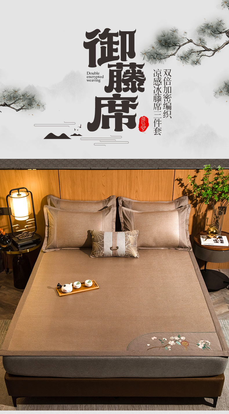 商品名称:全季家居 2024新款加厚5A抗菌绣花古风系列冰藤席 兰亭序-浅咖