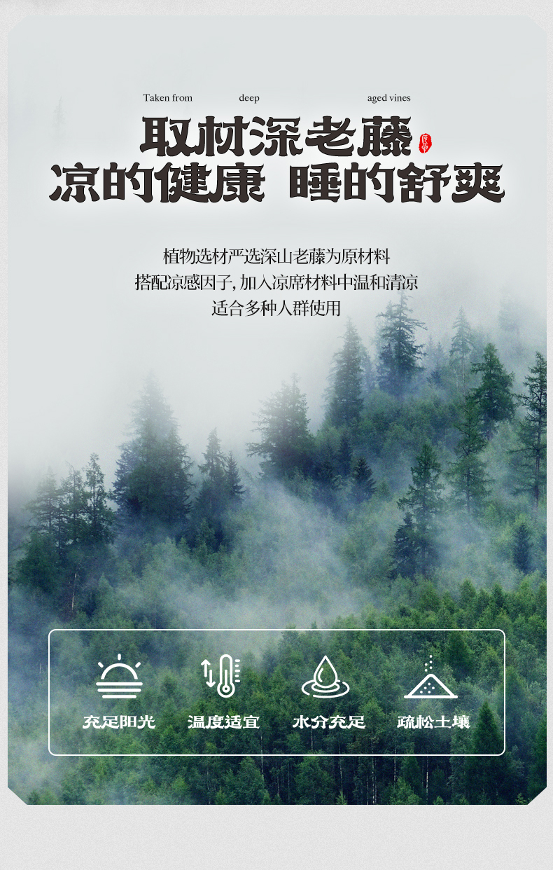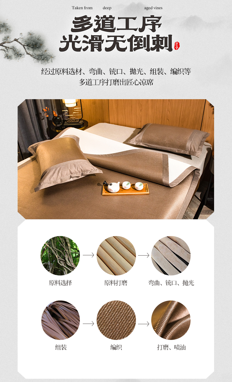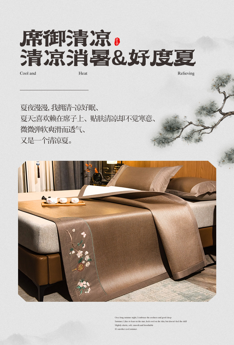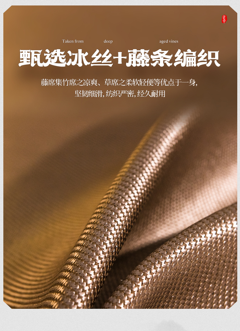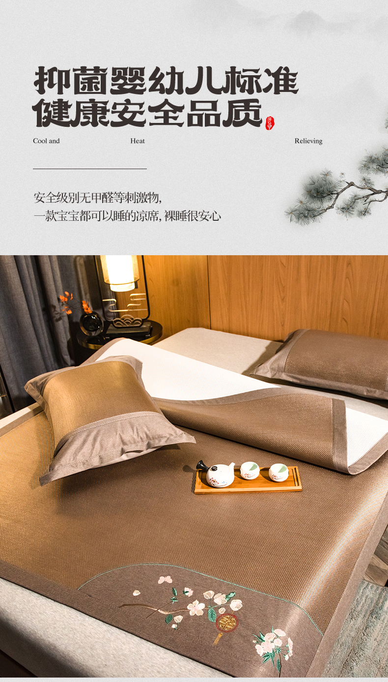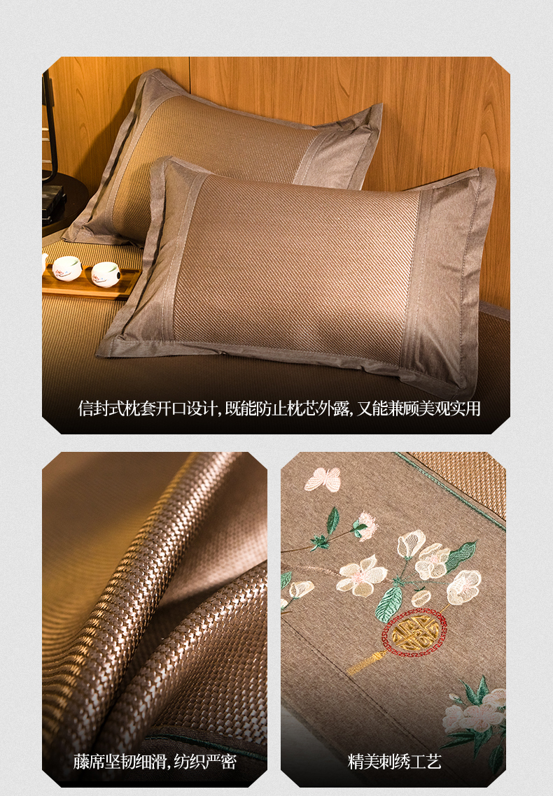 商品名称:全季家居 2024新款加厚5A抗菌绣花古风系列冰藤席 兰亭序-浅咖