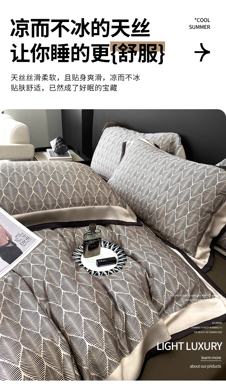 (总)优悦 2023新款水洗真丝轻奢印花款四件套,安格斯-黄,安格斯-灰,安格斯-绿,迪丽奥-灰,迪丽奥-蓝,迪丽奥-绿,浅浅叶语-灰,浅浅叶语-绿,森林物语-蓝,森林物语-绿,森绿物语-灰,云中-粉,云中-灰,云中-蓝,云中-绿