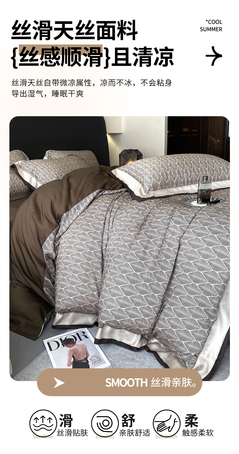 (总)优悦生活馆 2025新款顺滑冰丝夏被四件套-轻梦轻语,轻梦-绿,轻梦-香槟,轻梦-紫,轻语-绿,轻语-紫