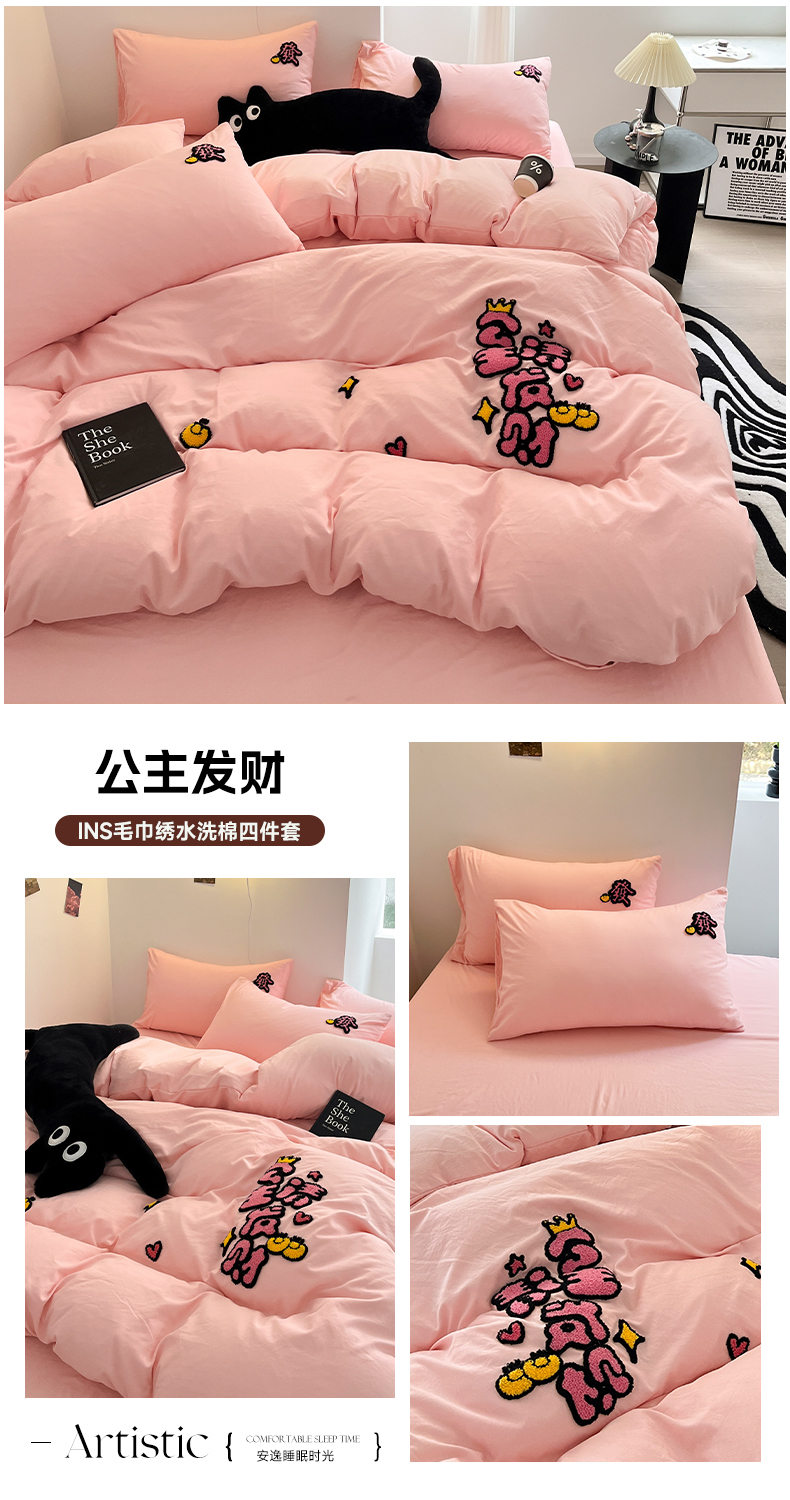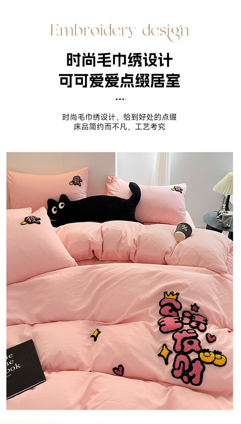(总)耀达家居 2024新款ins毛巾绣水洗棉四件套