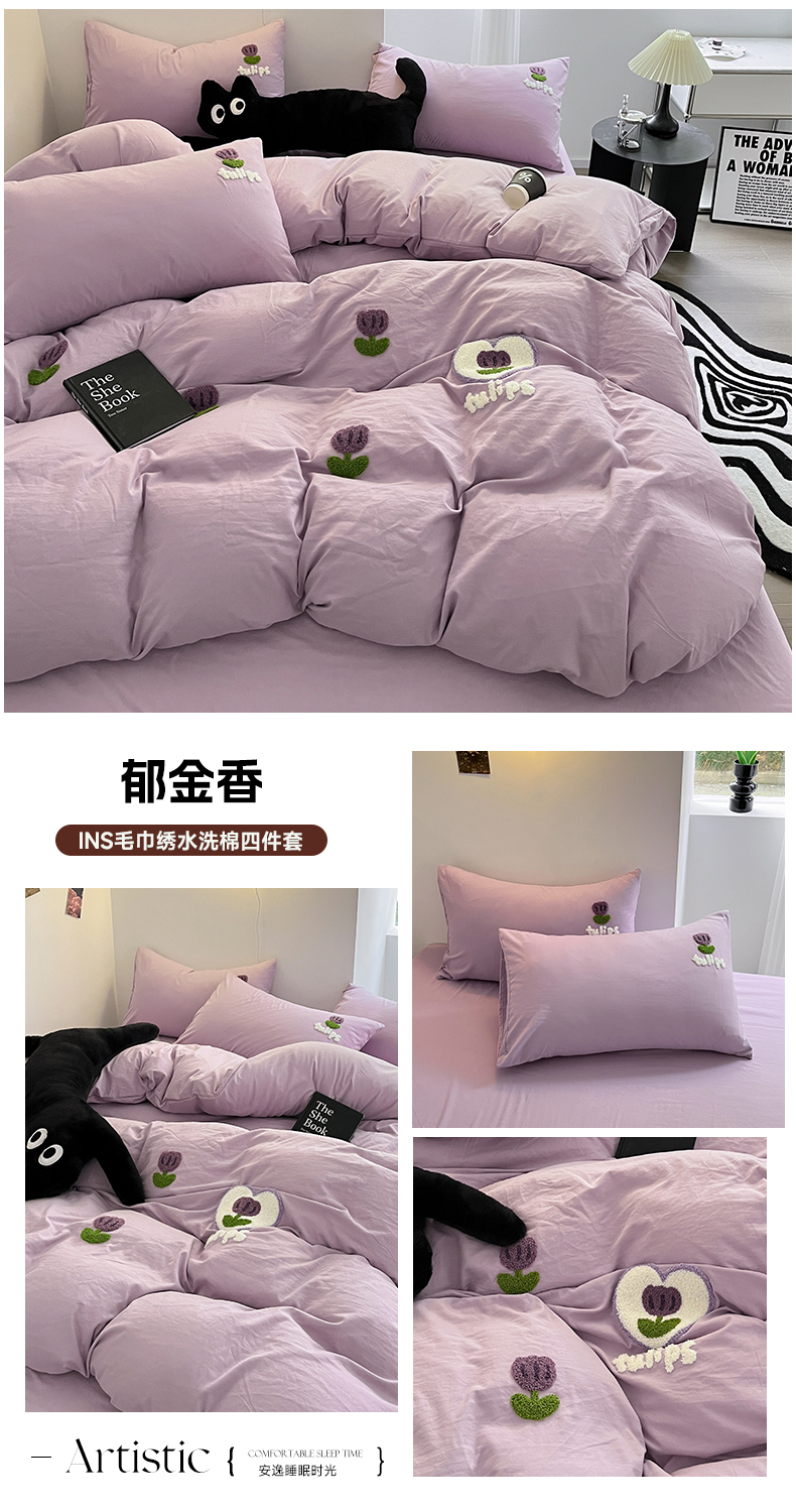 耀达家居 2024新款ins毛巾绣水洗棉四件套 郁金香,郁金香