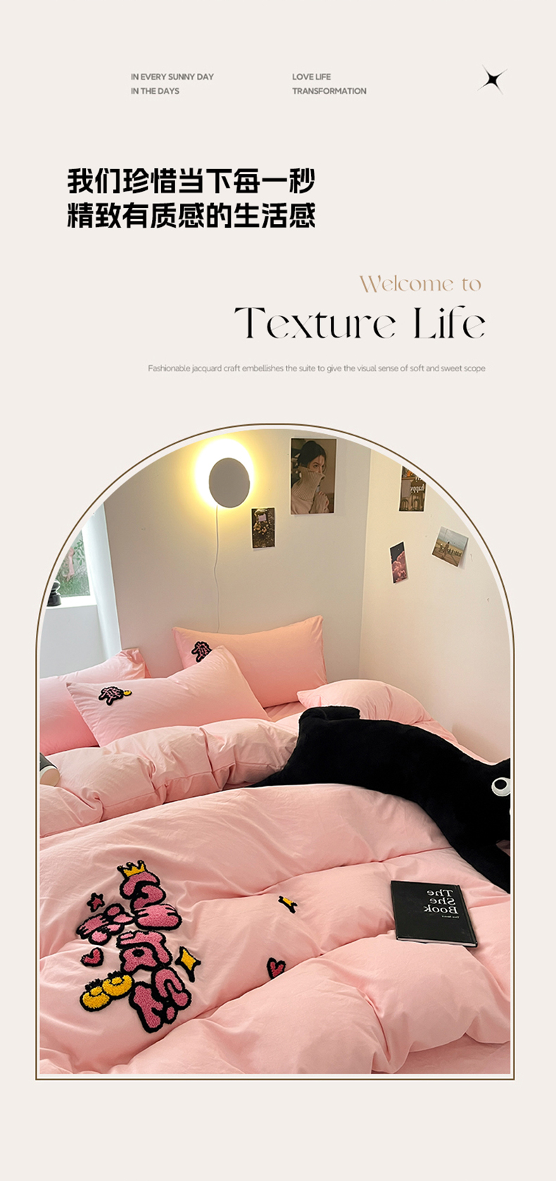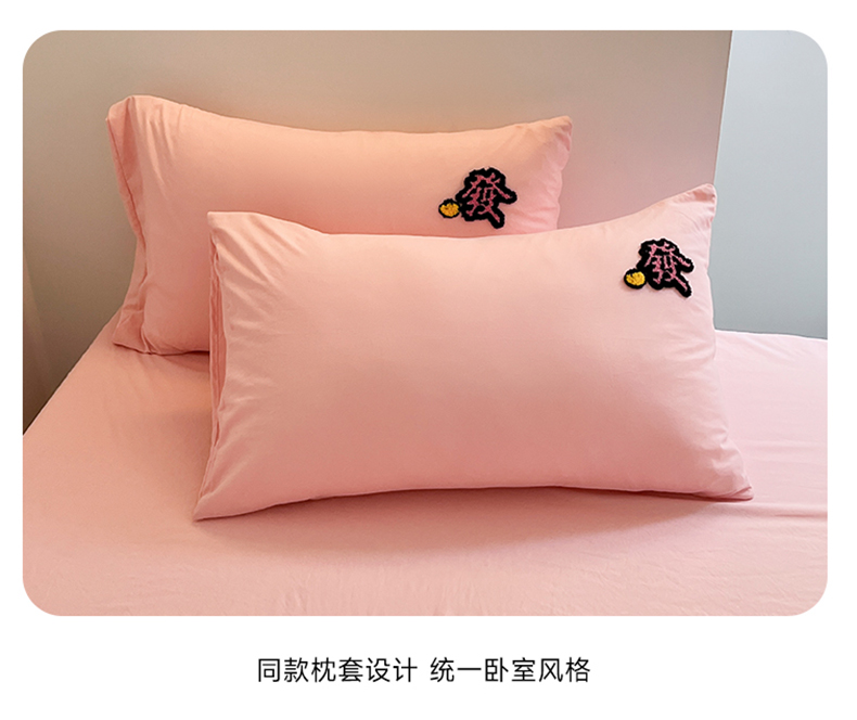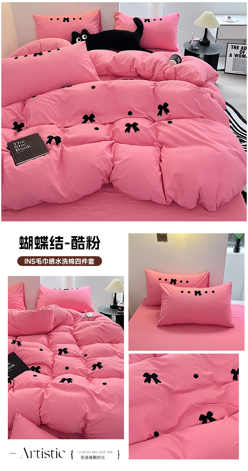 耀达家居 2024新款ins毛巾绣水洗棉四件套 蝴蝶结-酷粉,蝴蝶结-酷粉