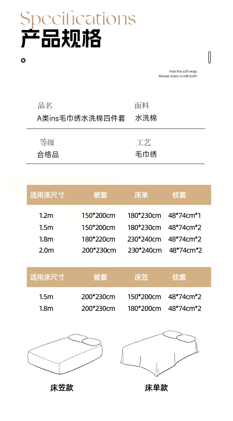 商品名称:(总)耀达家居 2024新款ins毛巾绣水洗棉四件套