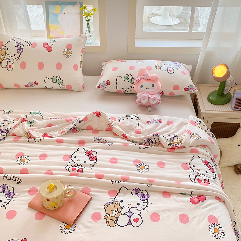 (总)ds生活馆 2025新款三丽鸥大版印花豆豆被春秋被冬被,快乐凯蒂,大眼蛙,蛋糕美乐蒂,地球玉桂狗,公主库洛米,假日库洛米,开心库洛米,蓝色玉桂狗,香蕉帕恰狗,旋转木马