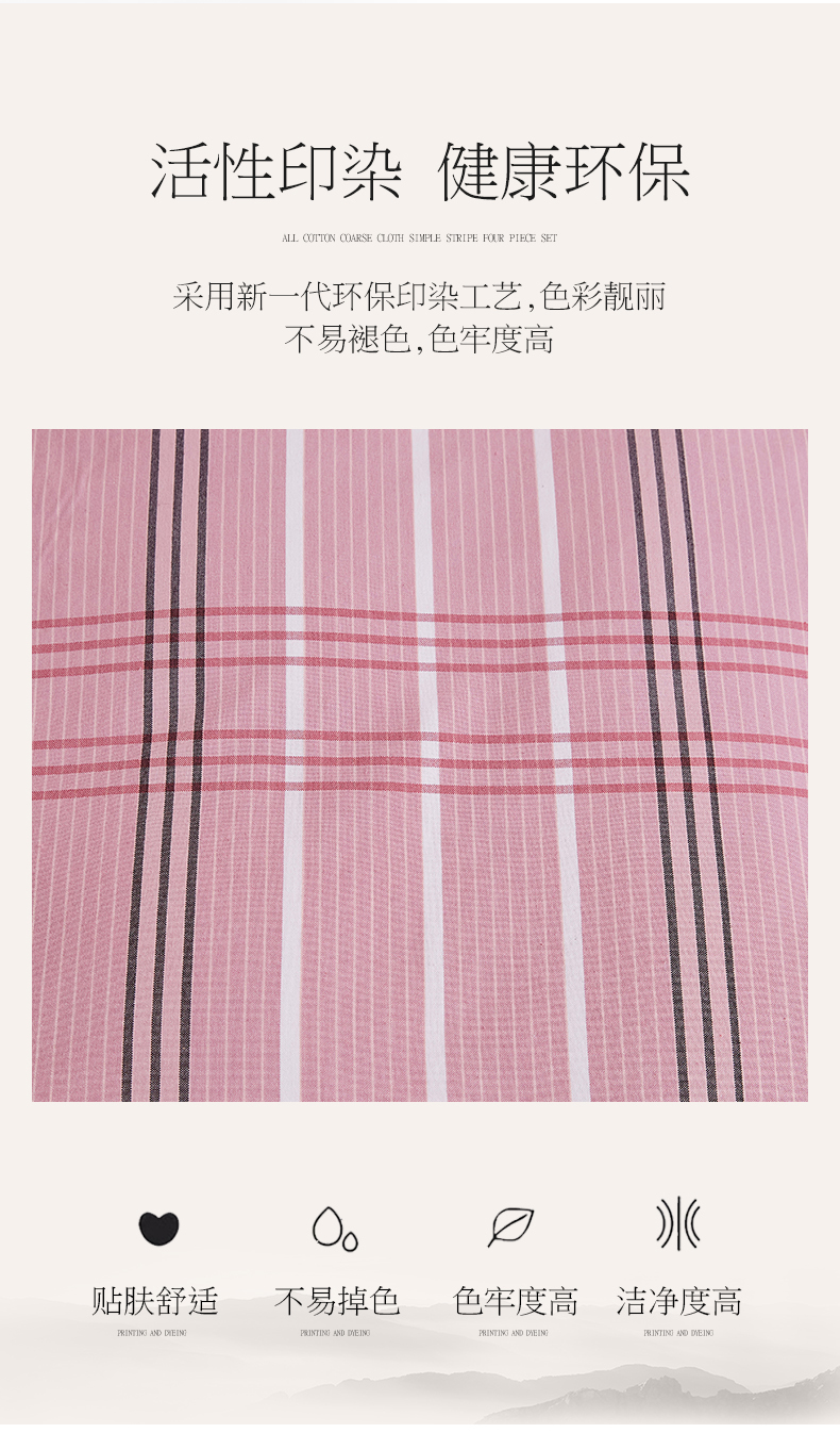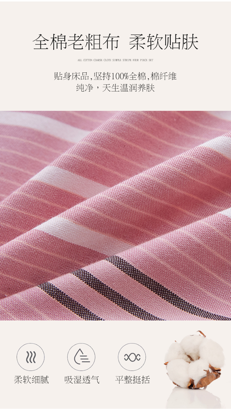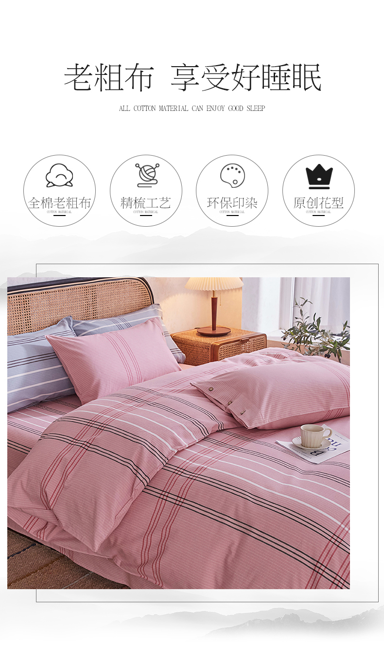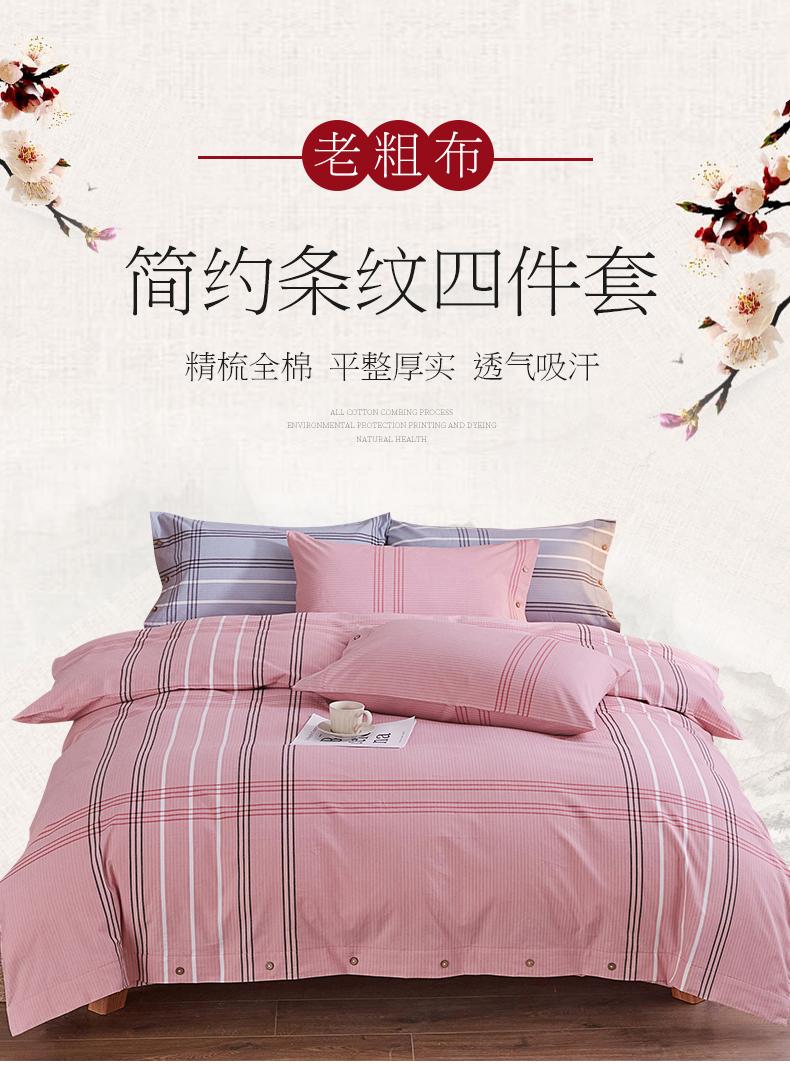 商品名称:金泰莱 2025新款32支精梳棉老粗布四件套全棉四件套纯棉四件套 大格-粉