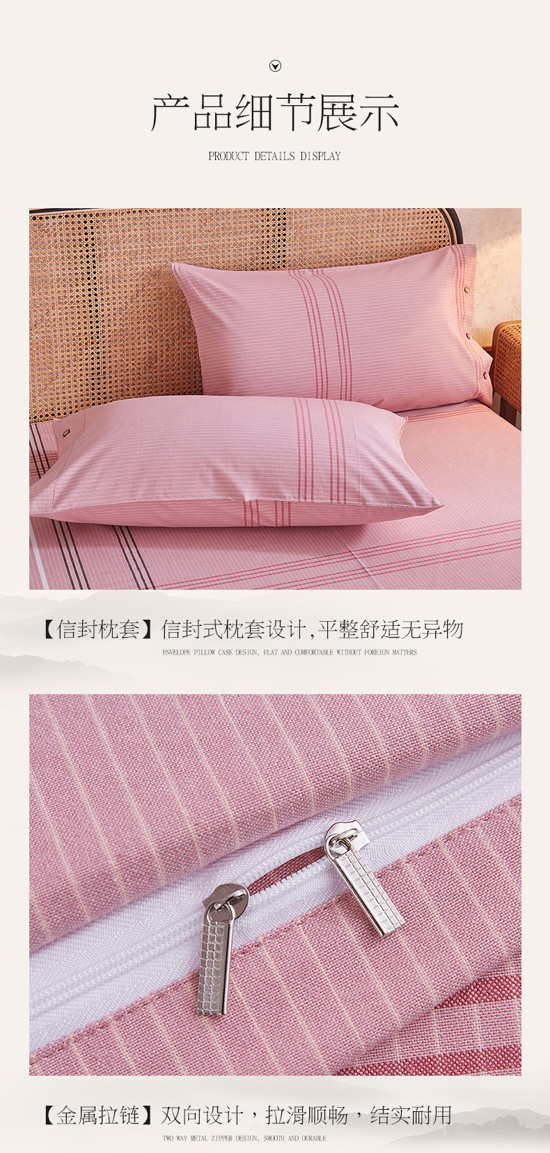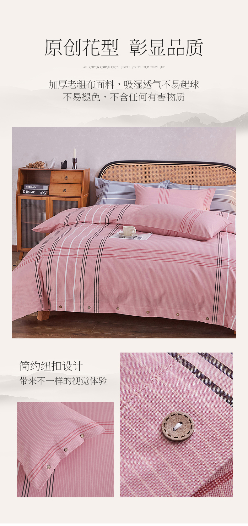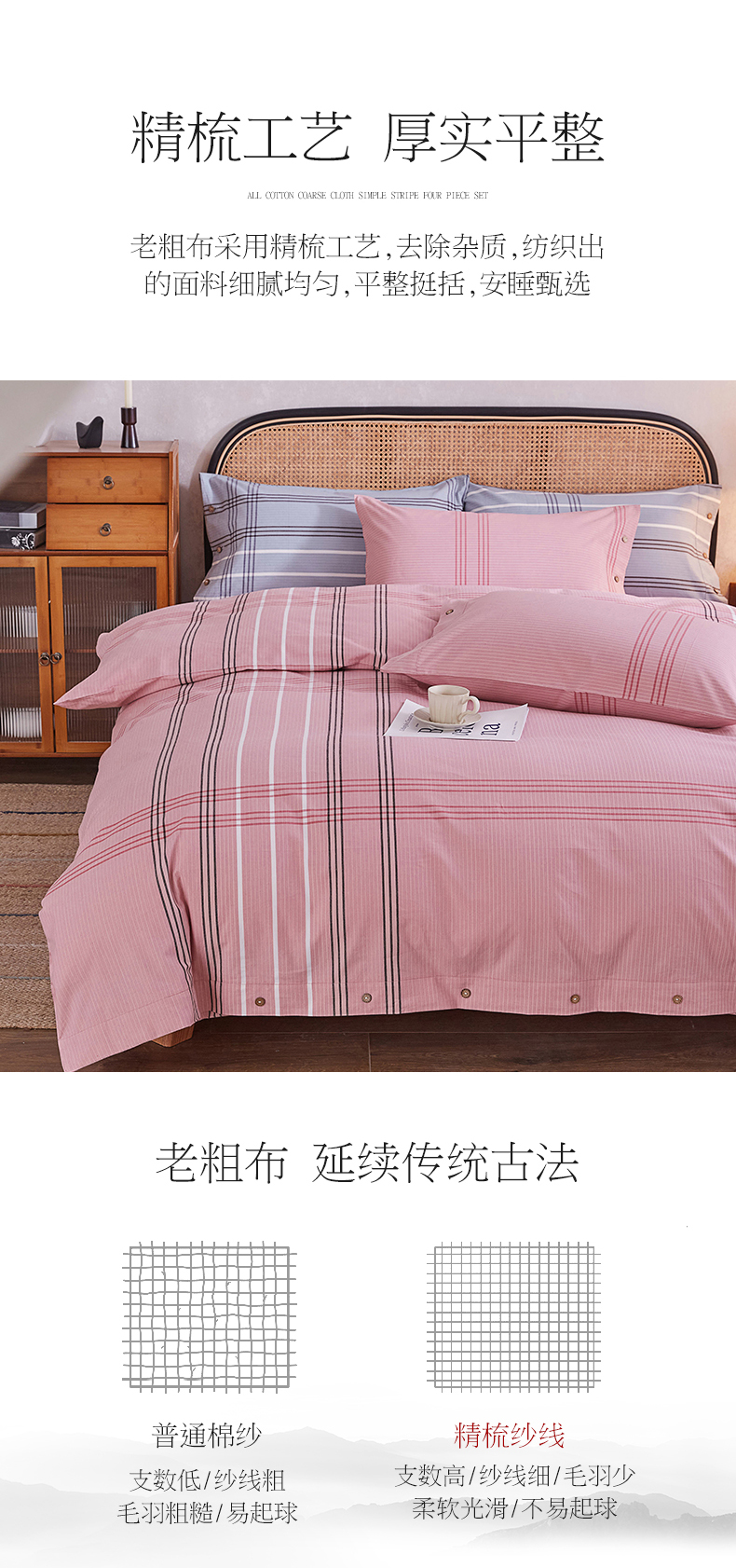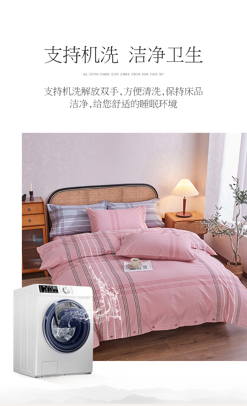 商品名称:金泰莱 2025新款32支精梳棉老粗布四件套全棉四件套纯棉四件套 大格-粉