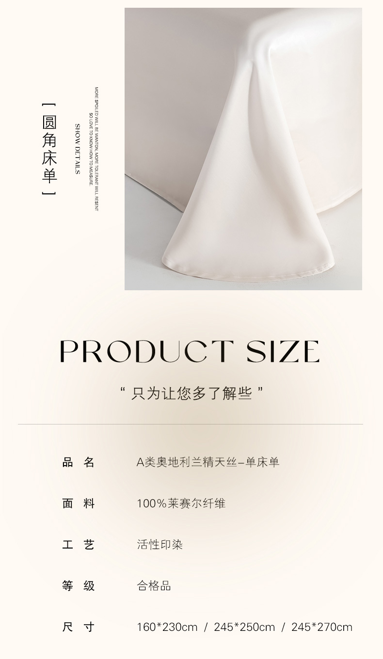 商品名称:云栖家居 202460支A类兰精天丝系列单品床单(风格一)米白