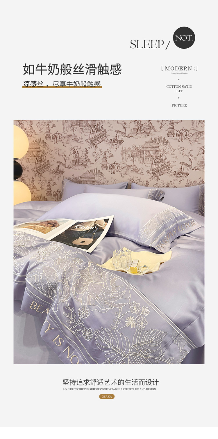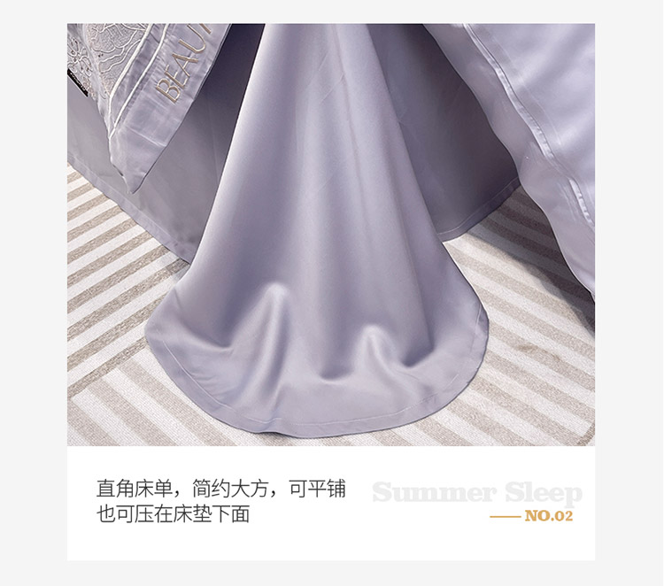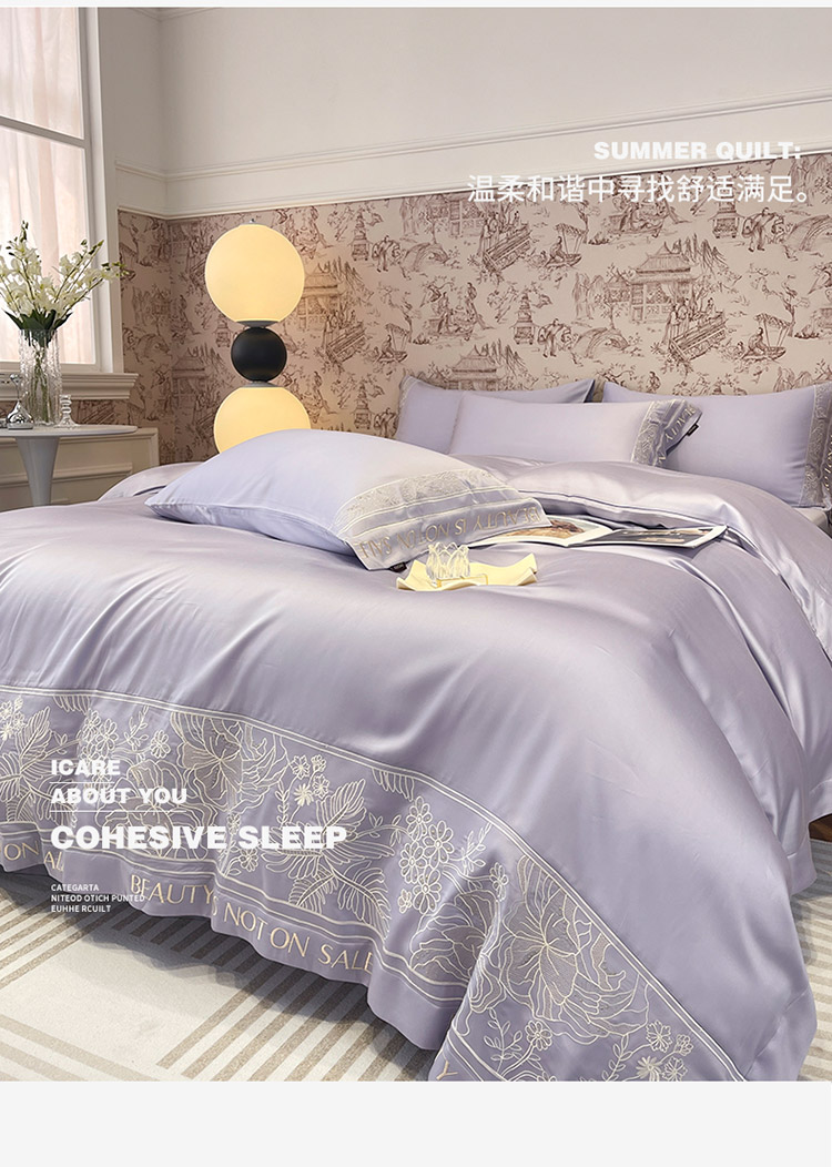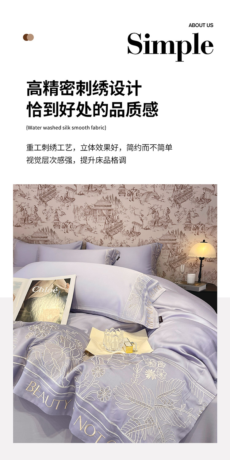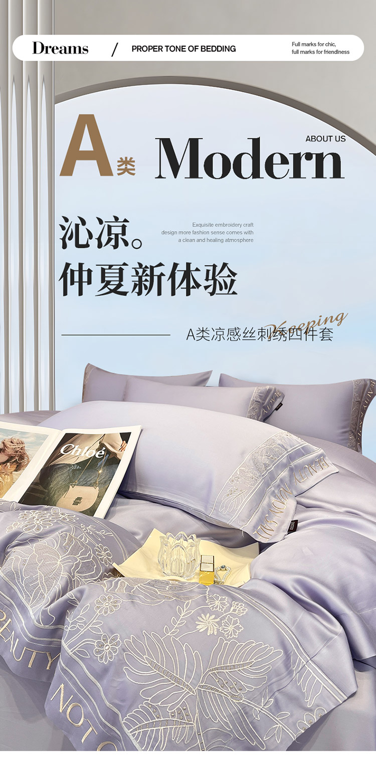 2024新款A类母婴级凉感真丝夏季裸睡丝滑床单床笠轻奢刺绣四件套 熏衣紫