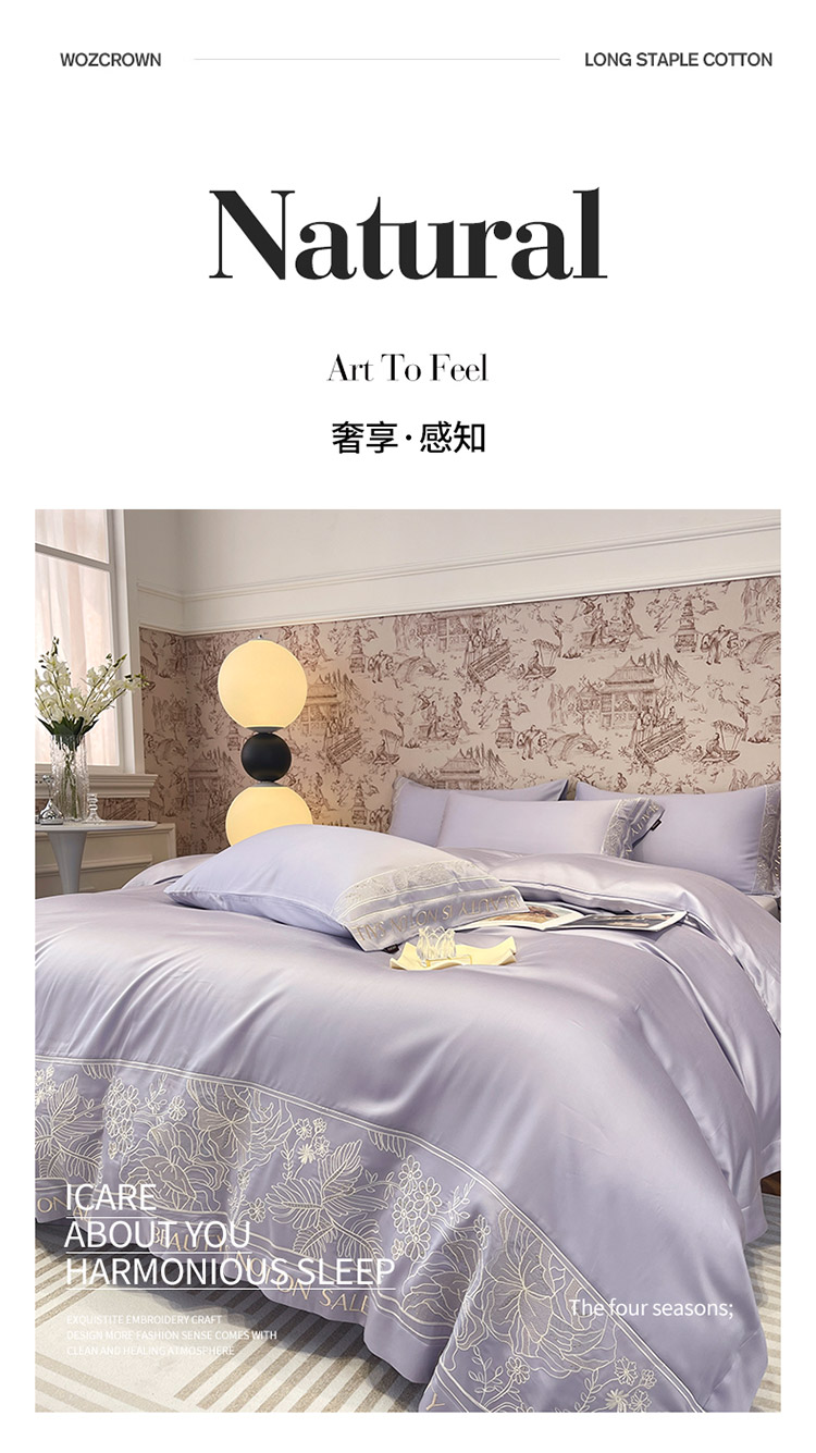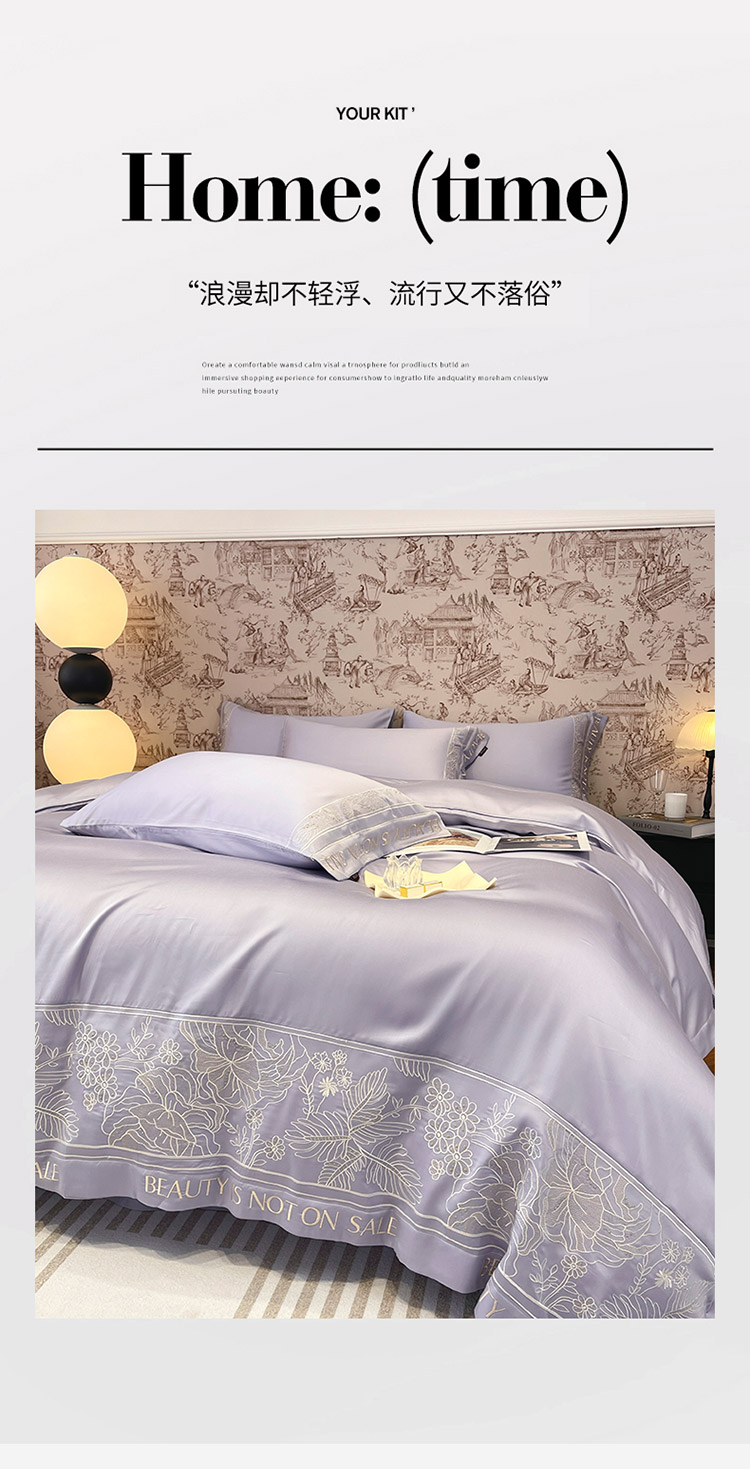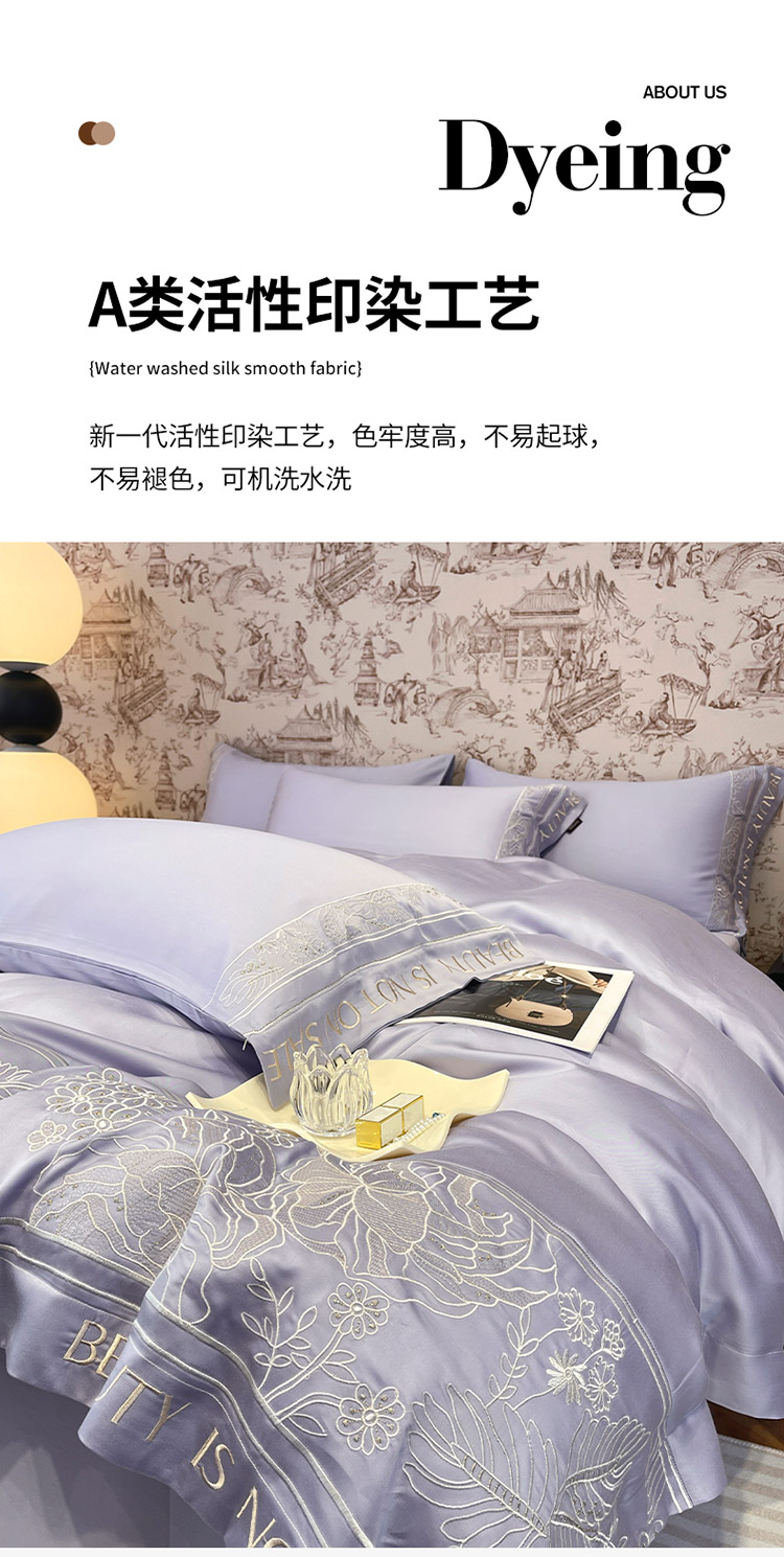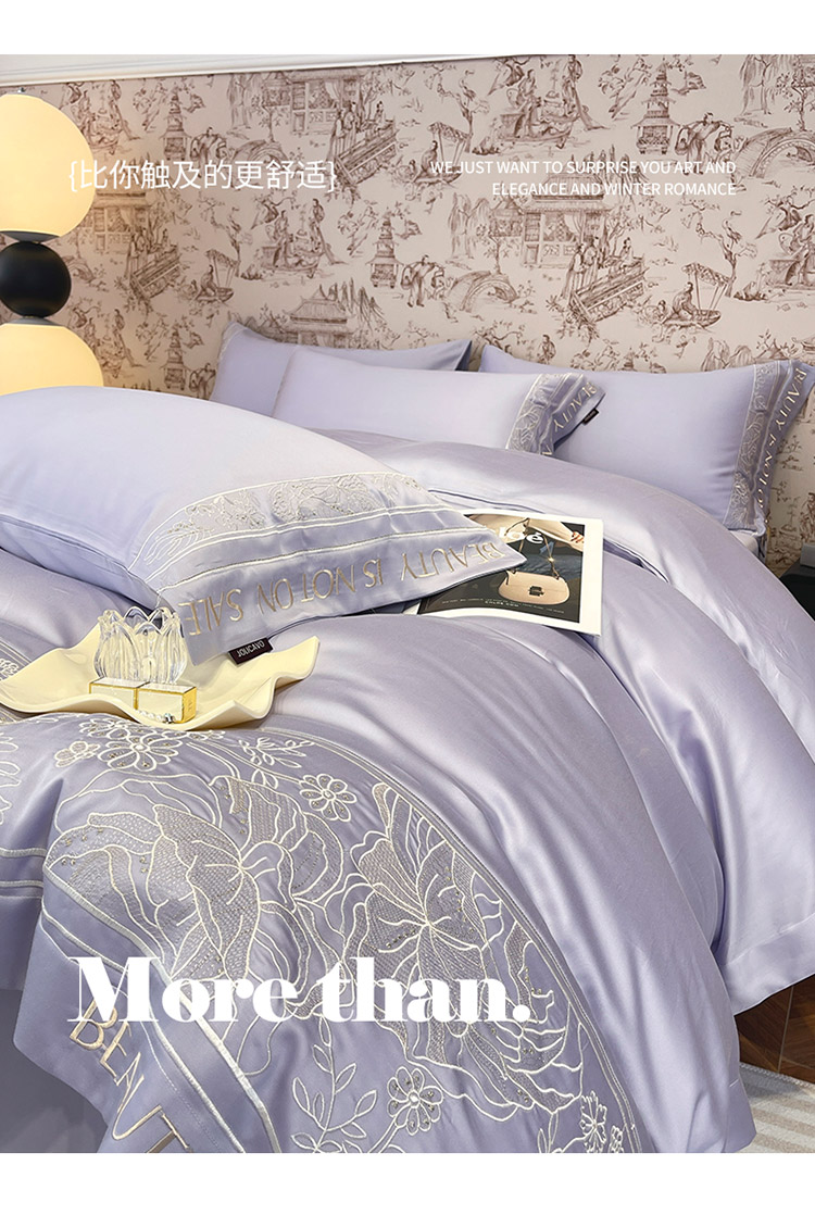 2024新款A类母婴级凉感真丝夏季裸睡丝滑床单床笠轻奢刺绣四件套 熏衣紫