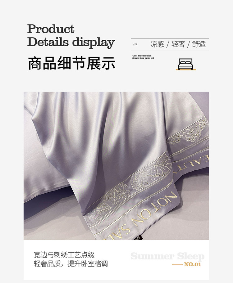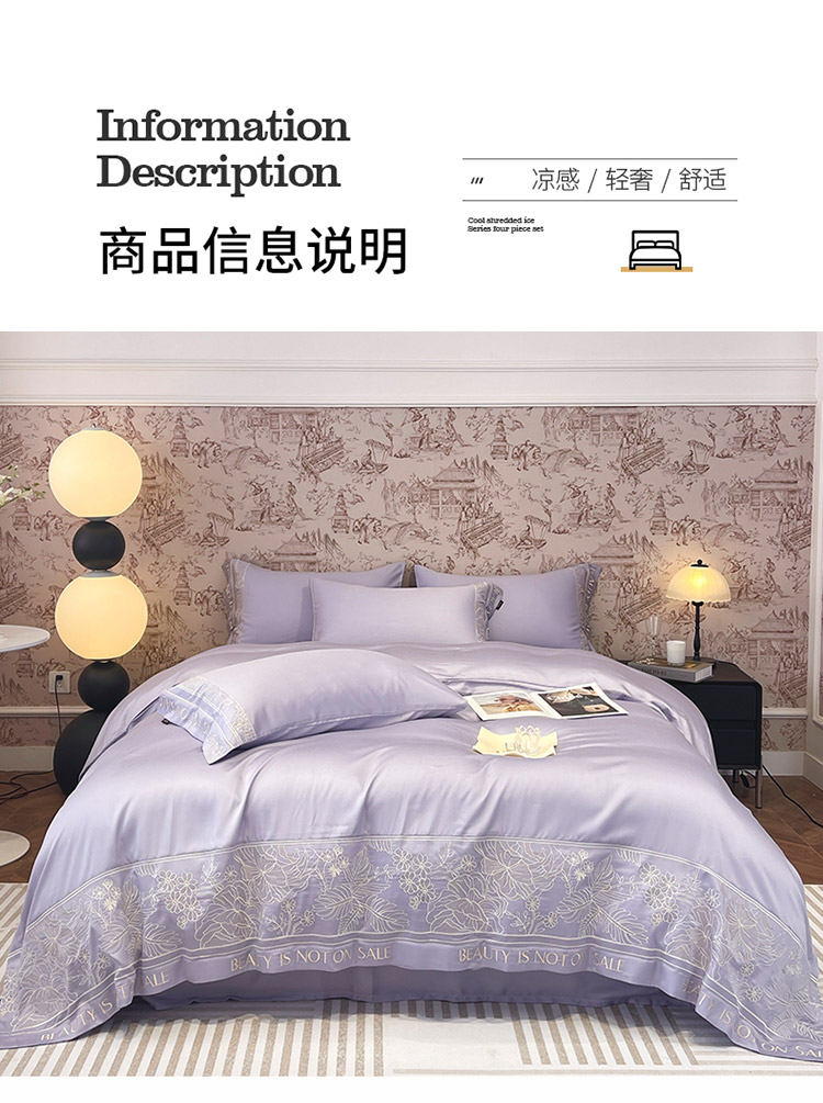 商品名称: 2024新款A类母婴级凉感真丝夏季裸睡丝滑床单床笠轻奢刺绣四件套 熏衣紫
