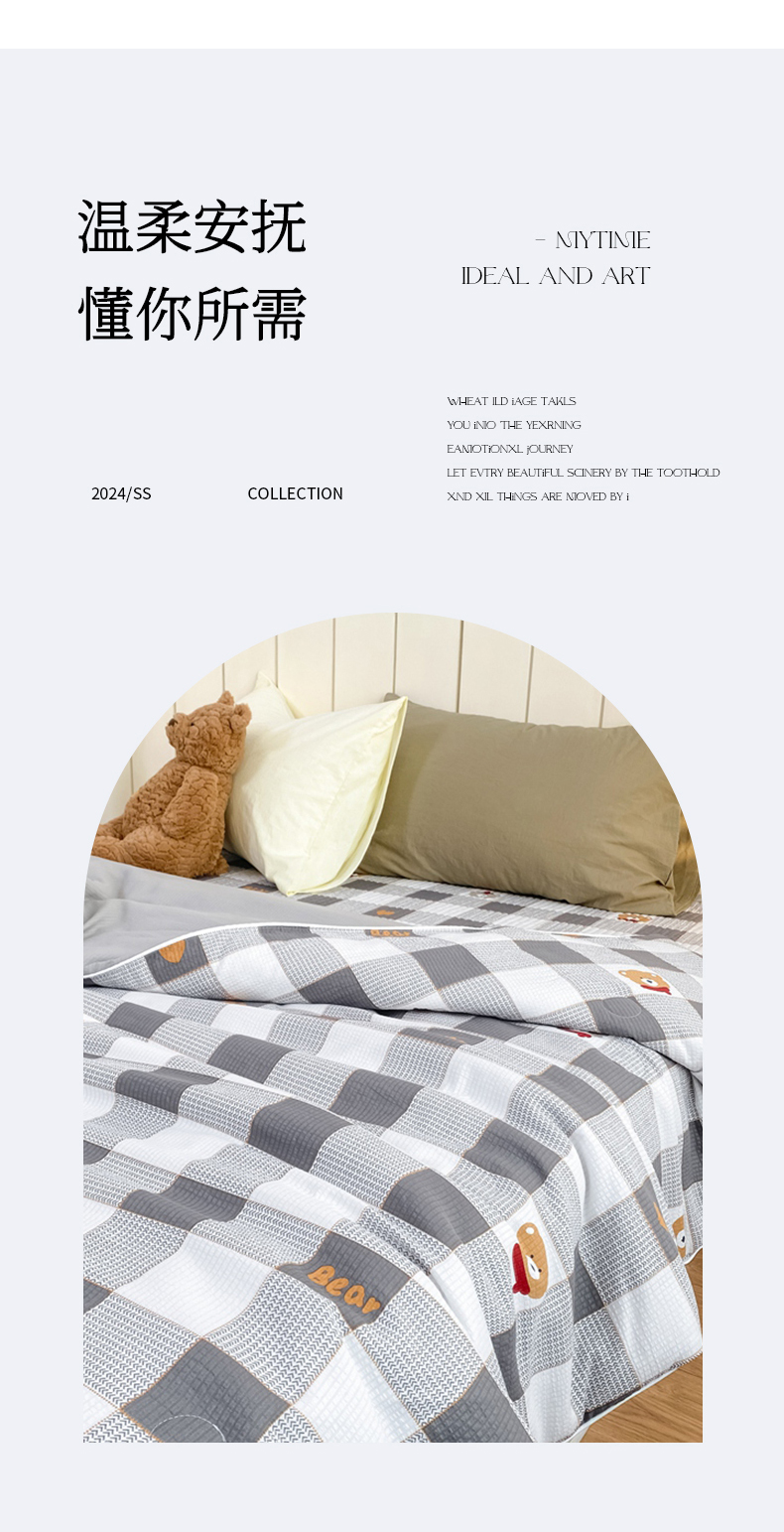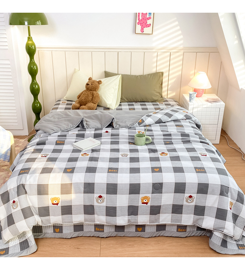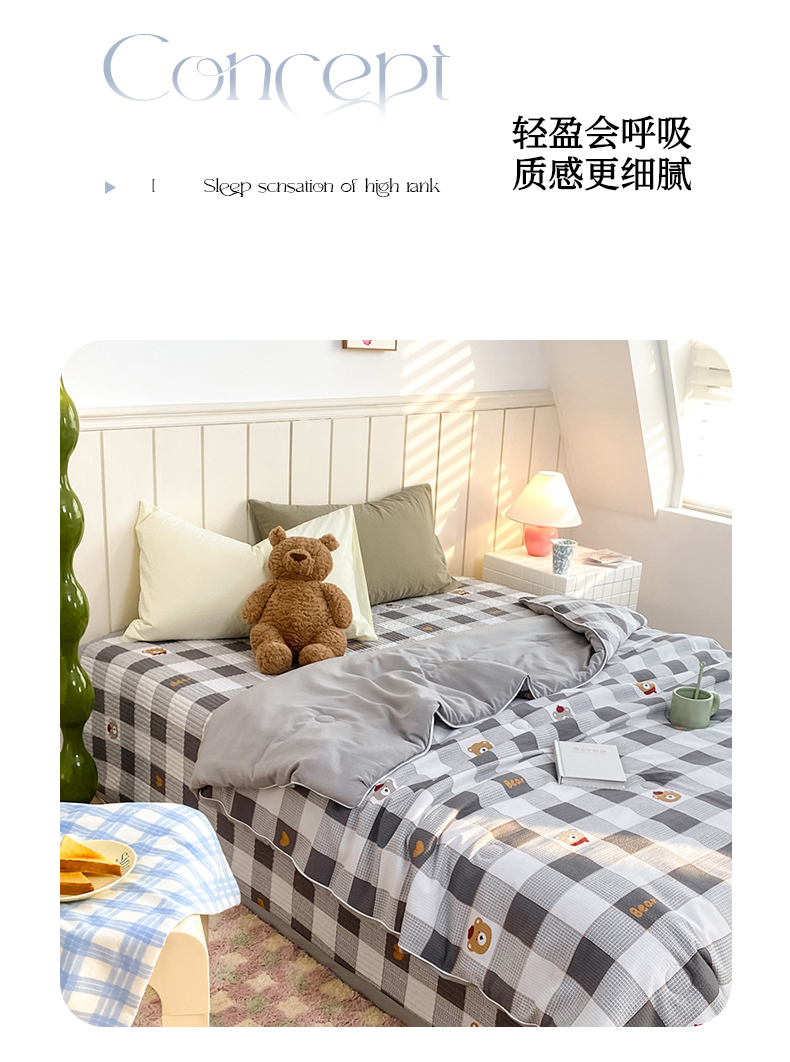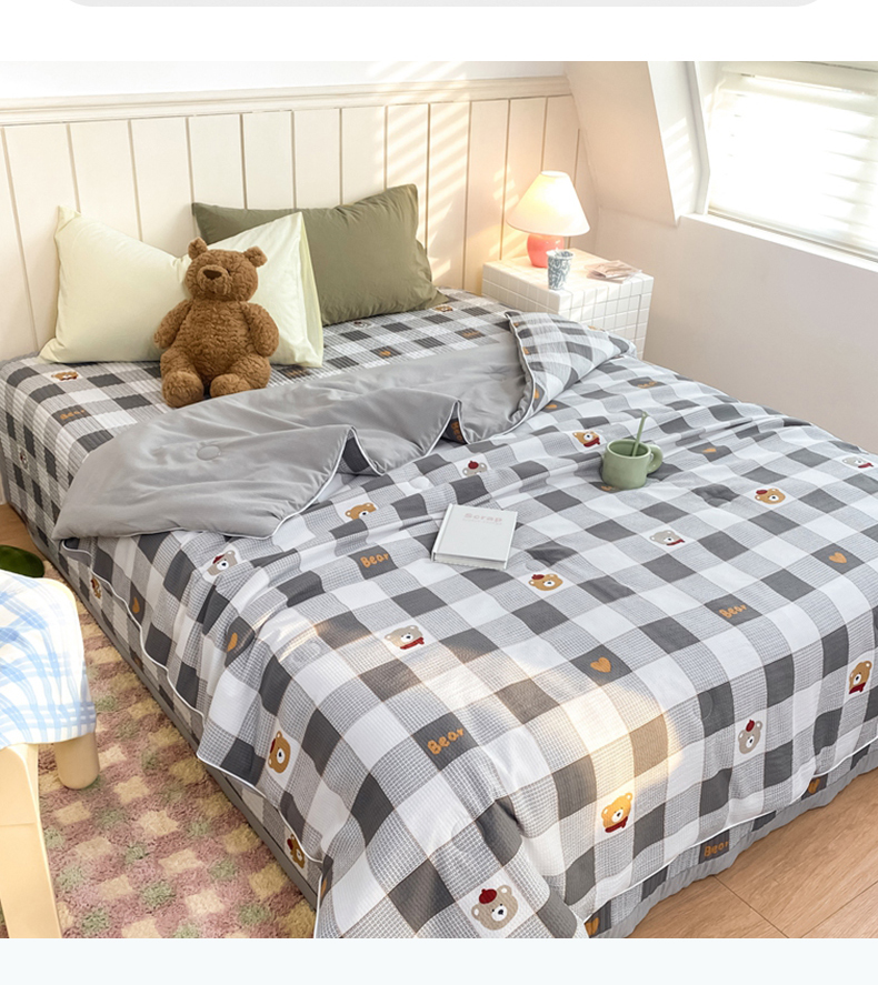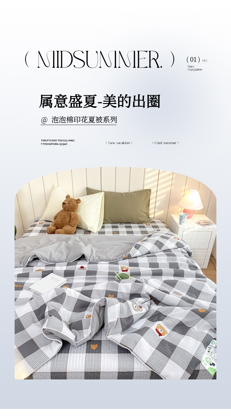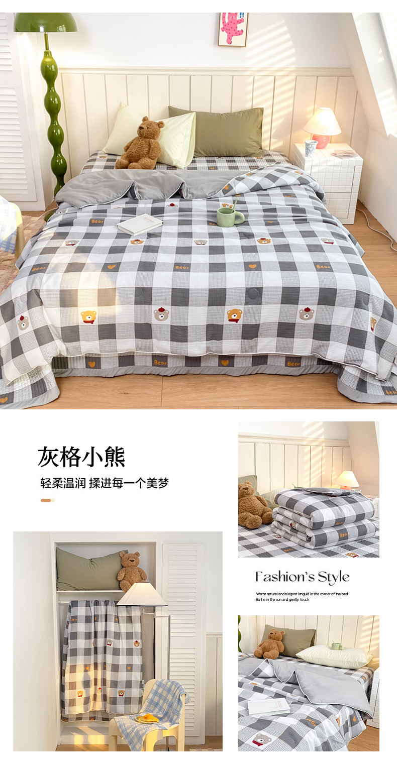 商品名称:羋多家纺 2024新款麻绳印花小米棉夏被云感泡芙棉被子泡泡纱单夏被(另有单独床盖)灰格小熊