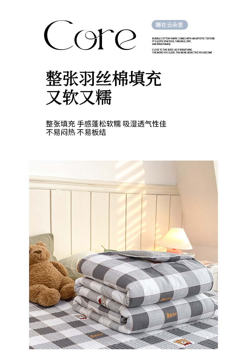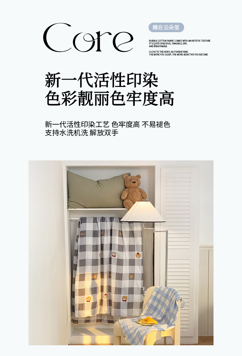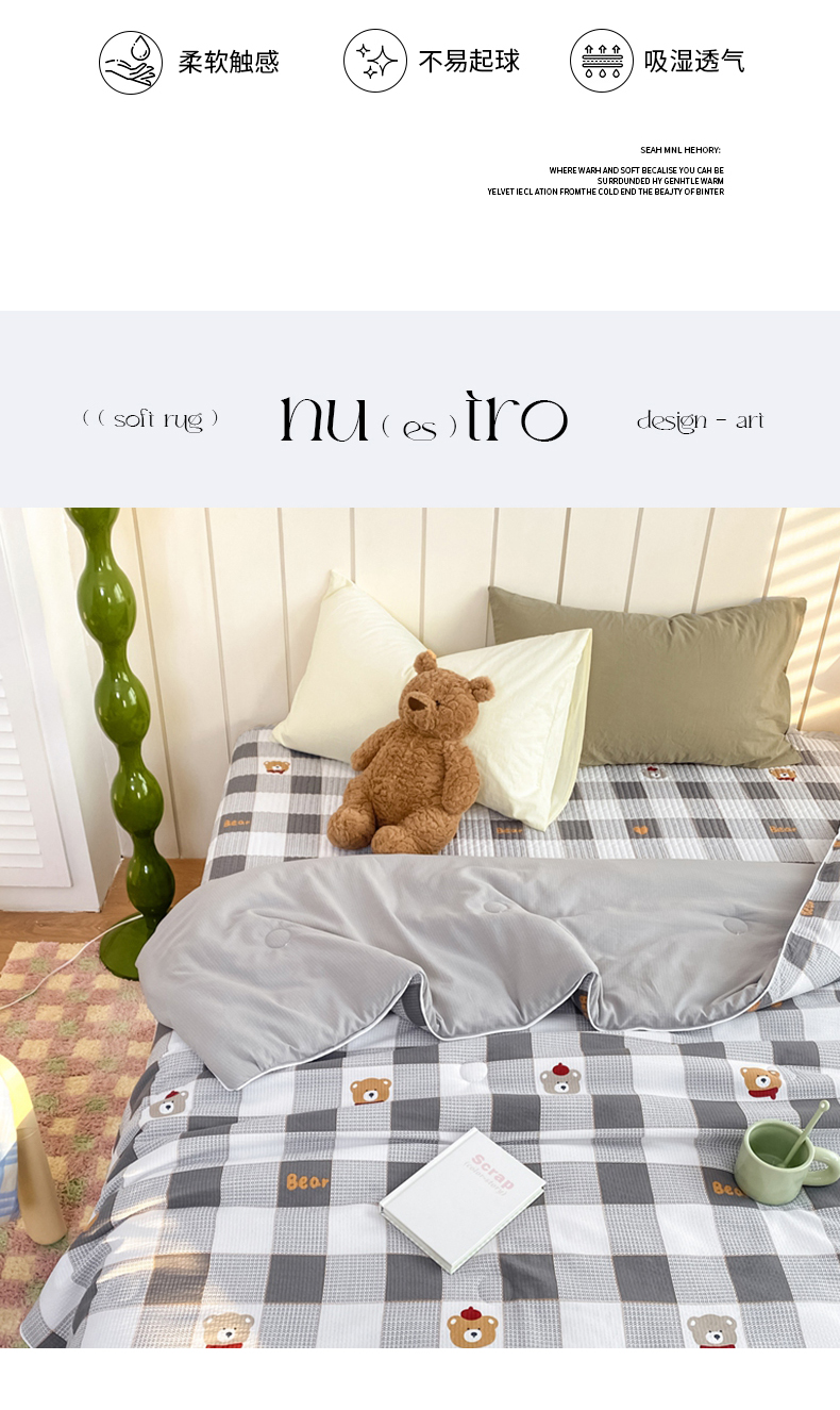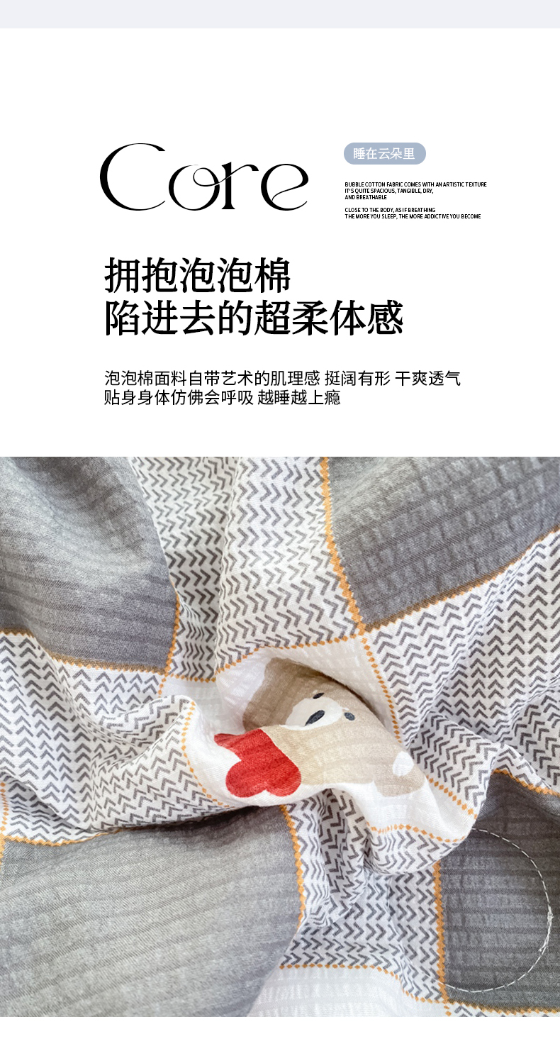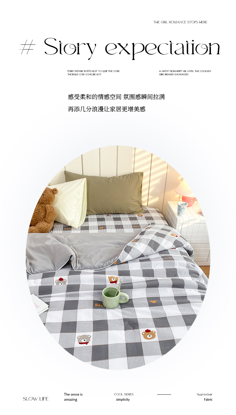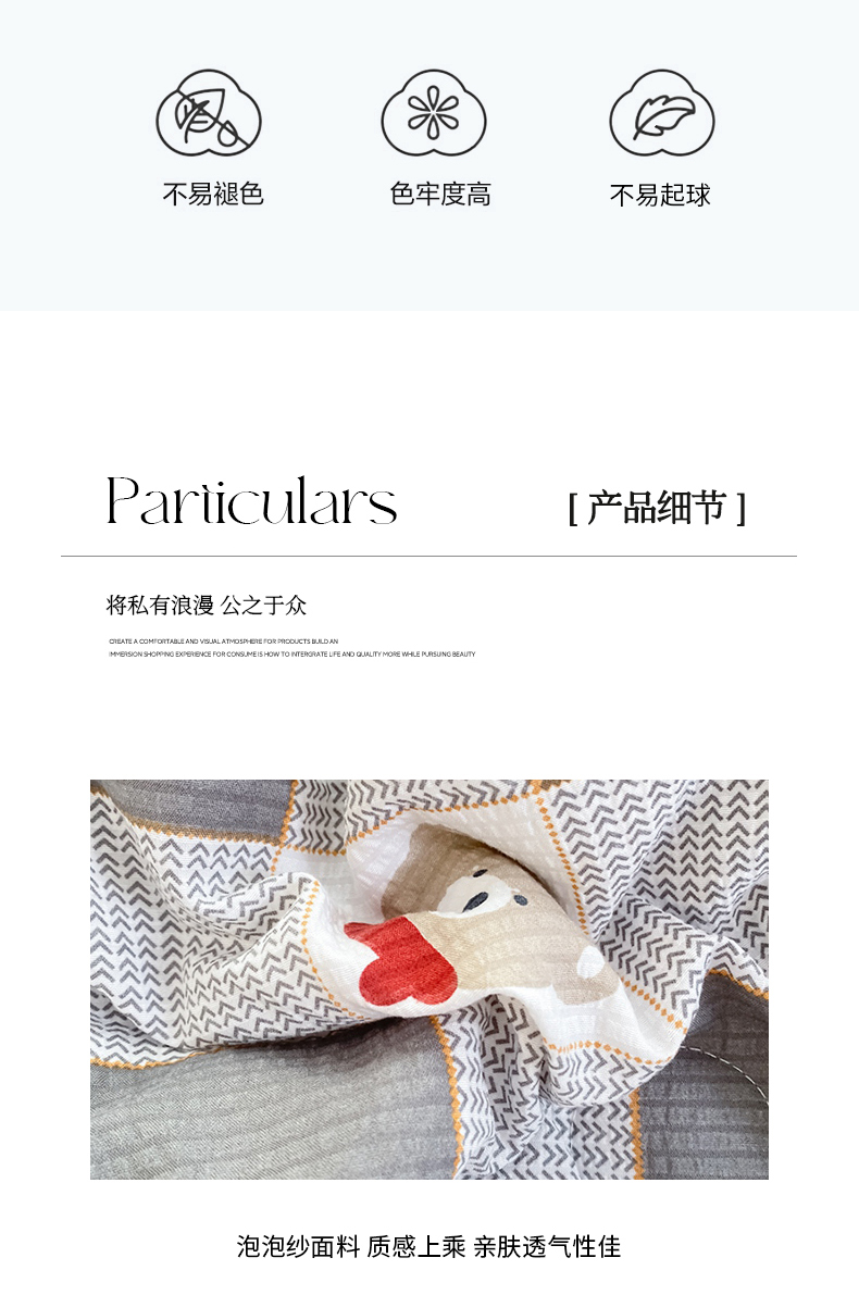 商品名称:羋多家纺 2024新款麻绳印花小米棉夏被云感泡芙棉被子泡泡纱单夏被(另有单独床盖)灰格小熊