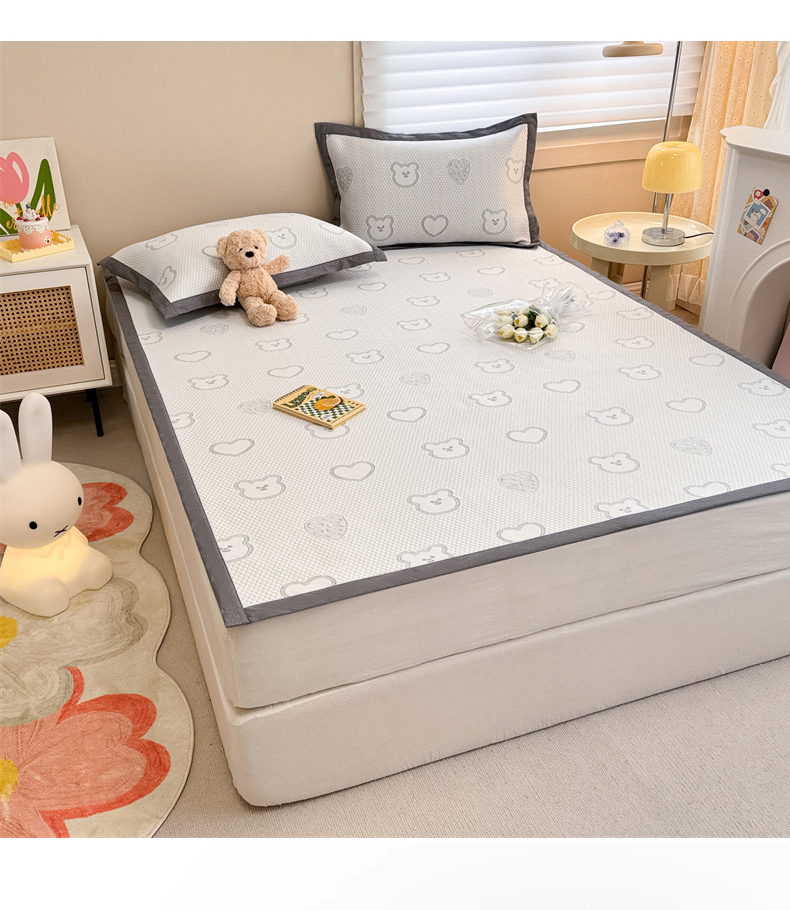柒月家居 2024新款PE凉感豆豆复合款凉席套件 小熊-灰