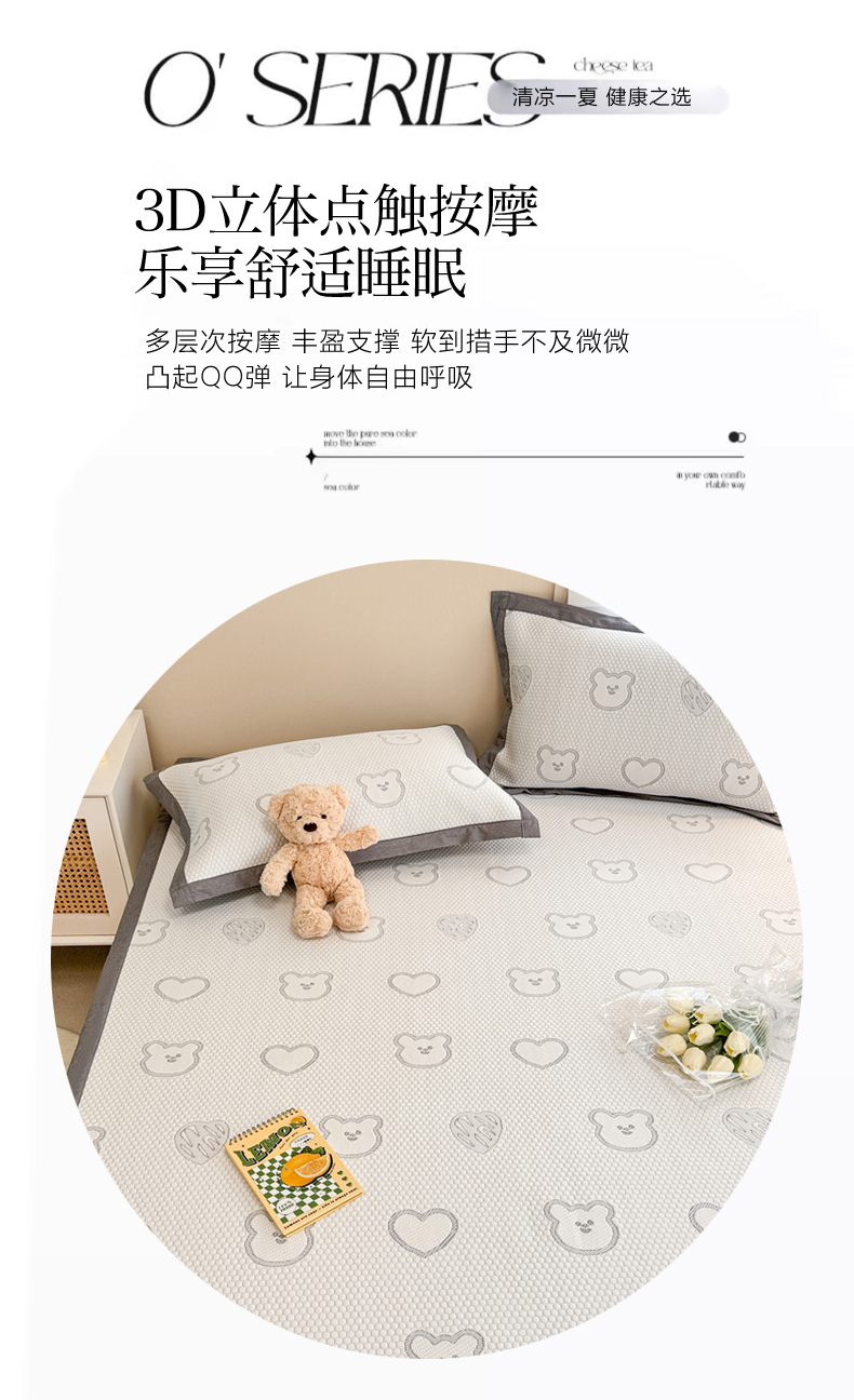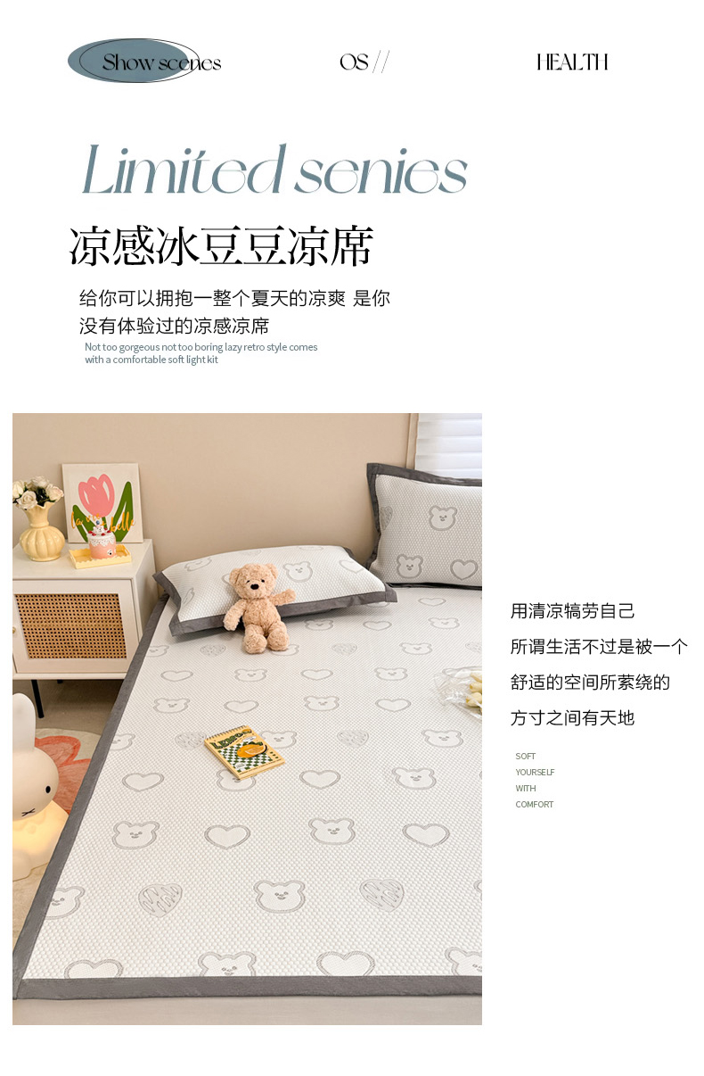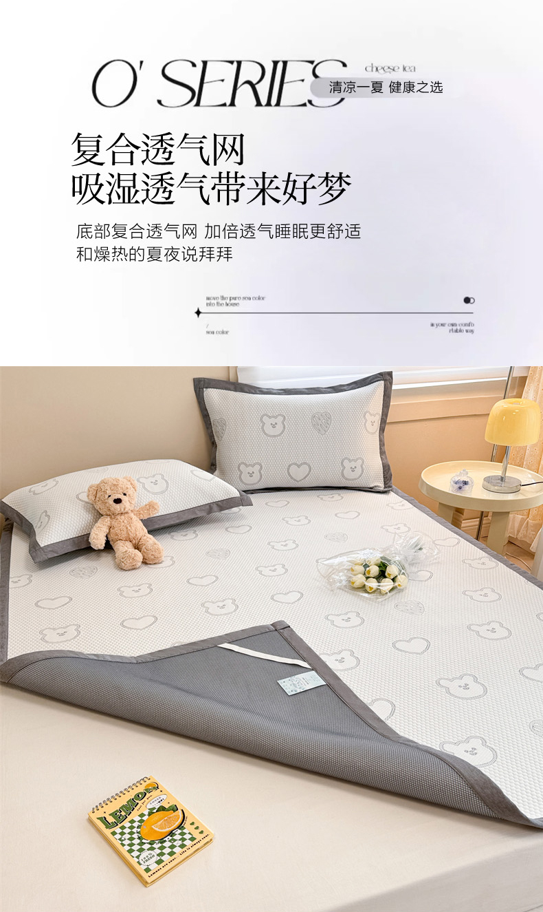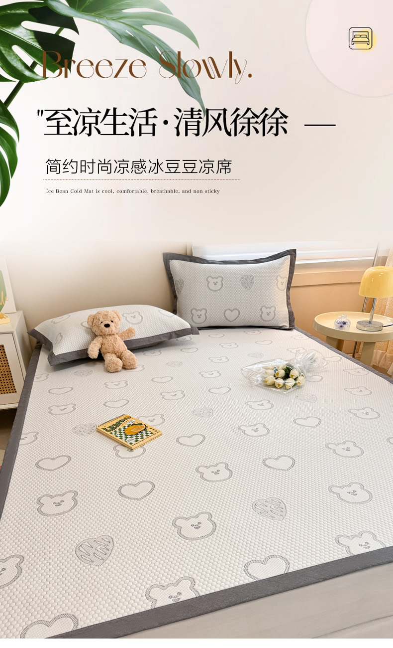 商品名称:柒月家居 2024新款PE凉感豆豆复合款凉席套件 小熊-灰