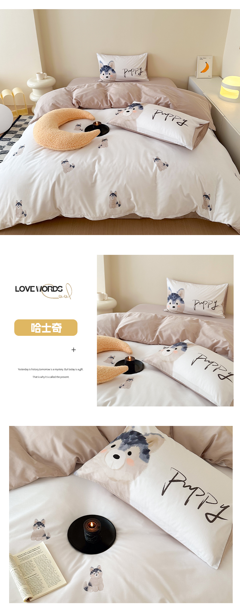 美乐迪家纺 2024ins韩风全棉四件套 哈士奇