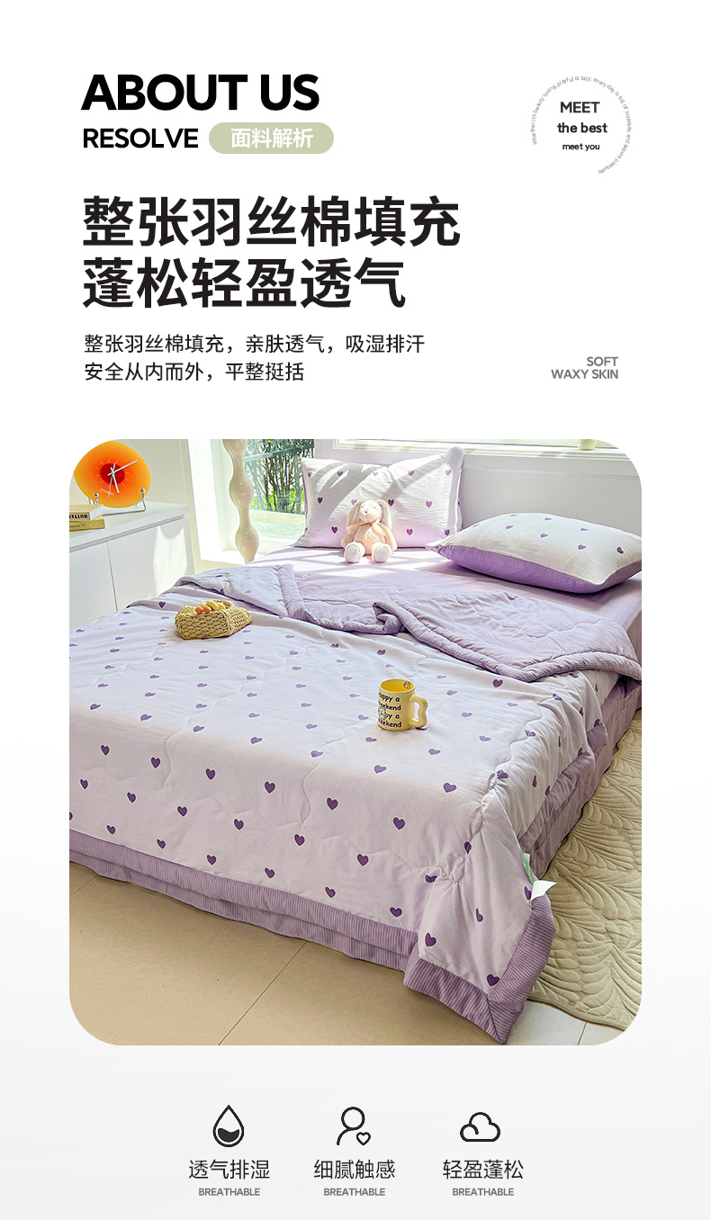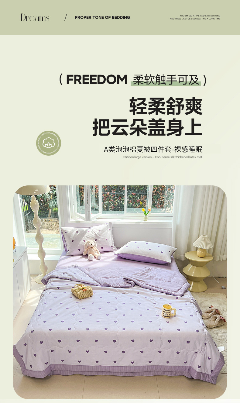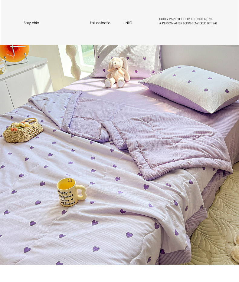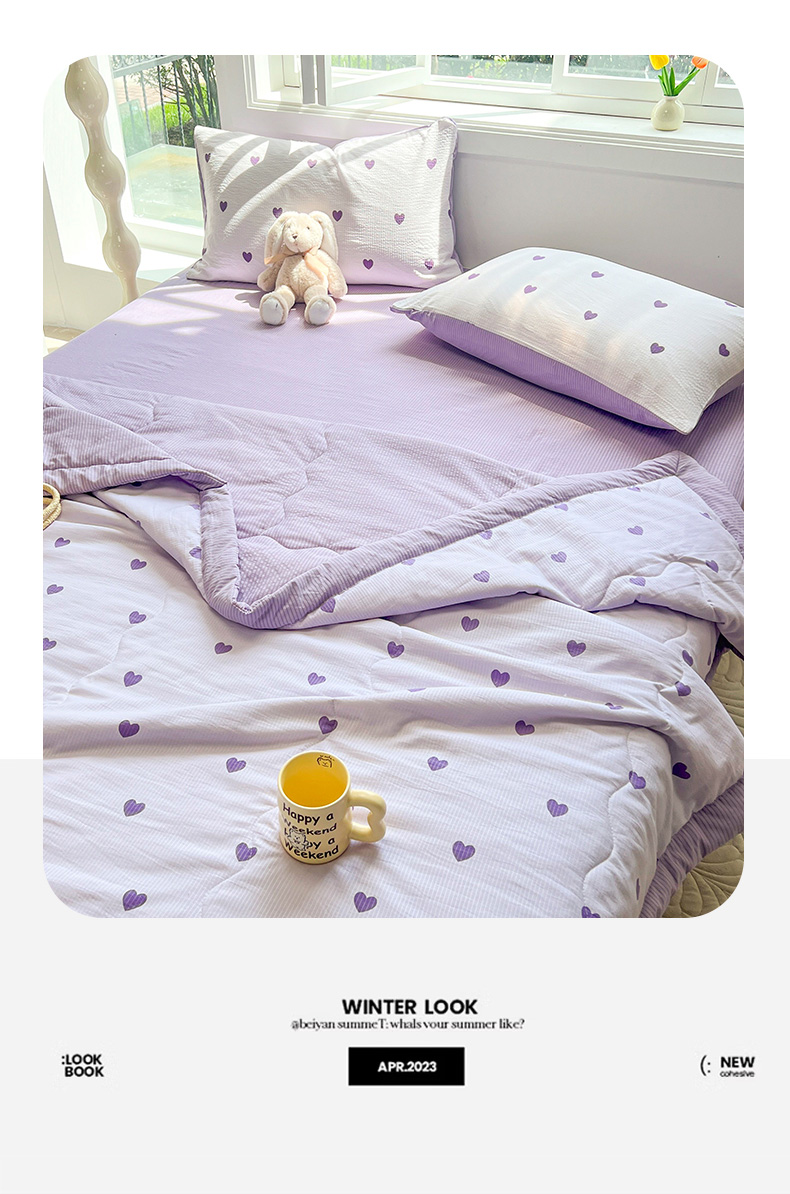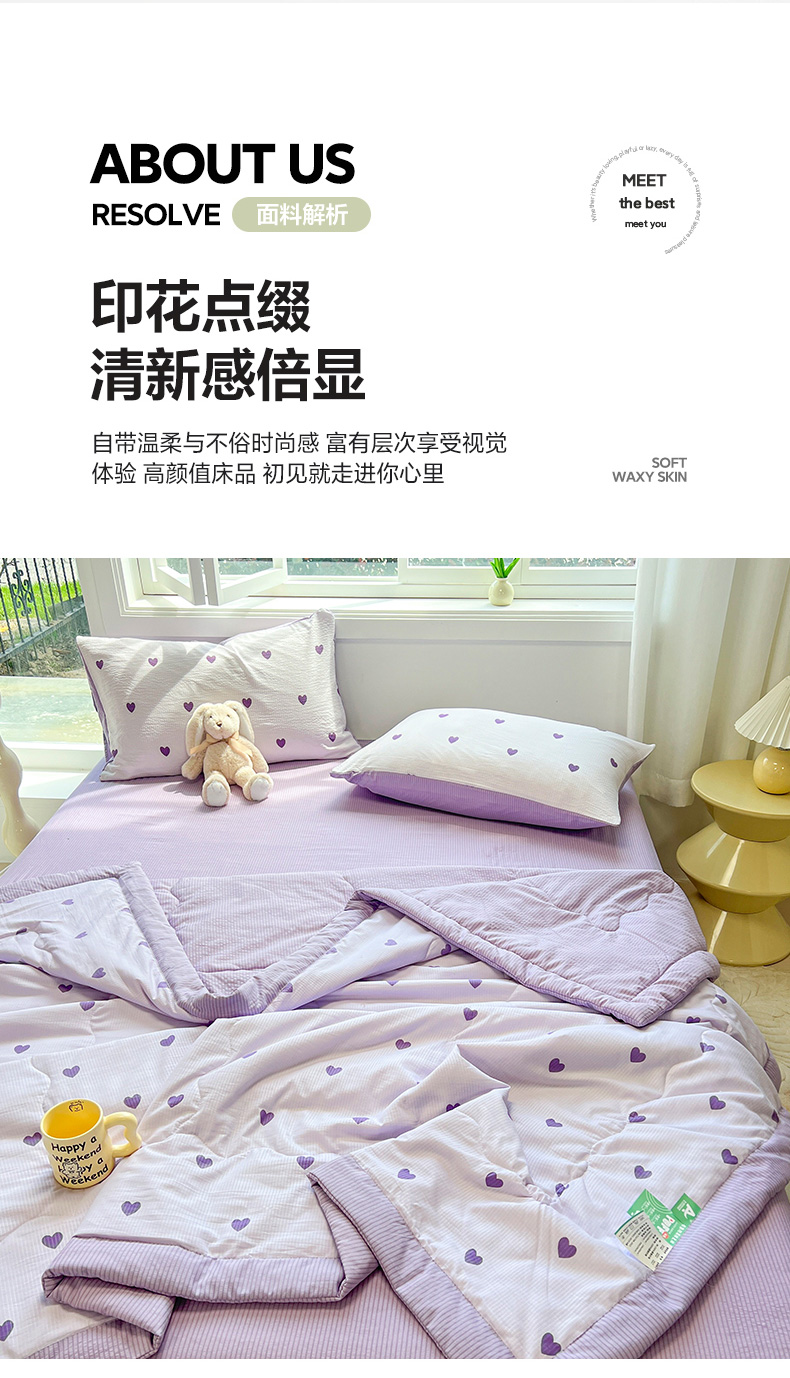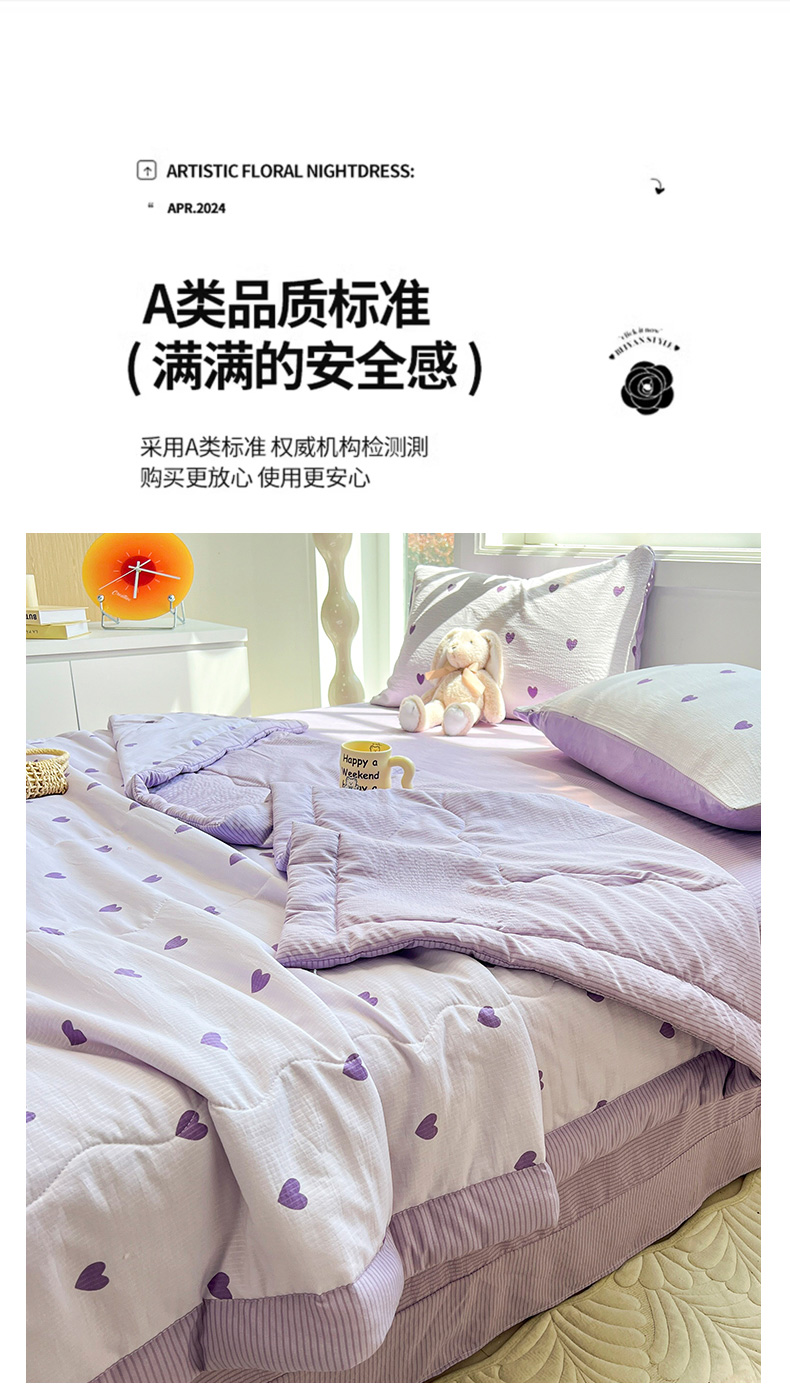 当前位置: 91家纺网 > 商品网购 > 床品套件 > 四件套 > 夏被四件套 > 安哆啦家纺 2024新款A类泡泡棉印花夏被四件套 紫爱心