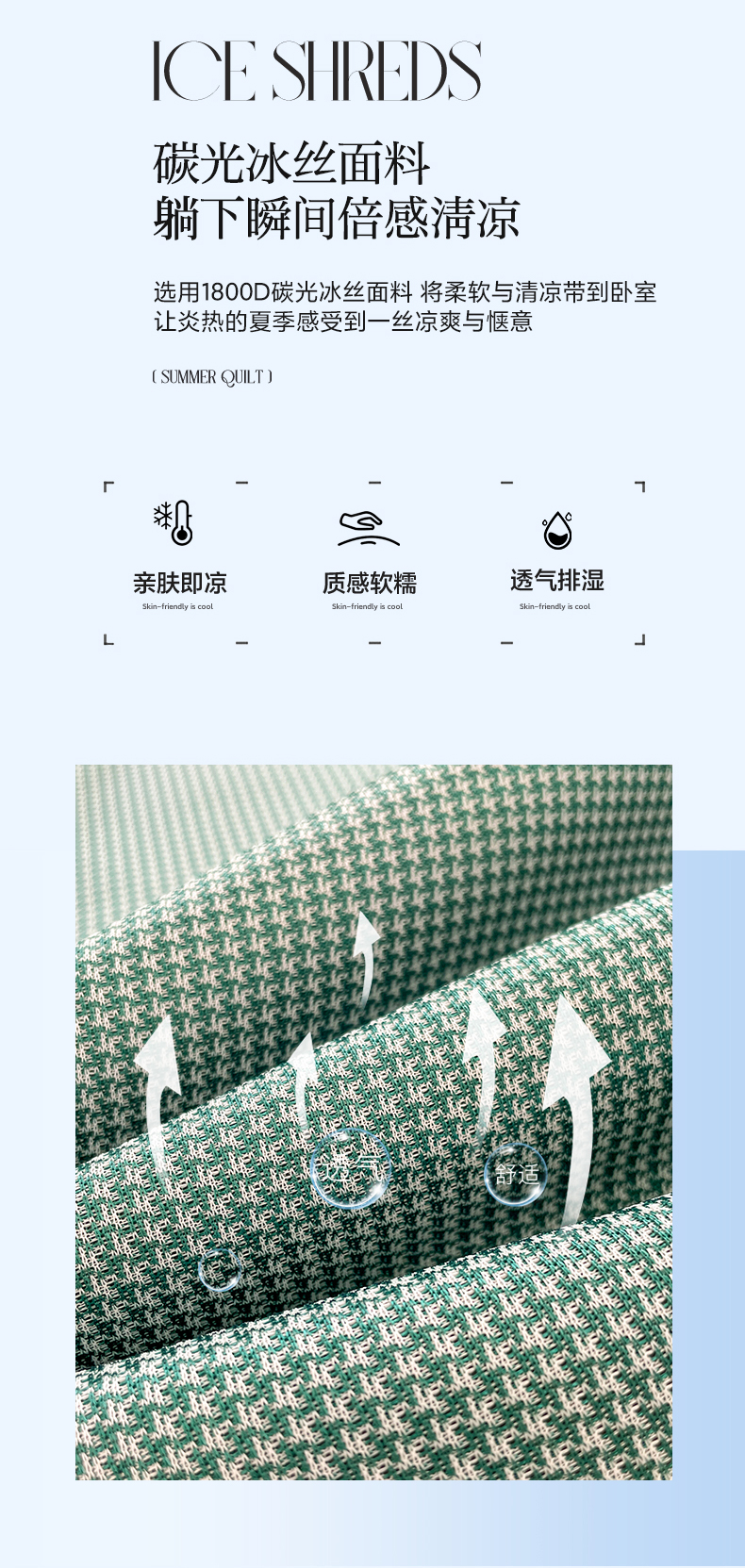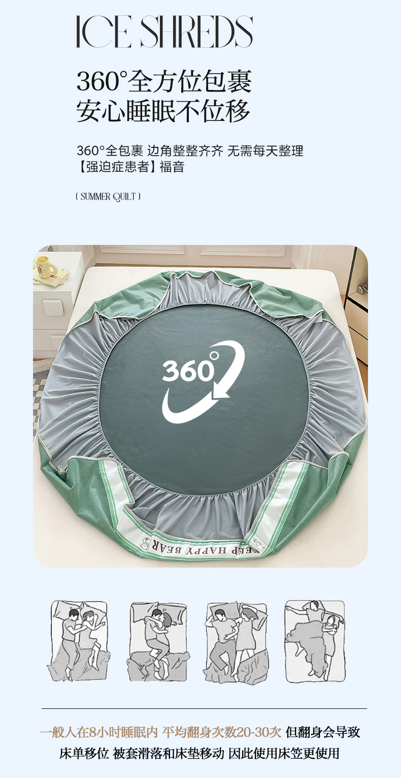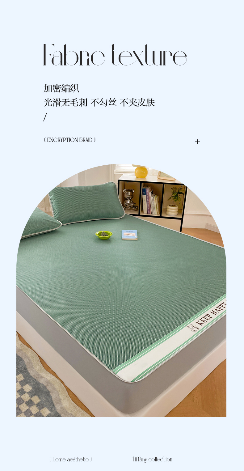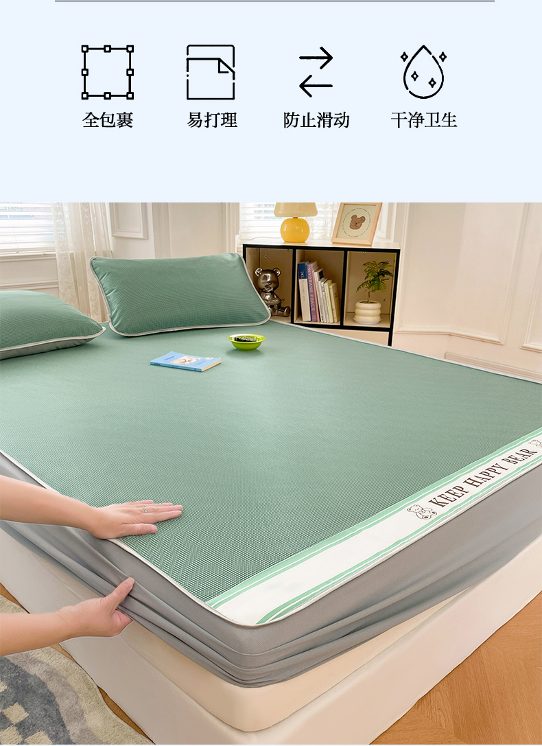 福来临家纺 2025新款1800D碳光冰丝席 小熊床笠-水绿