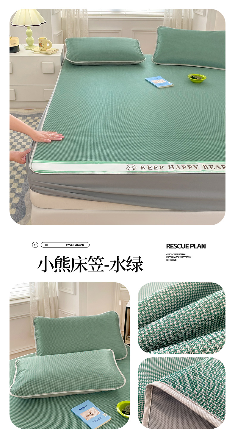 商品名称:福来临家纺 2025新款1800D碳光冰丝席 小熊床笠-水绿