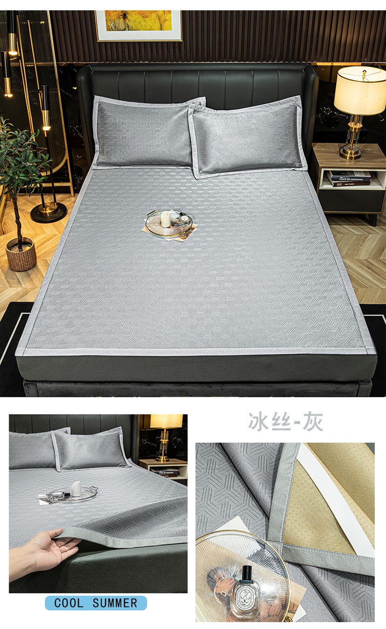 • 91家纺网 家纺一手货源 找家纺 共鸣沙发垫 新款简约冰丝凉感凉席 冰丝灰