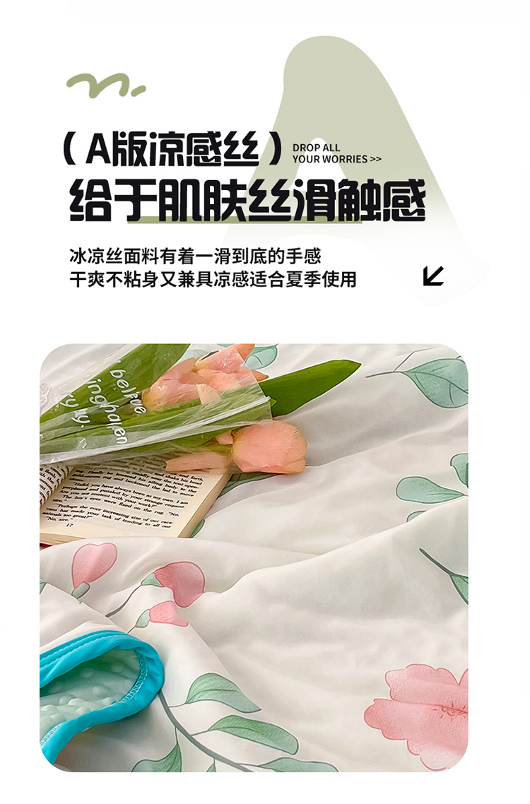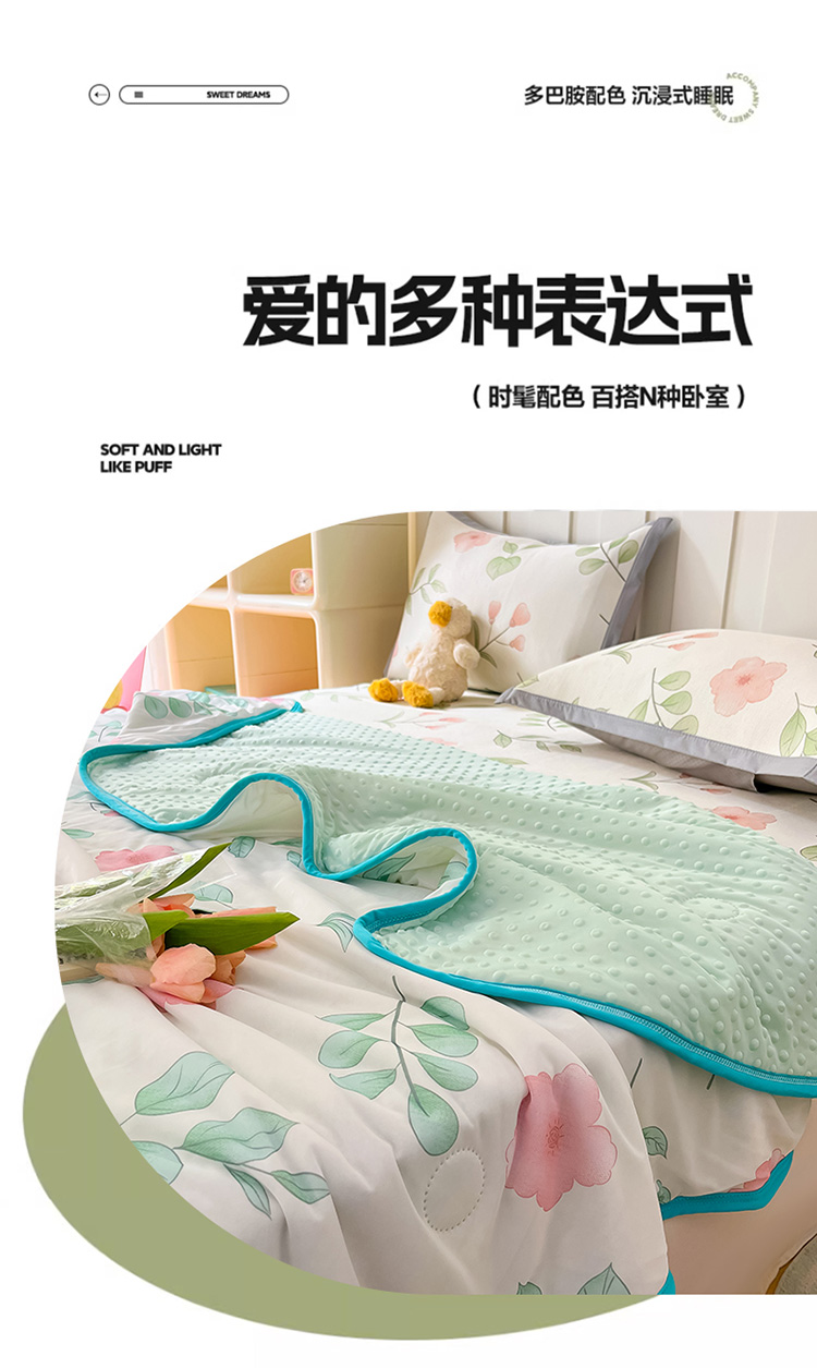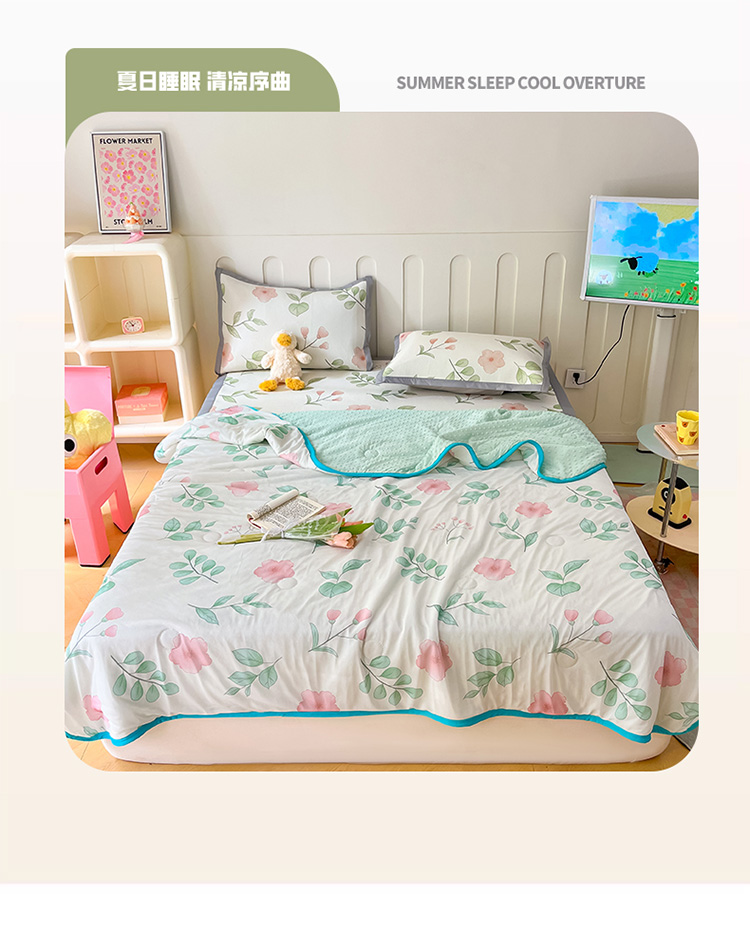 当前位置: 91家纺网 > 商品网购 > 床上用品 > 凉席 > 冰丝席 > 安哆啦 2024新款A类凉感丝冰豆豆夏被冰丝席冰藤席四件套 夏被-花丛间