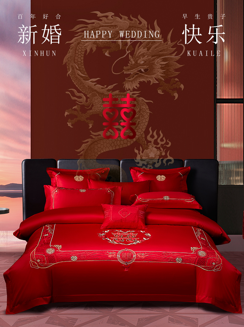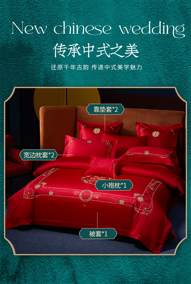 当前位置: 91家纺网 > 商品网购 > 床品套件 > 四件套 > 婚庆四件套 > 高大尚婚庆馆 2025新款60s长绒棉轻奢(床裙款)婚庆四件套 时尚婚约