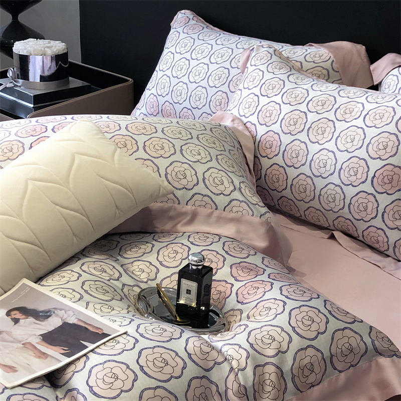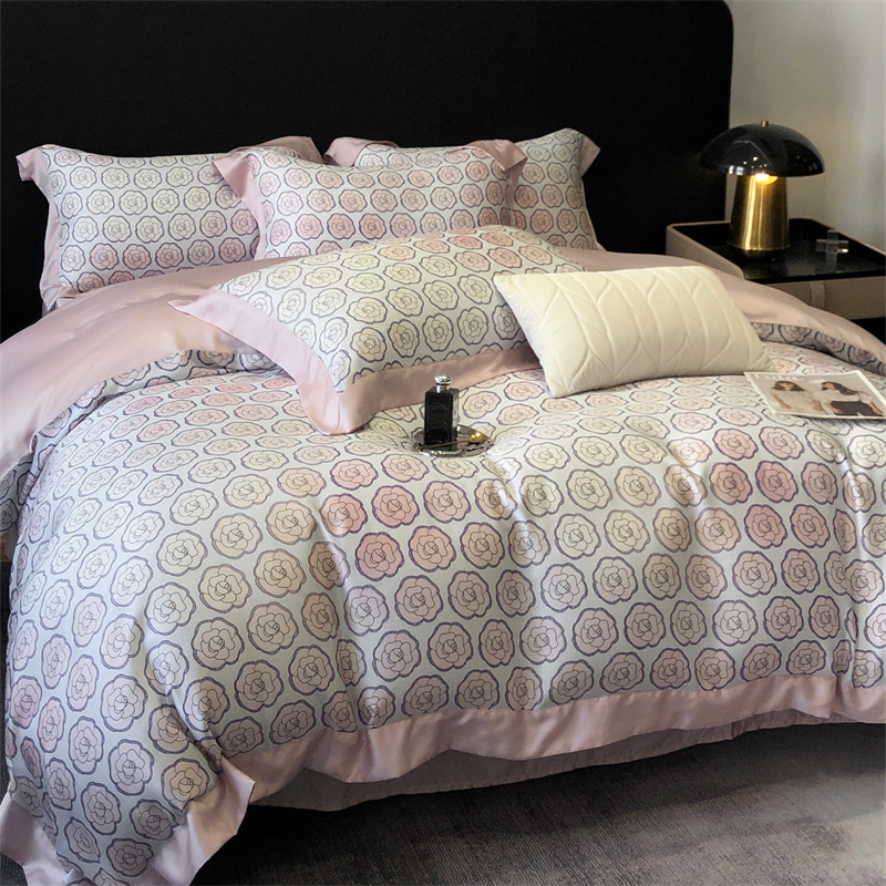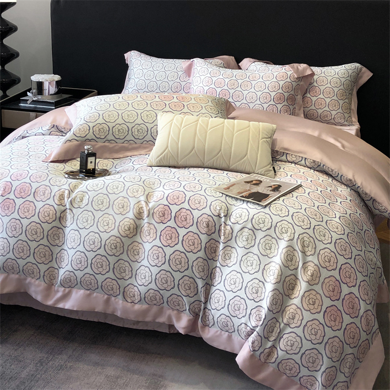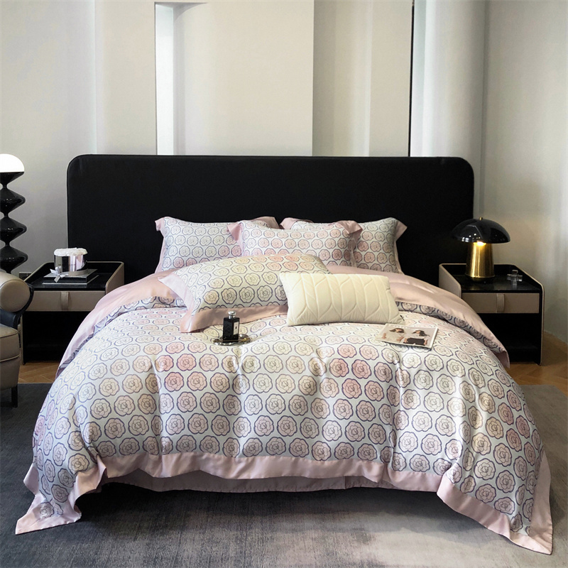 佳汐蓝家纺 2024新款60支兰精天丝数码印花四件套 汐雯 粉