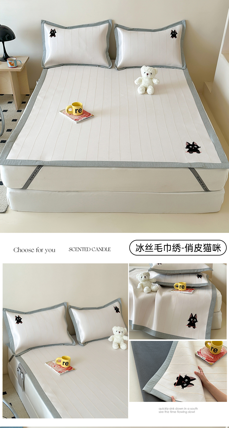 当前位置: 91家纺网 > 商品网购 > 床上用品 > 凉席 > 冰丝席 > 时年 2024新款7A抗菌提花毛巾绣冰丝凉席(充值会员优惠10元) 冰丝毛巾绣-俏皮猫咪